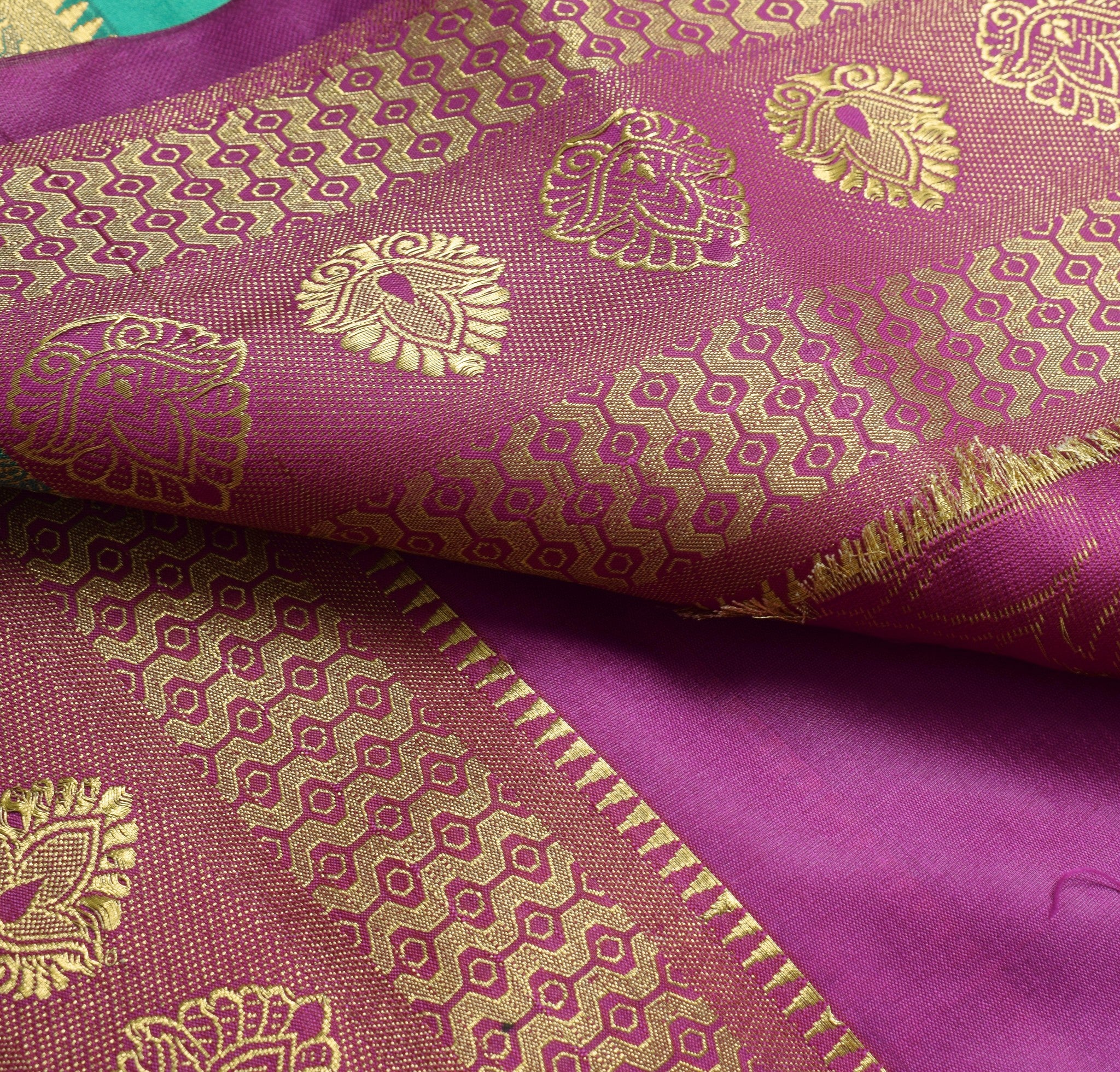 Embrace the perfect blend of elegance and tradition with this stunning Aqua Green Art Silk Saree, designed to captivate attention. Featuring a delicate floral pattern and intricate zari woven work, this saree is a timeless piece that will elevate any occasion. The purple border and pallu add a touch of regality, creating a beautiful contrast against the soft aqua green fabric.