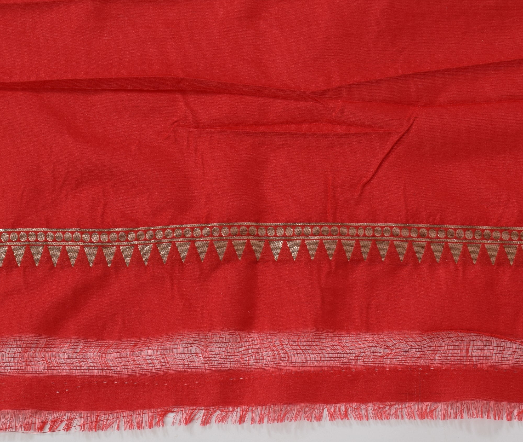 Banarasi Vastra Presents Shikargah Pattern Saree in Red color with Golden Zari Woven Deer, Birds Pattern in Blend Katan Silk, this saree comes with Zari Woven Border and Pallu with Blouse fabric.