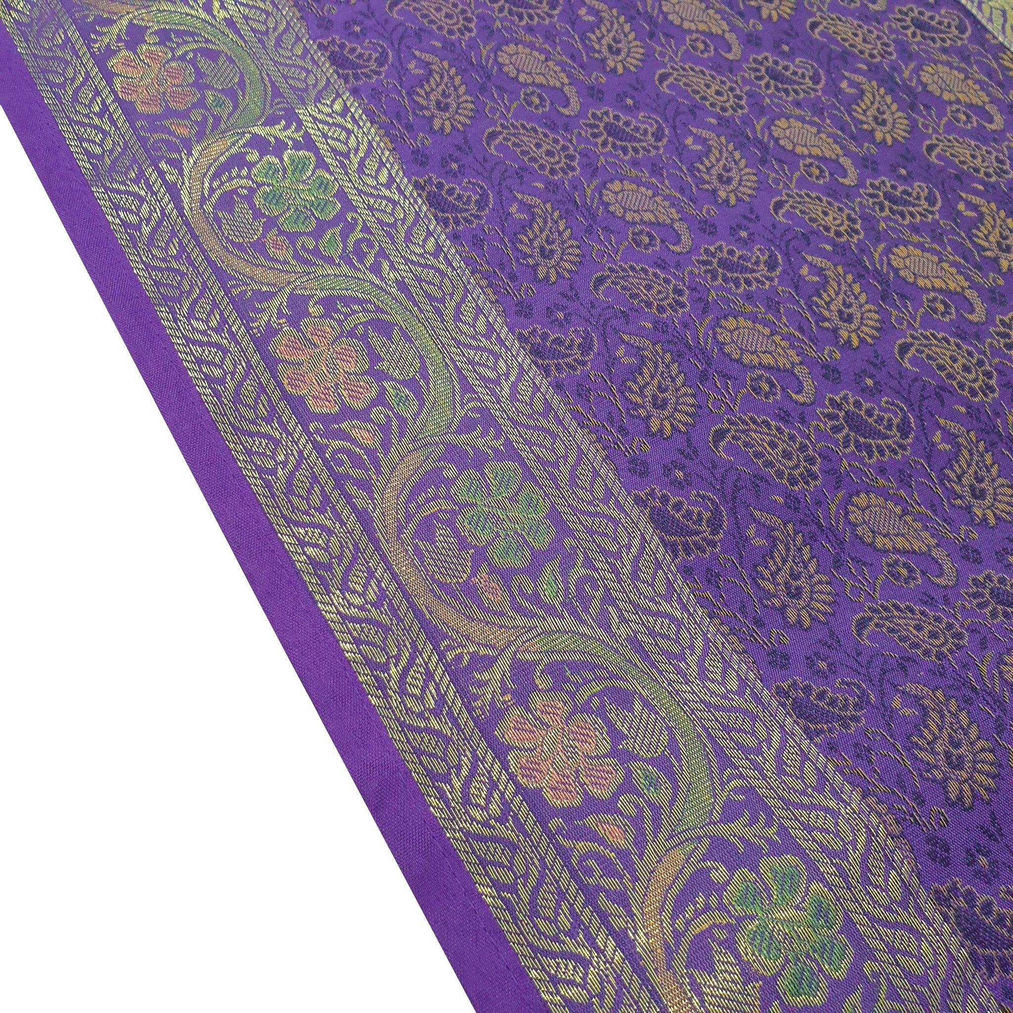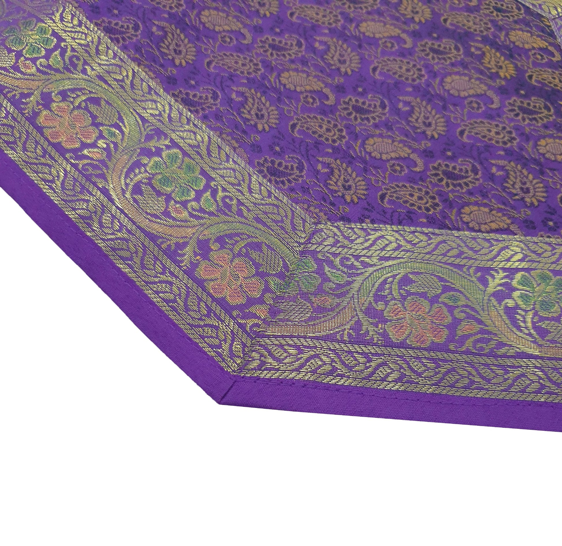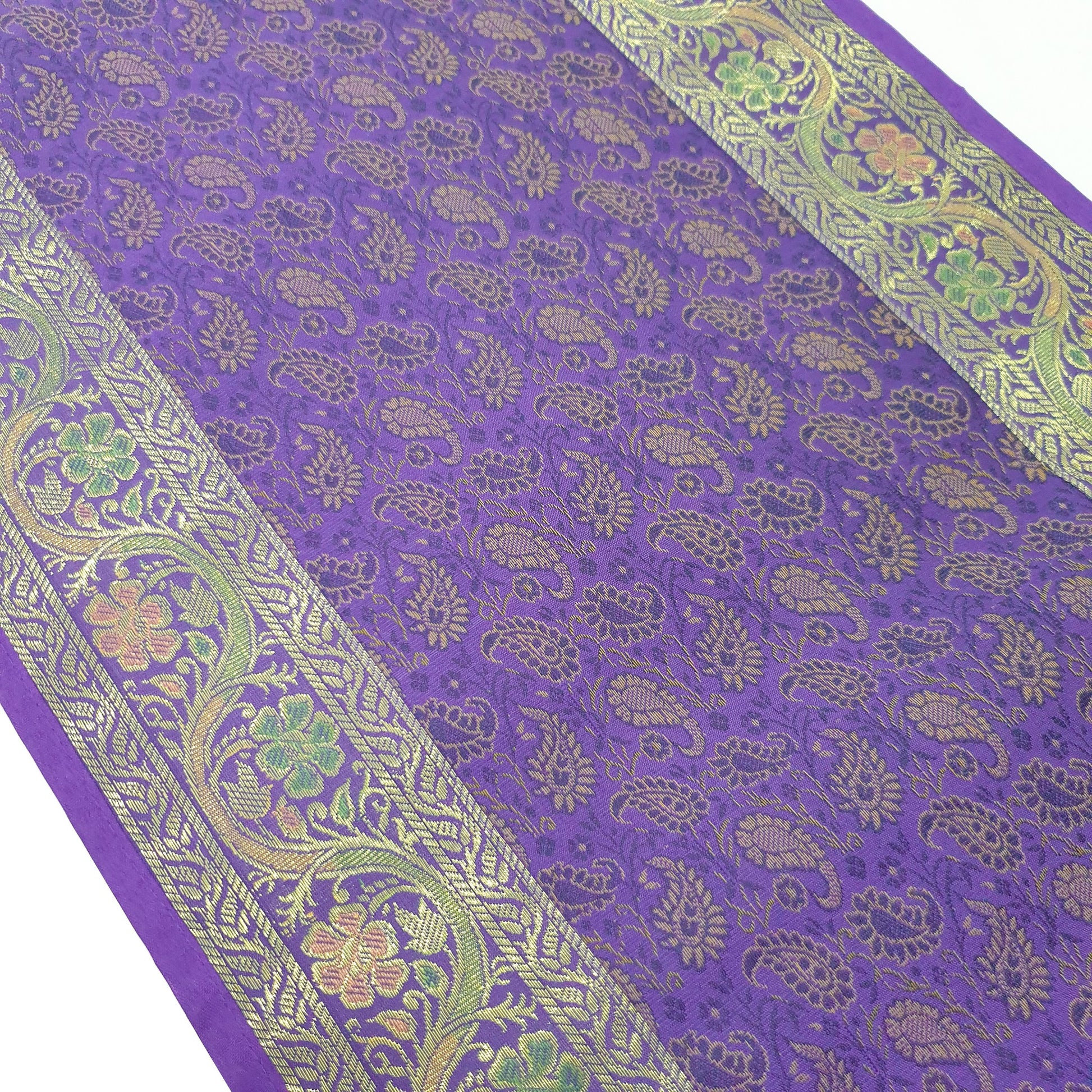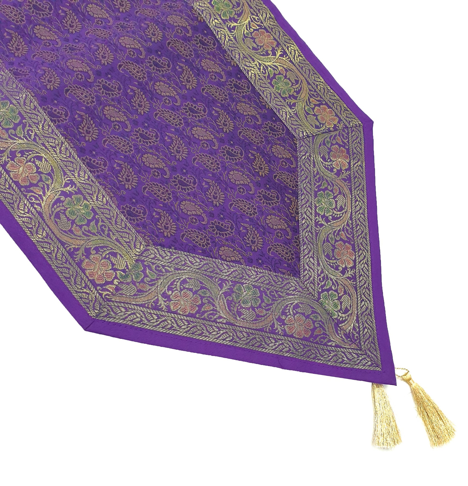 Banarasi Table Runner Purple Silk Brocade Paisley Indian Dining Decor Gift Cloth