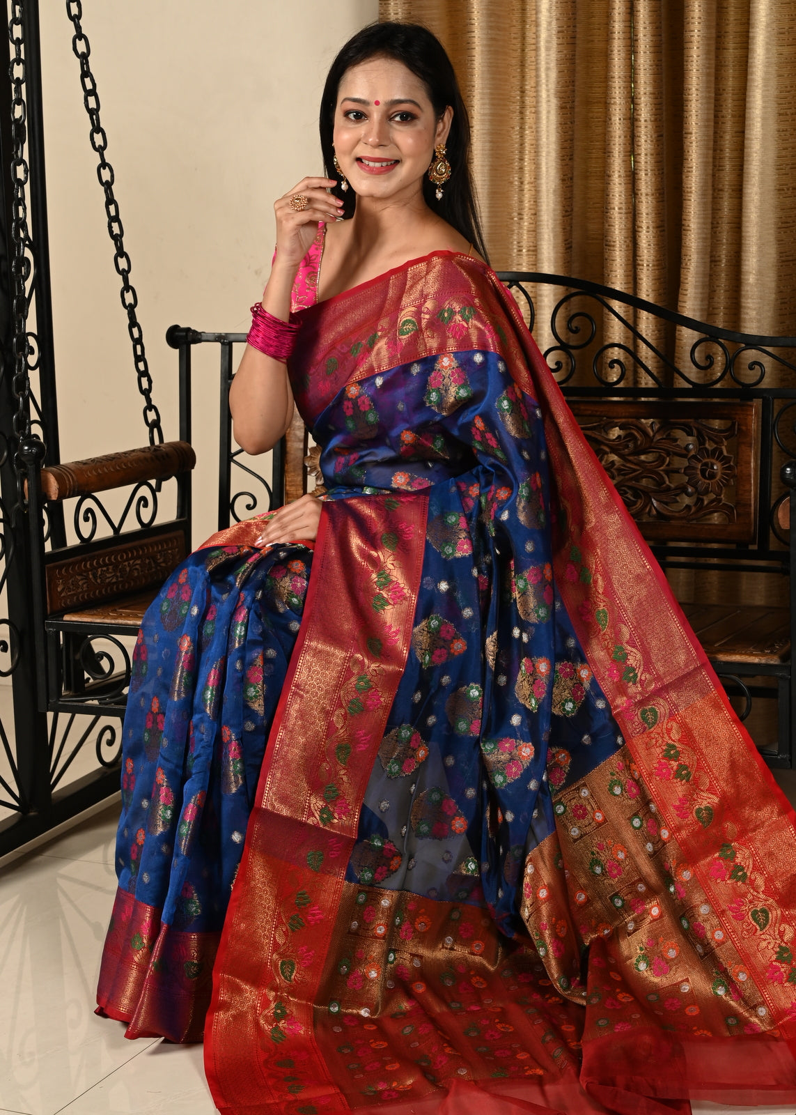 This Sarees can be worn in Parties and special occasion. This Saree is weaved in Banaras (also known as Vanarasi or Kashi) and shipped directly from the Banaras.