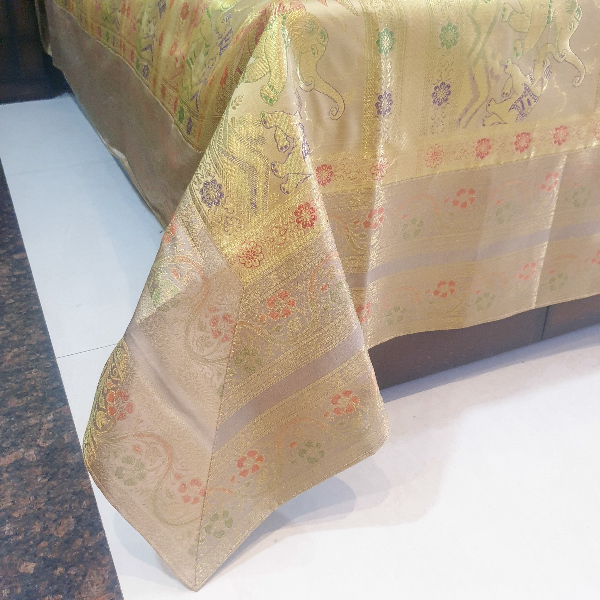 Banarasi Vastra Presents Bed Cover Set of 5 Piece in Banarasi Silk Fabric with Woven Zari Brocade Patch work in Below Dimensions: