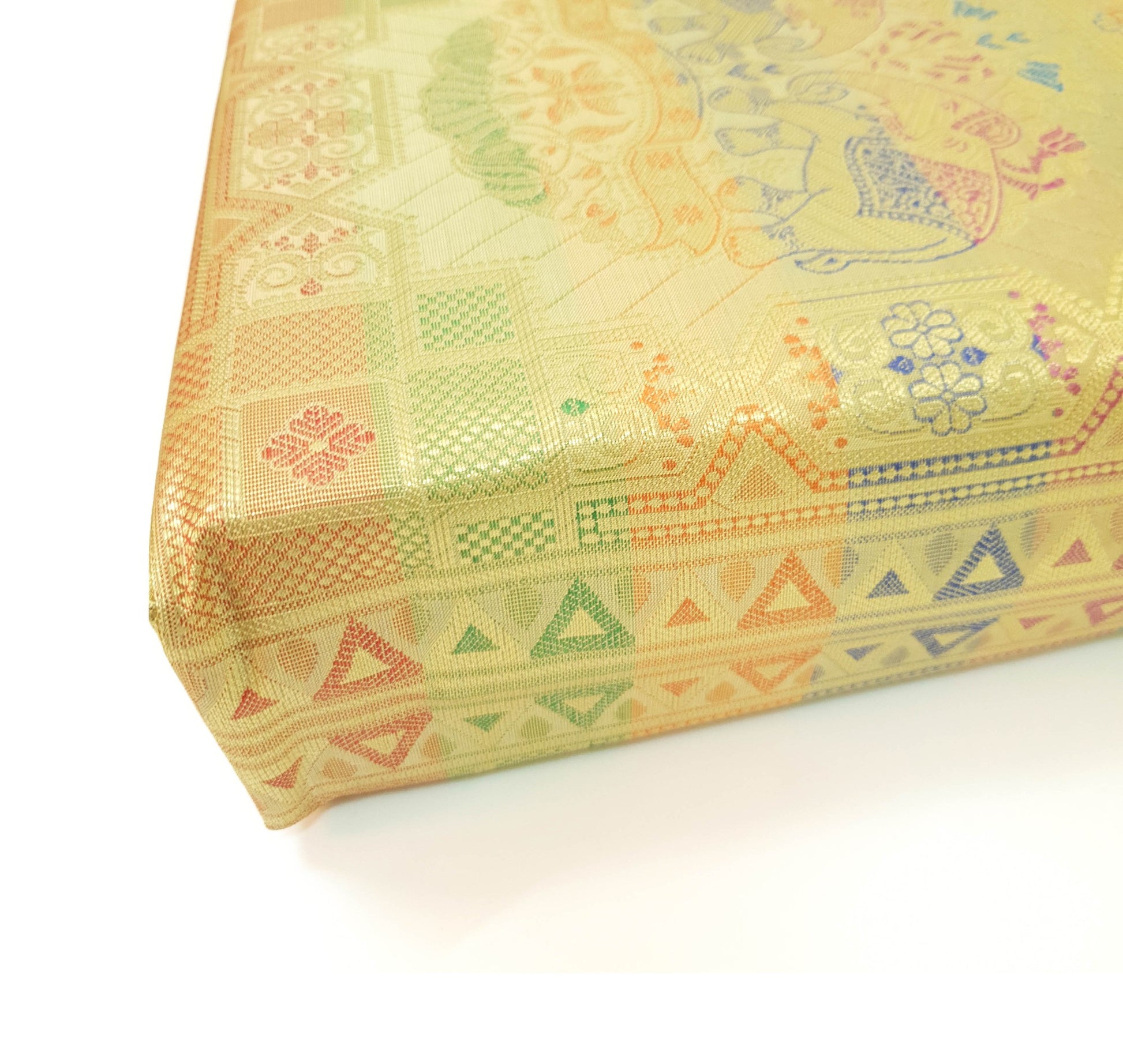 The Handle rope of this Bag is wrapped with Golden Zari and it is Approx. 8 mm in Diameter.
