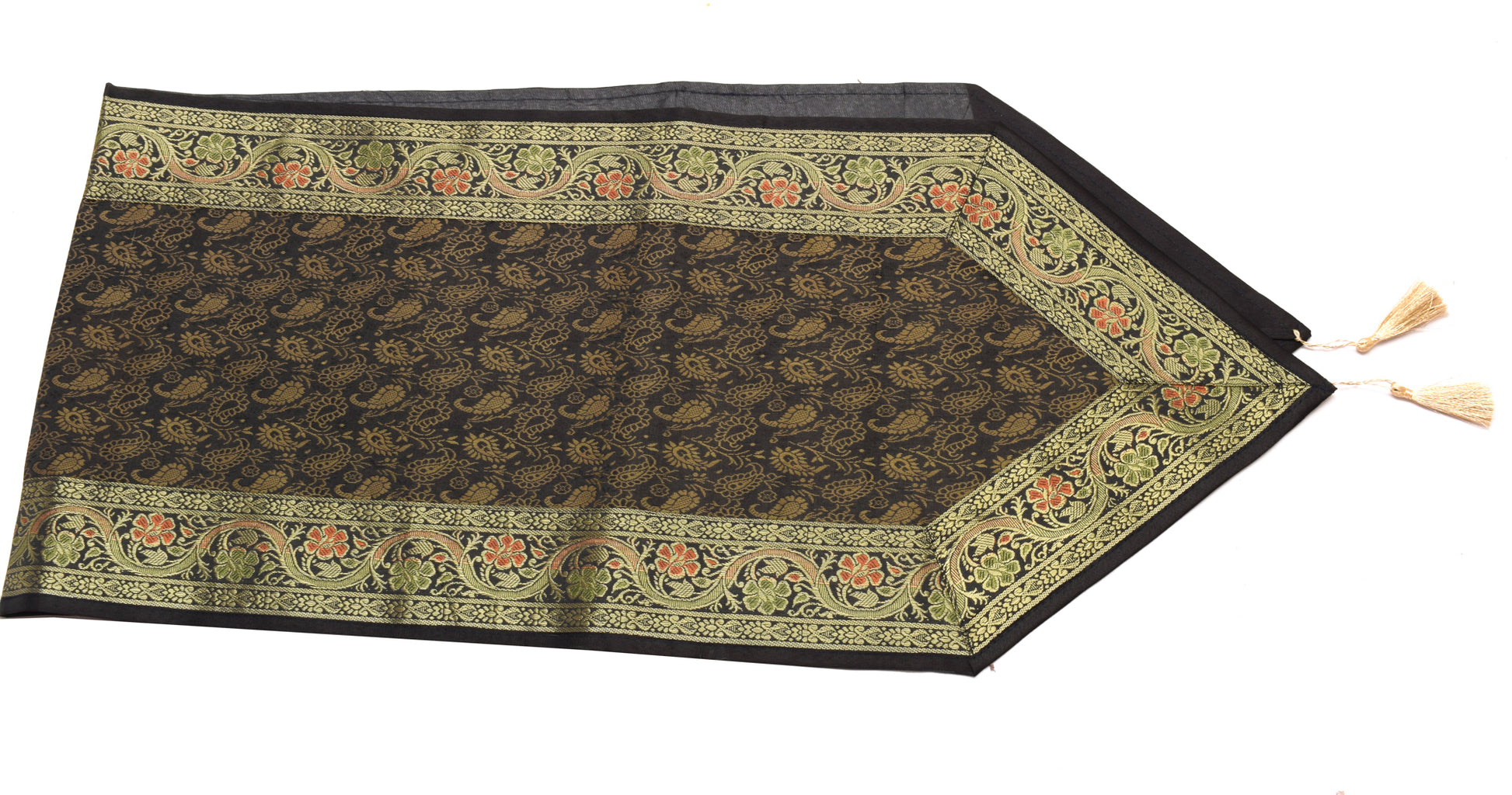 Black Indian Banarasi Silk Brocade Paisley Table Runner Dining Decor Cloth