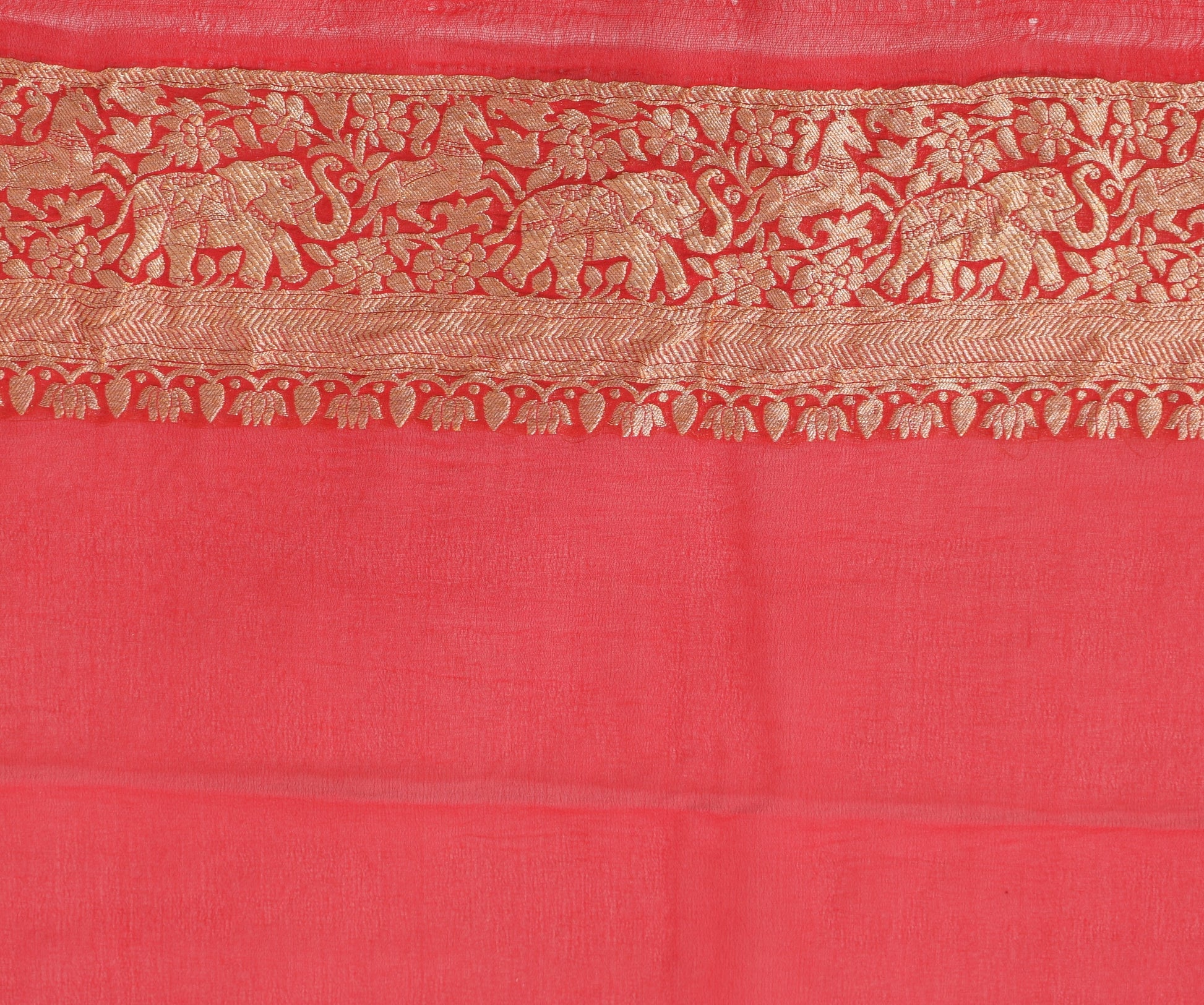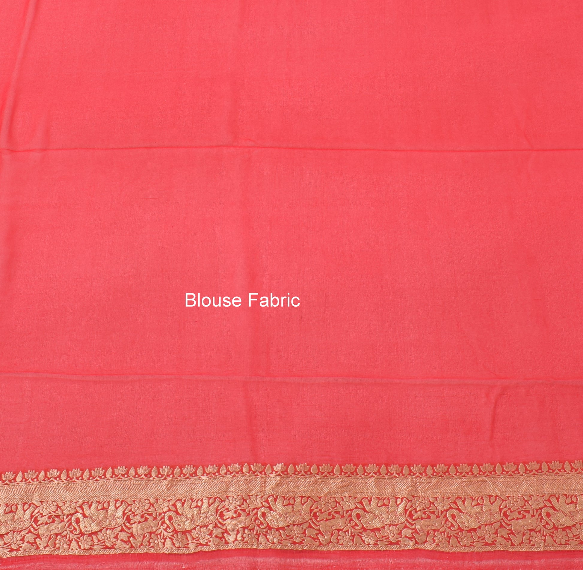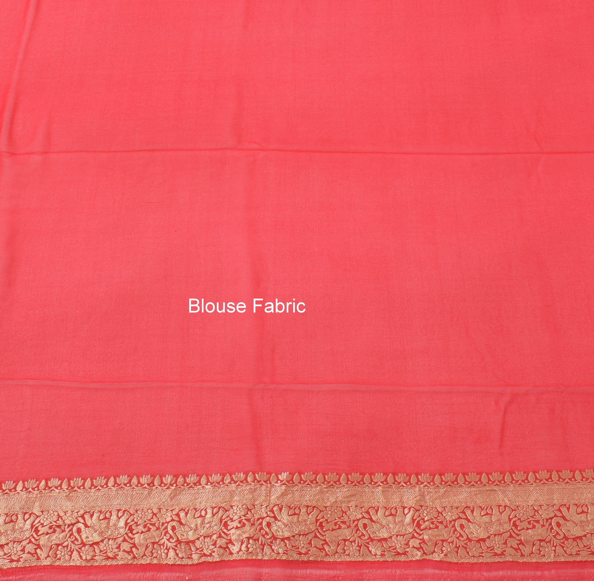 This saree uses Pure Georgette warp and weft. These Banarasi Georgette sarees are first woven in natural colors and then dyed in the desired Color.