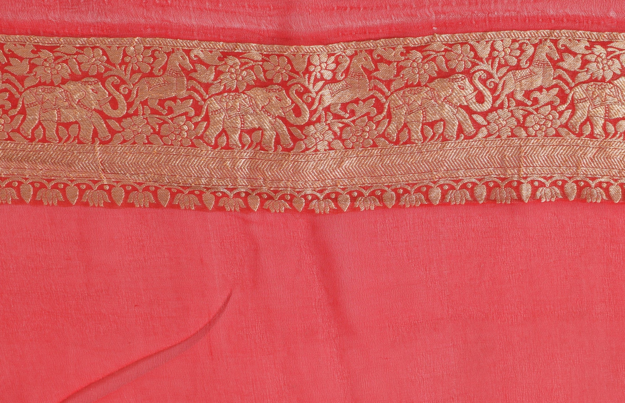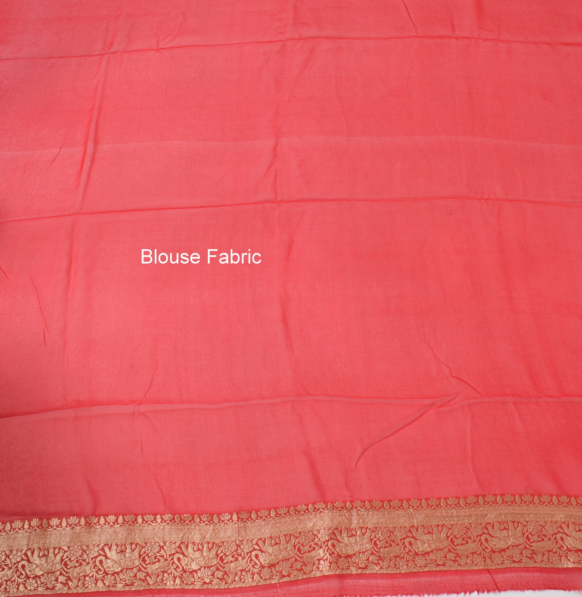 This saree uses Pure Georgette warp and weft. These Banarasi Georgette sarees are first woven in natural colors and then dyed in the desired Color.