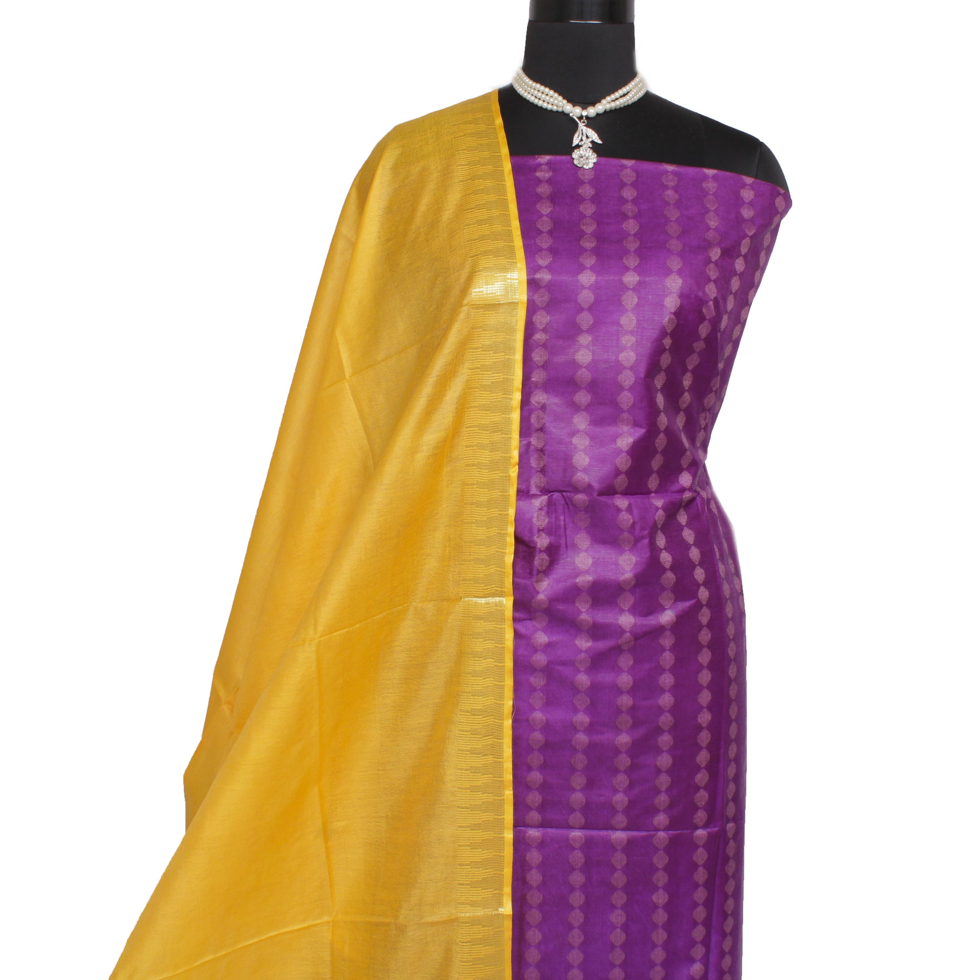 Blend Katan Silk Purple Dress Material Woven Bhagalpuri Salwar Kameez Dupatta