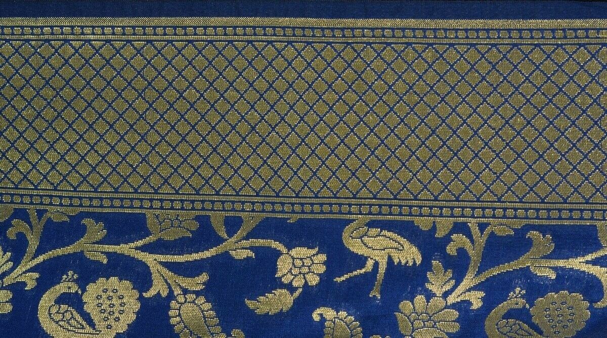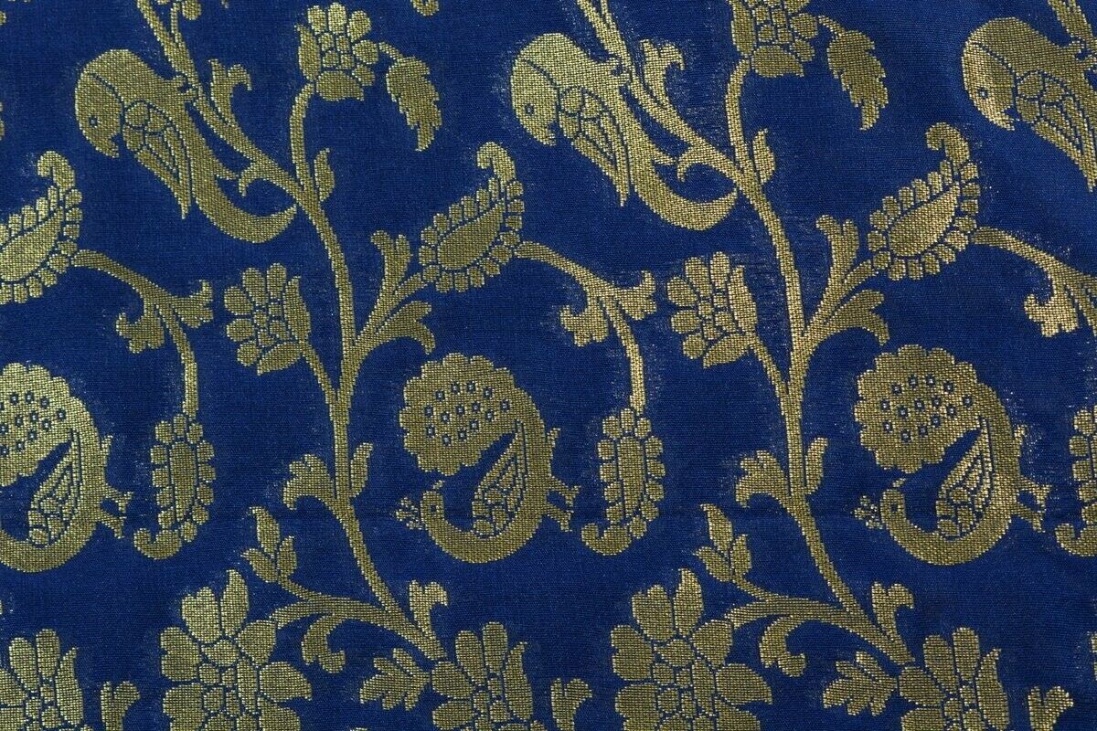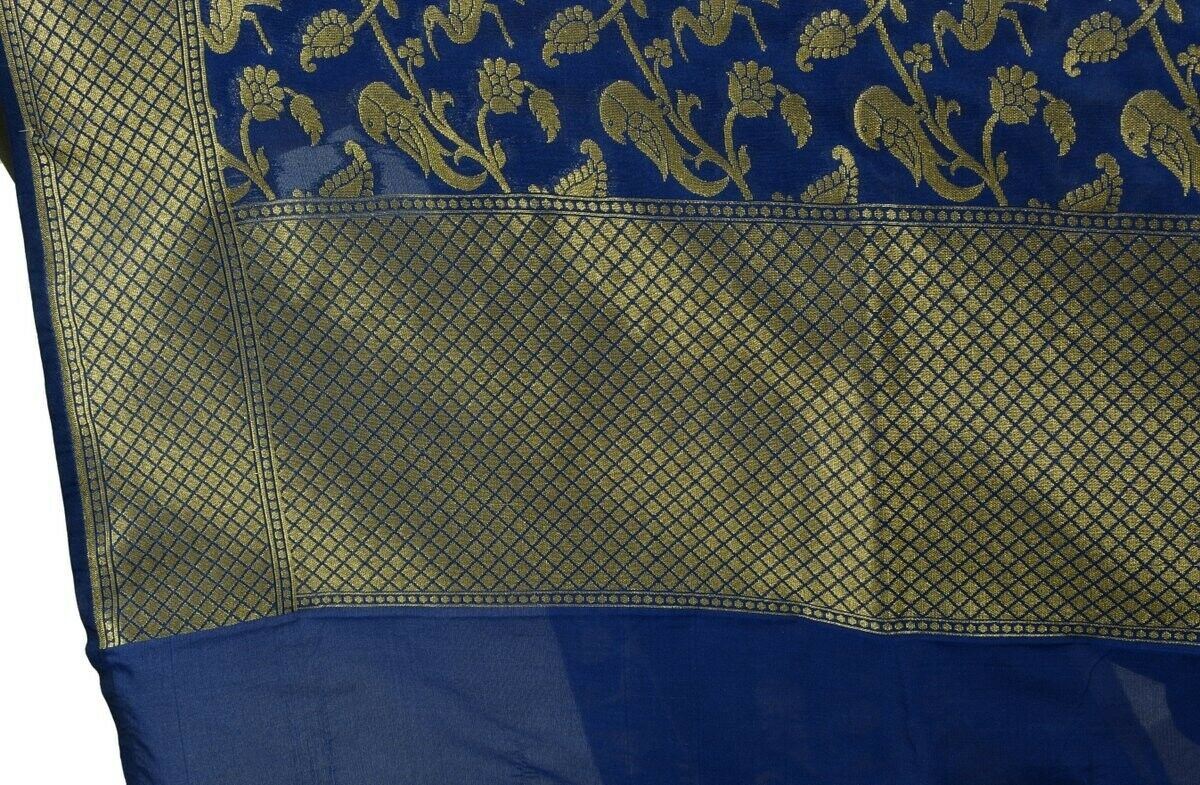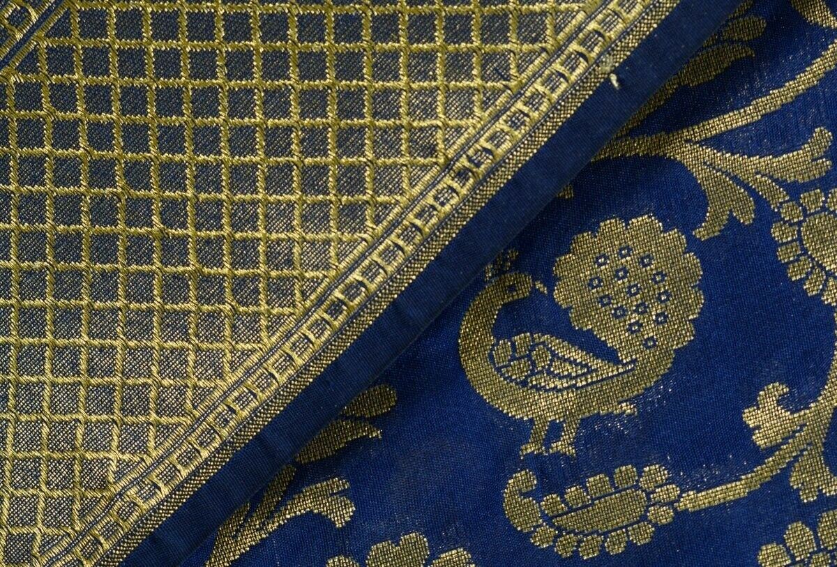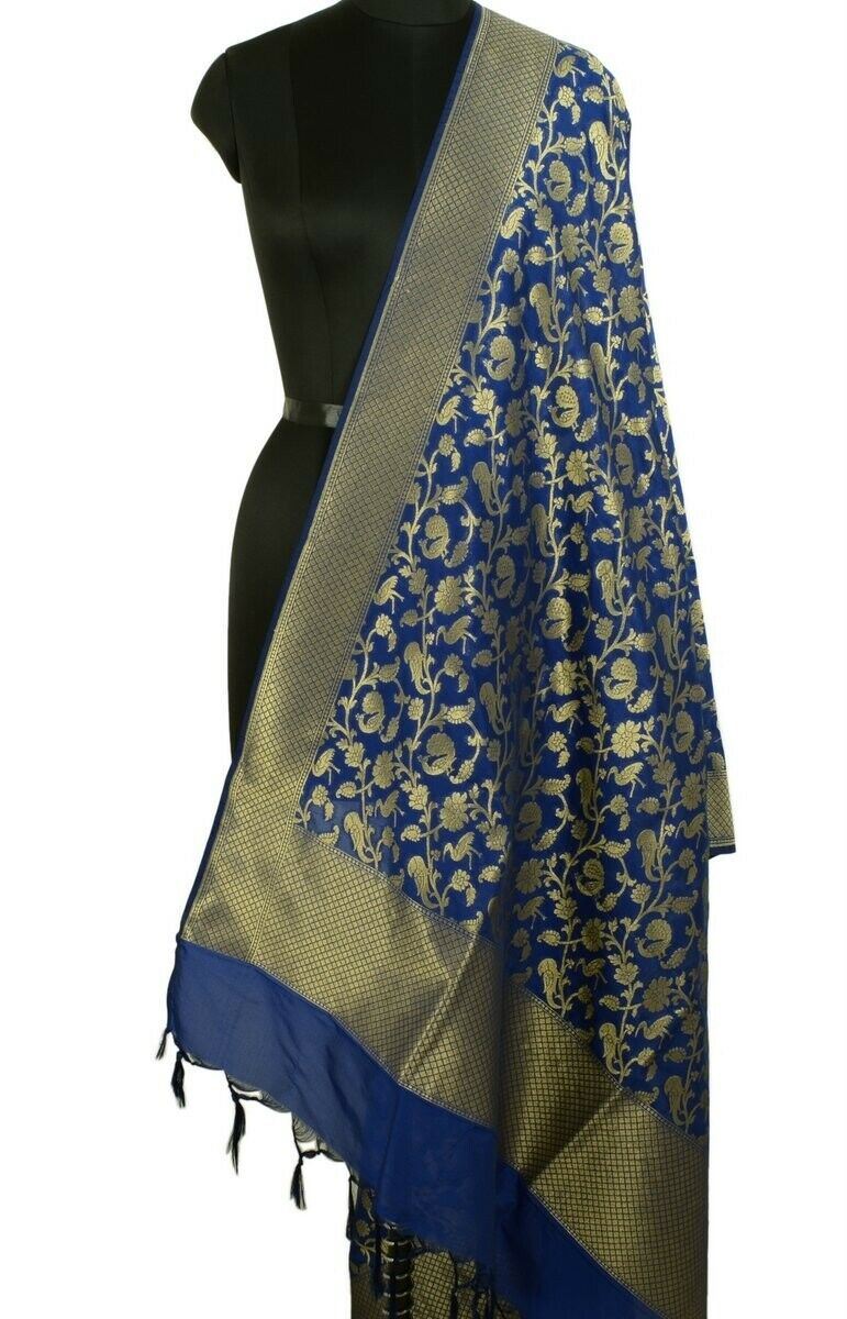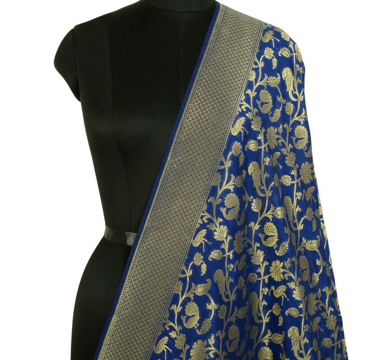 Blue Banarasi Dupatta Birds Woven Zari Brocade Indian Long Stole Wrap Shawl