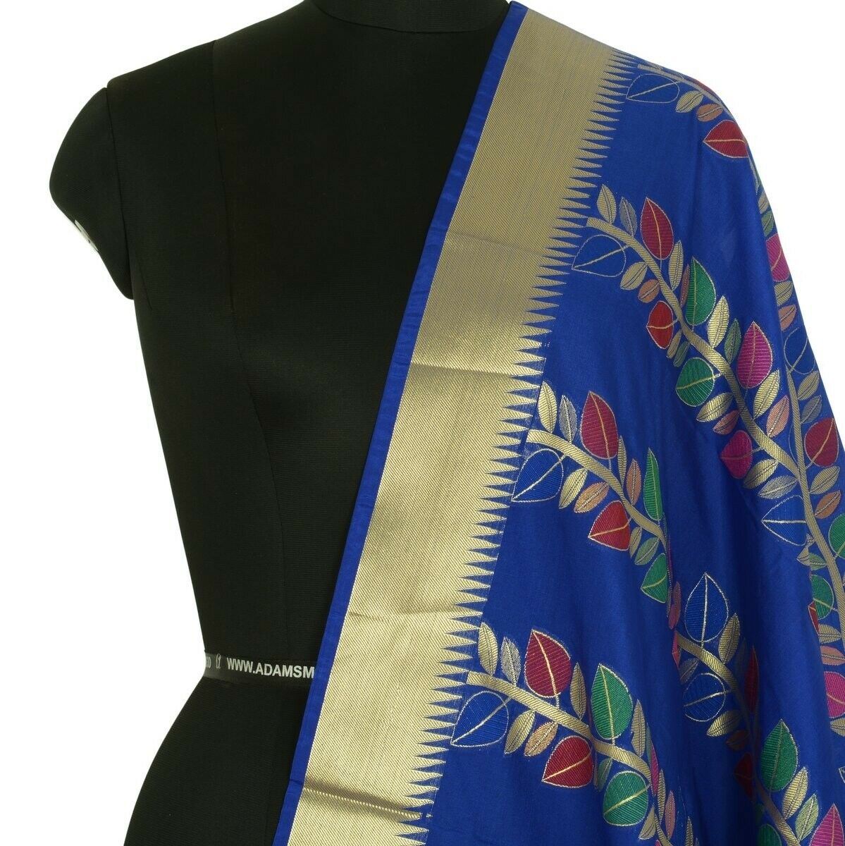 Blue Banarasi Dupatta Floral Woven Zari Brocade Indian Long Stole Wrap Shawl