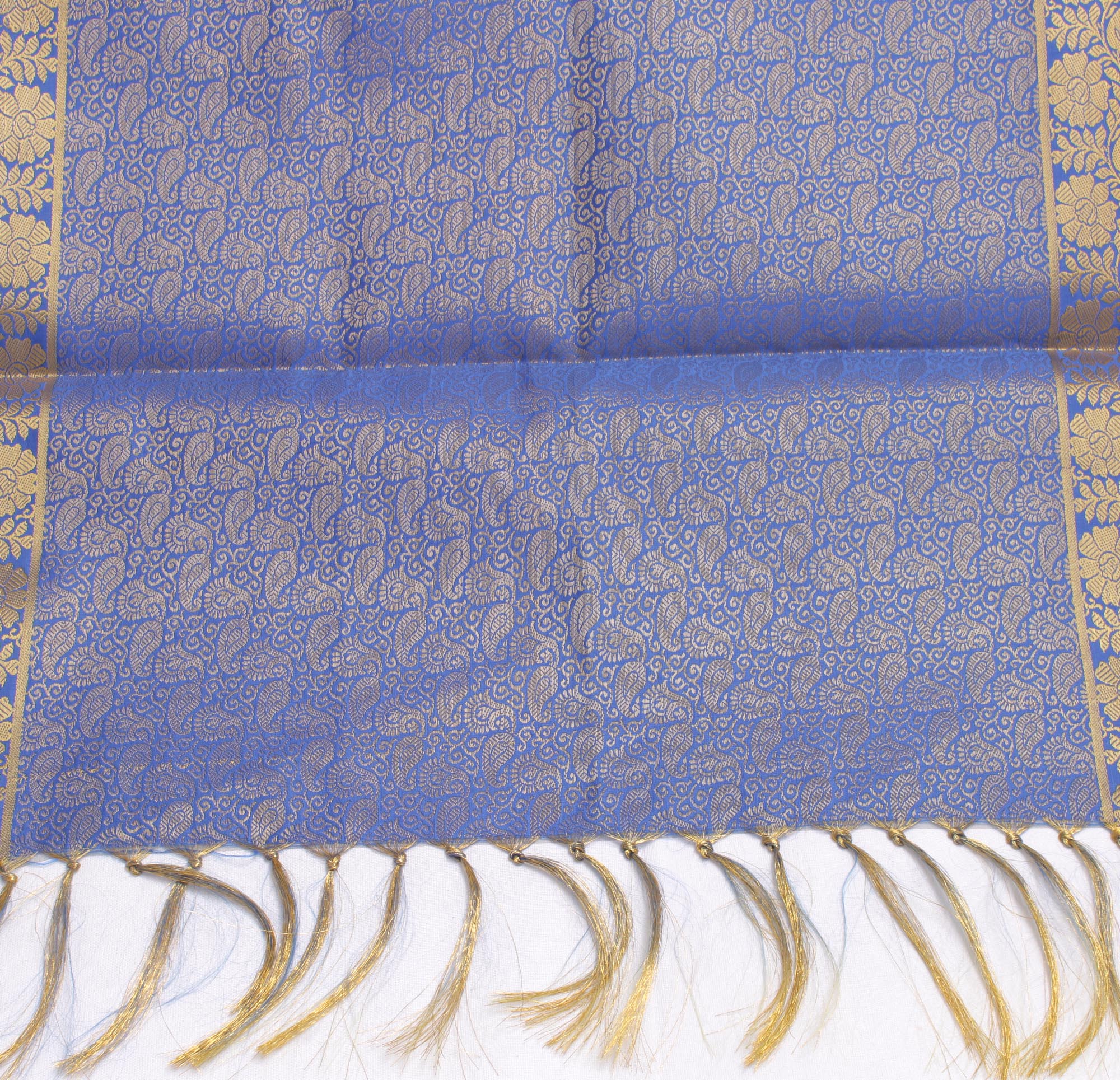 Blue Banarasi Dupatta Indian Art Silk Woven Zari Brocade Long Stole Scarves