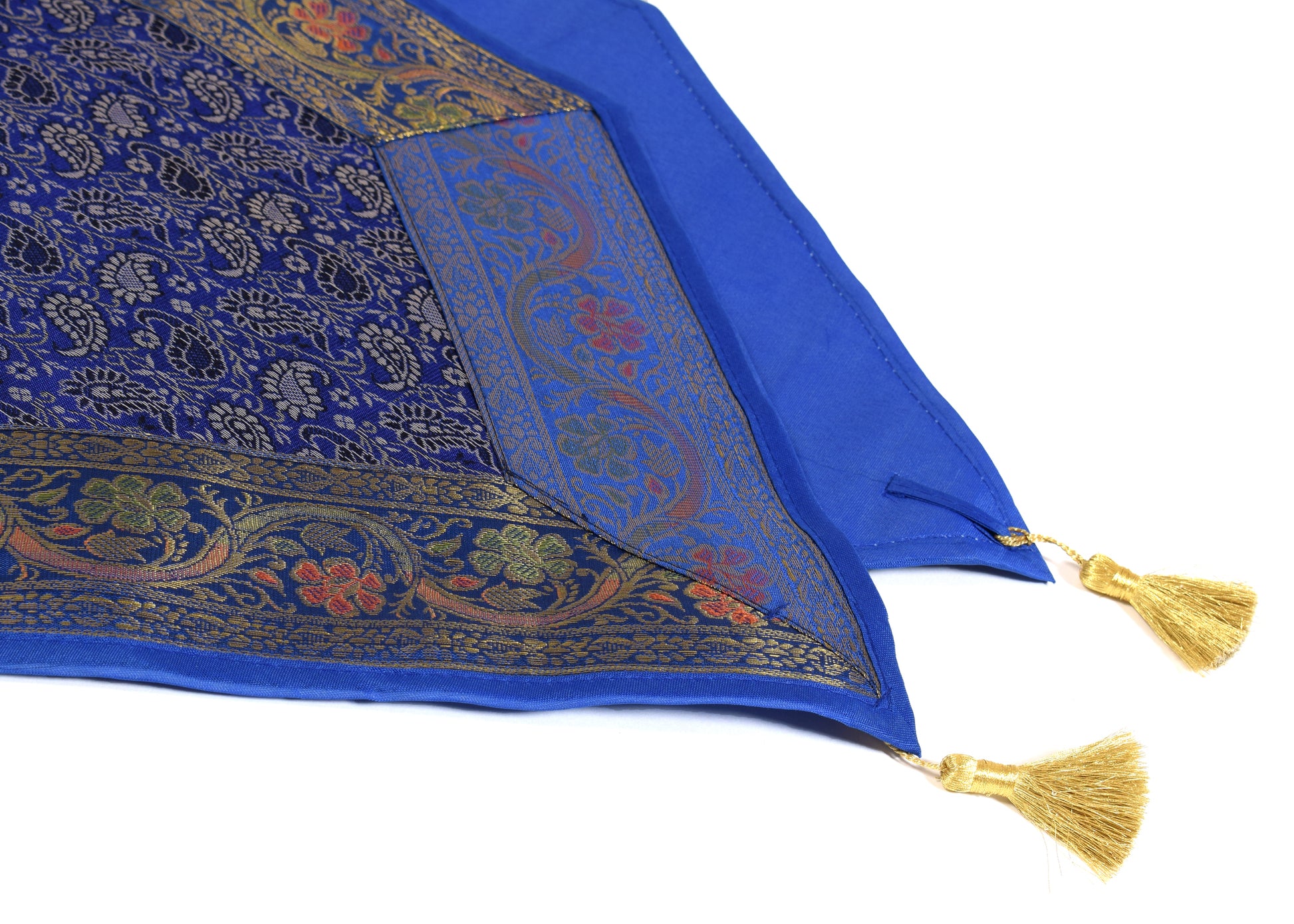 Blue Indian Table Runner Banarasi Silk Brocade Paisley Dining Home Decor Cloth