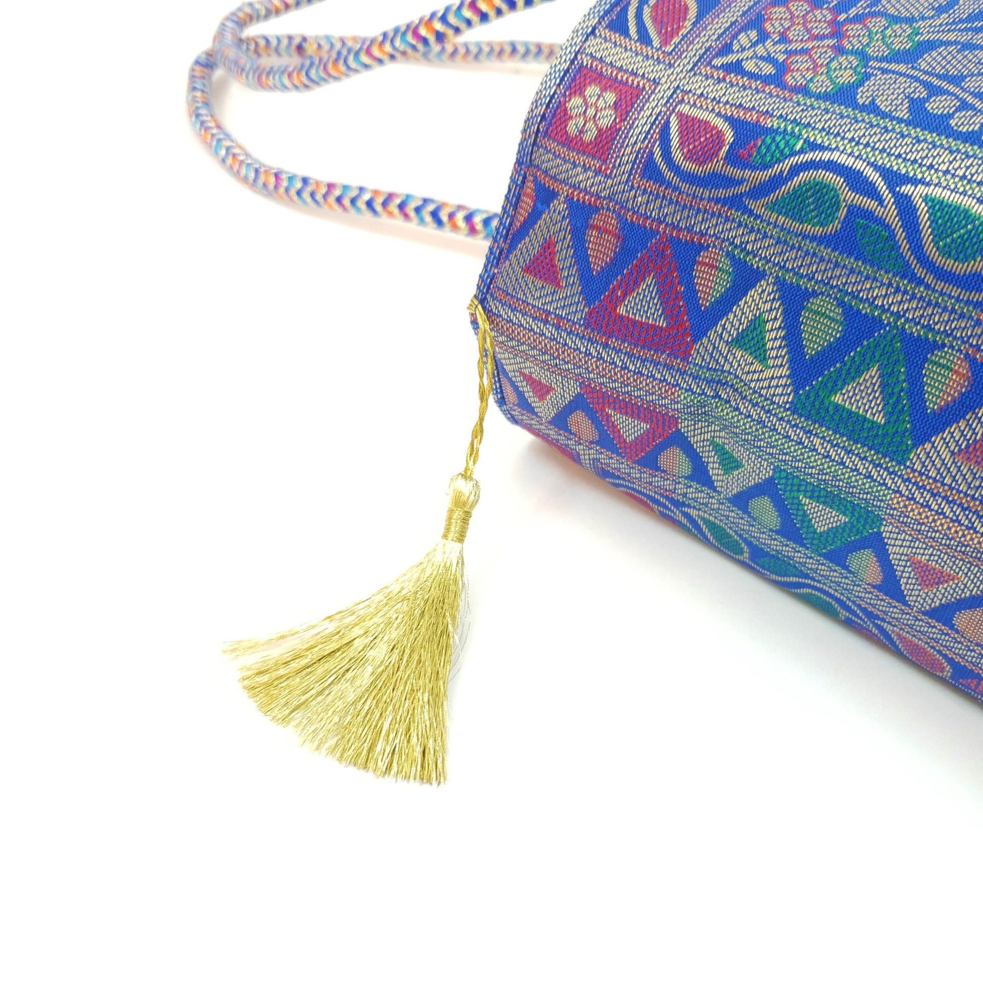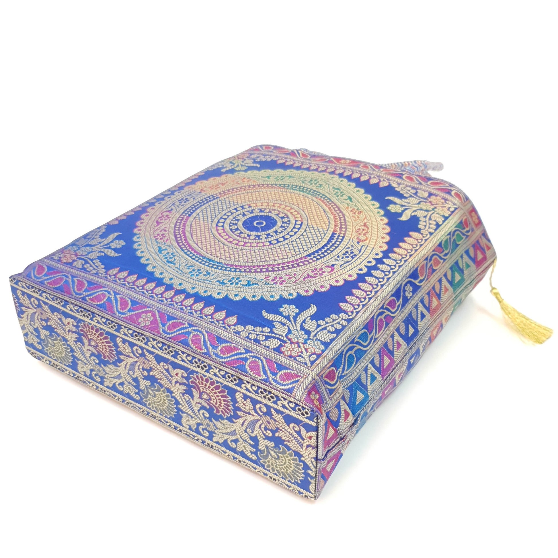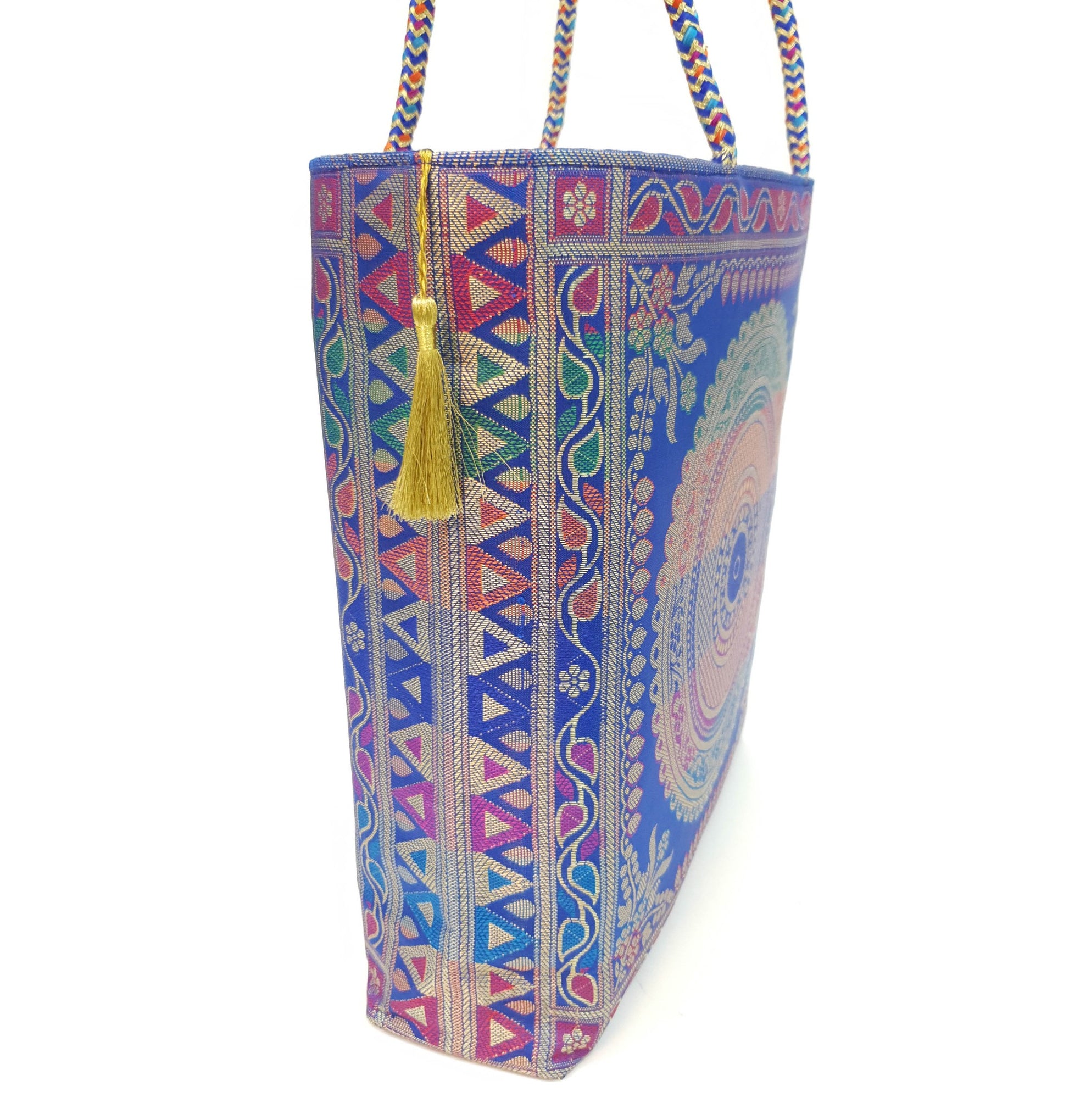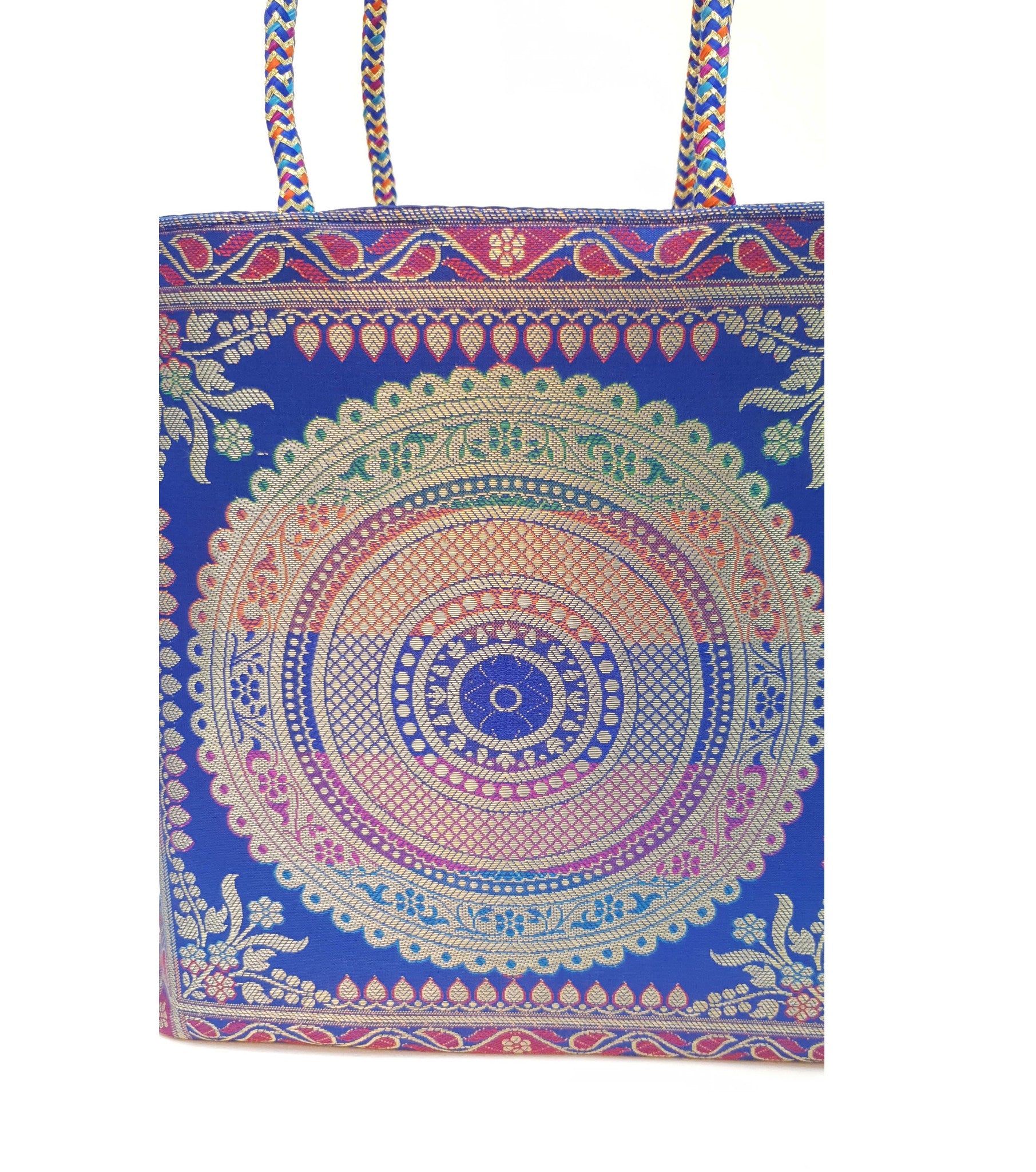 Blue Mandala Handbag Indian Ethnic Woven Zari Brocade Women Shoulder Hand Bag