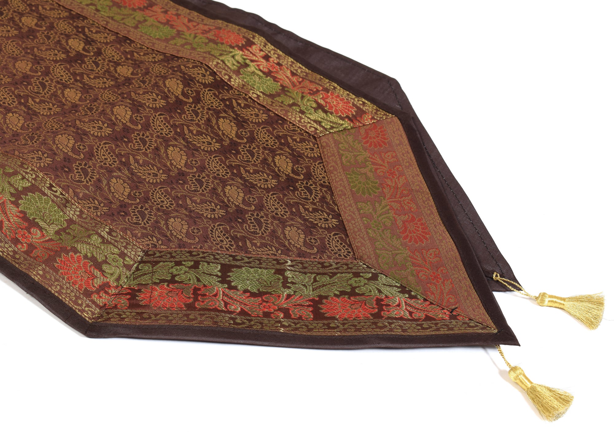 Brown Table Runner Dining Decor Indian Banarasi Silk Brocade Paisley Gift Cloth