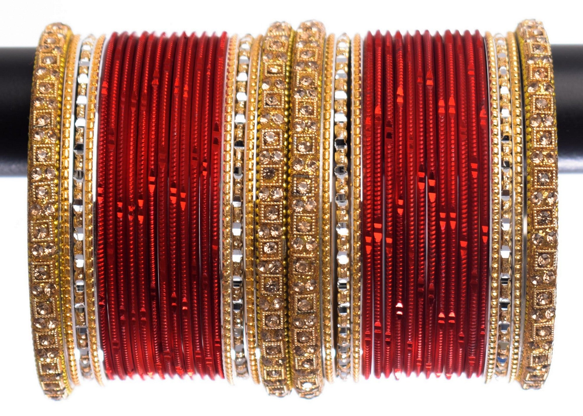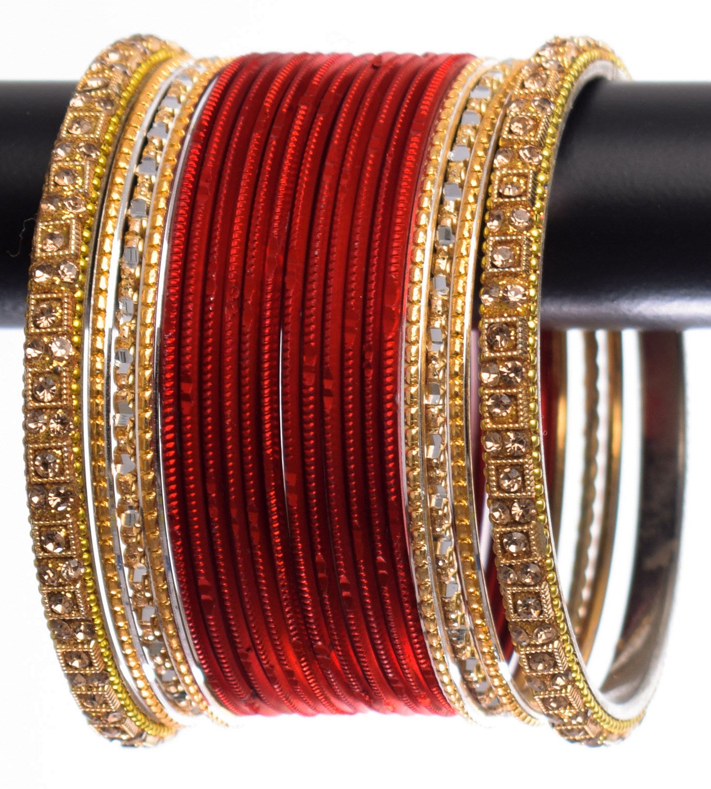 Costume Matching 40 Pc Indian Metal Bangles Bracelet Set in Size 2.8 Deep Red & Gold