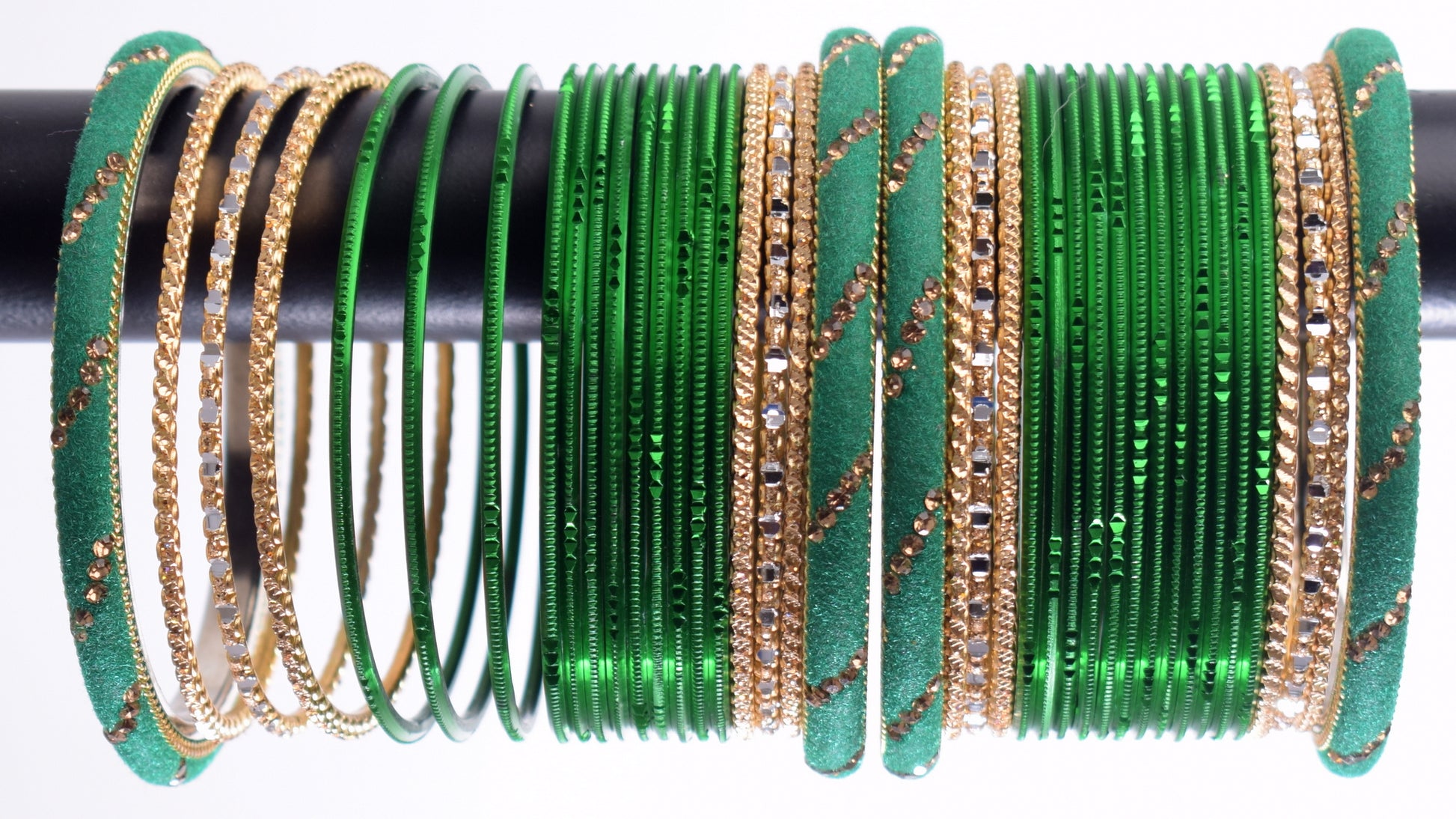 Costume Matching 40 Pc Indian Metal Bangles Bracelet Set in Size 2.8 Green