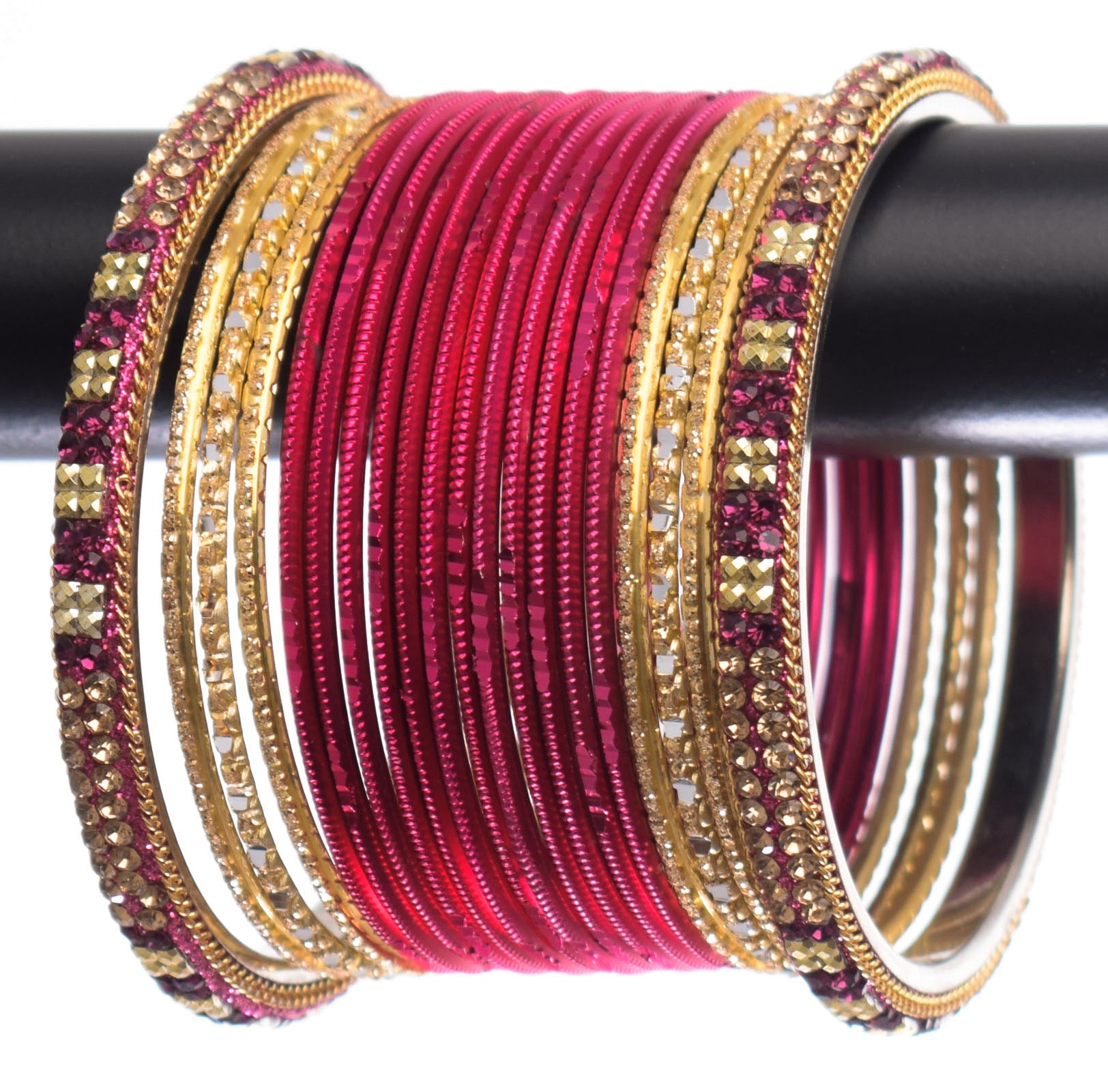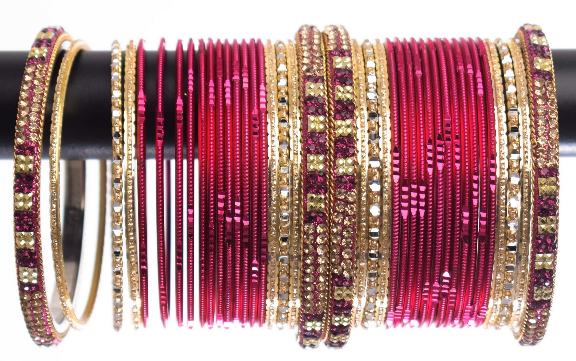 Costume Matching 40 Pc Indian Metal Bangles Bracelet Set in Size 2.8 Hot Pink / Rani