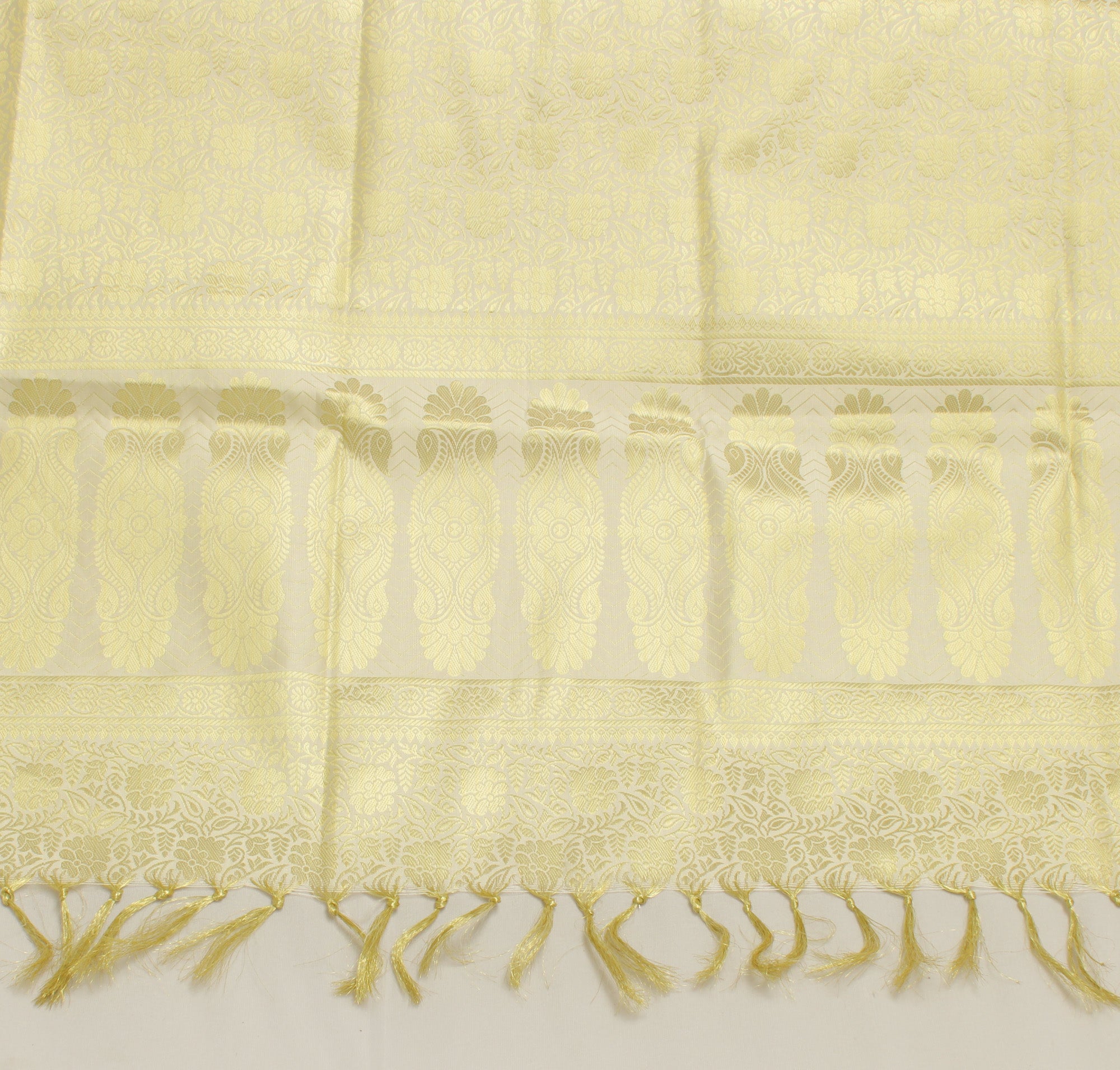 Cream Banarasi Dupatta Indian Art Silk Woven Zari Brocade Long Stole Scarves