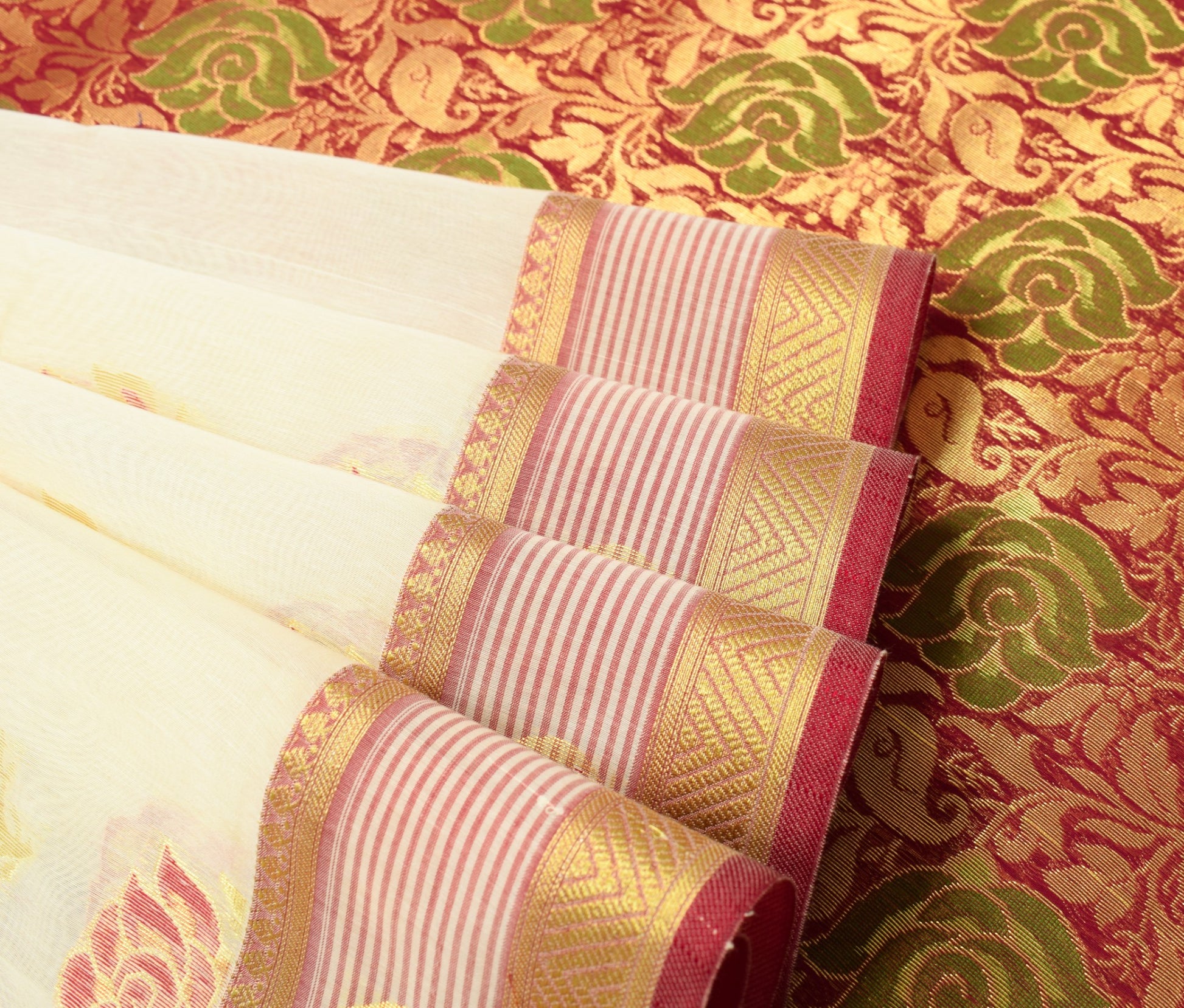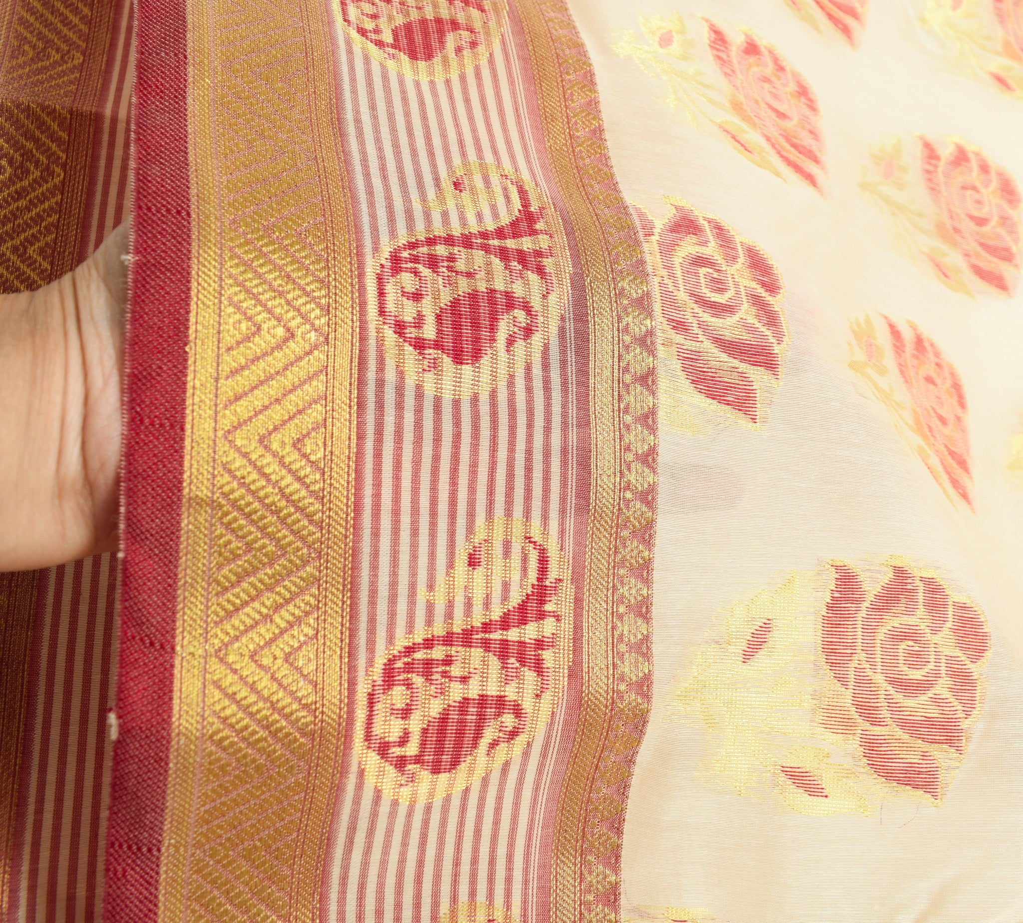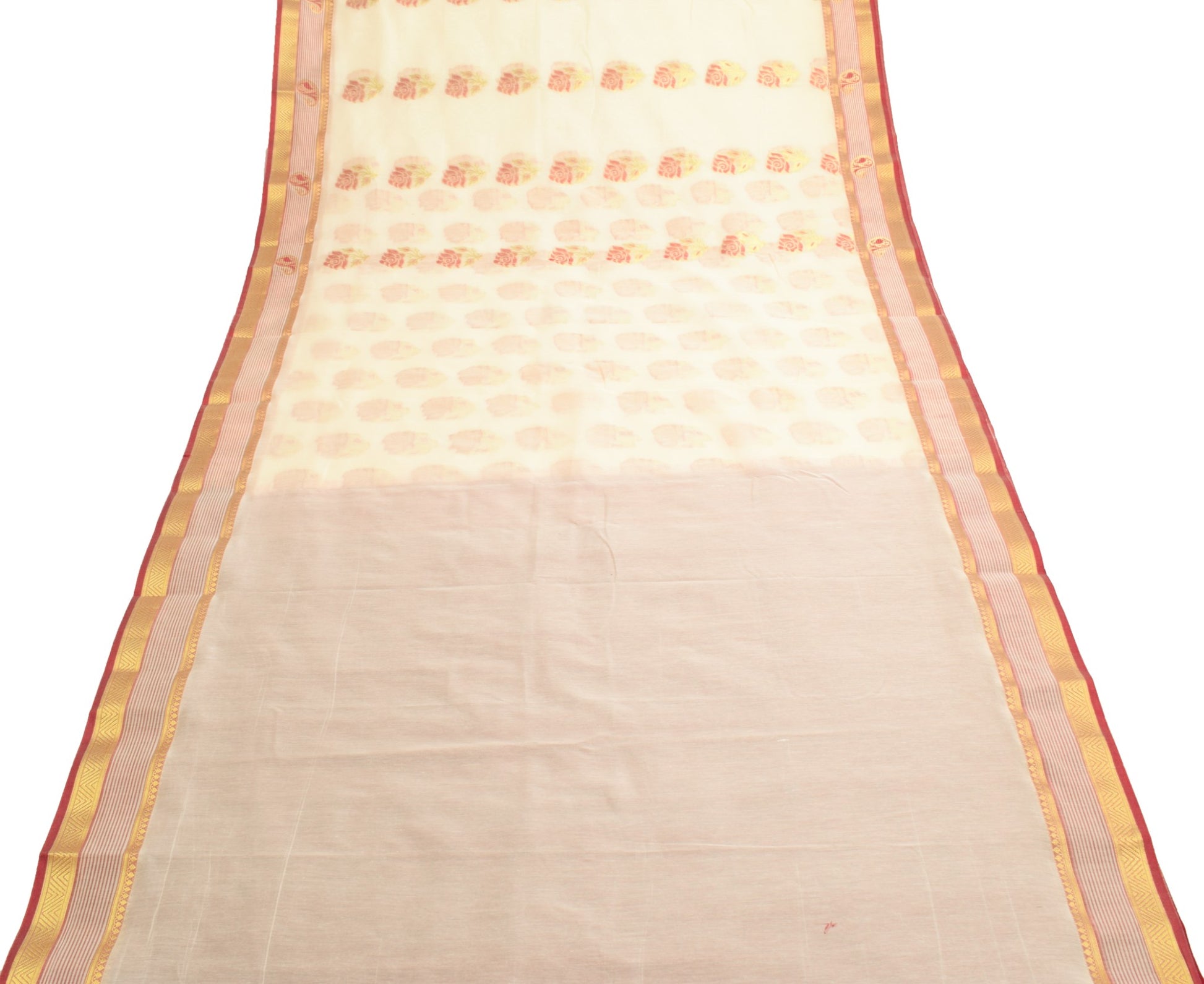 Cream Zari Woven Banarasi Saree Cotton Art Party Wear Sari with Blouse Fabric