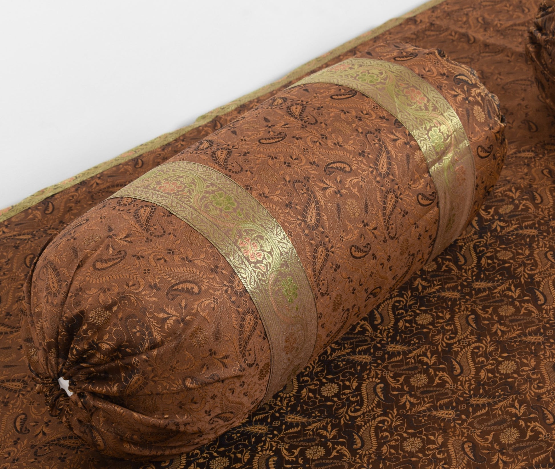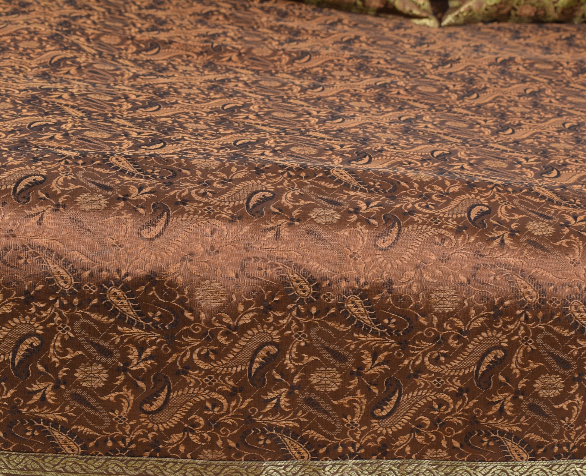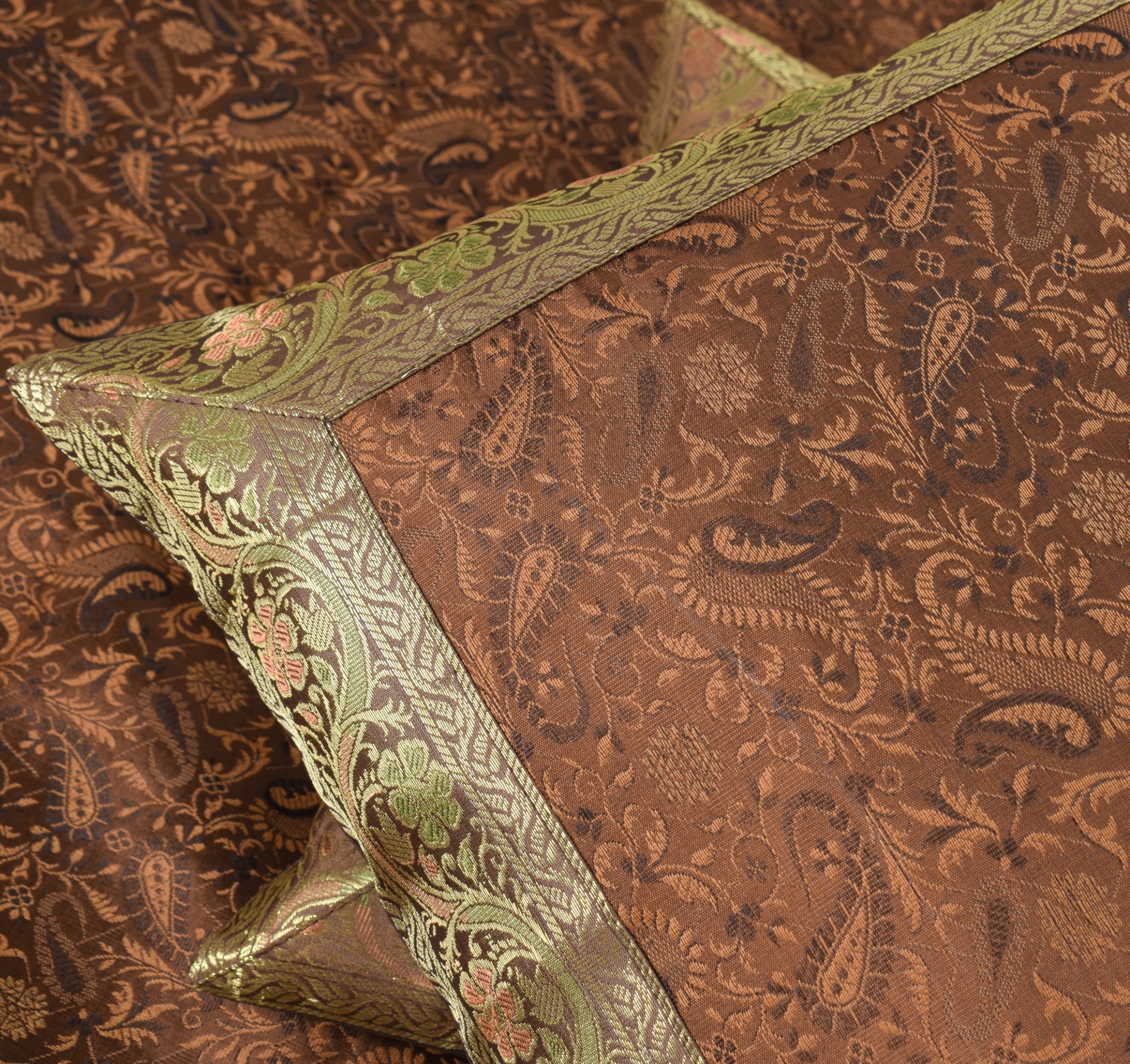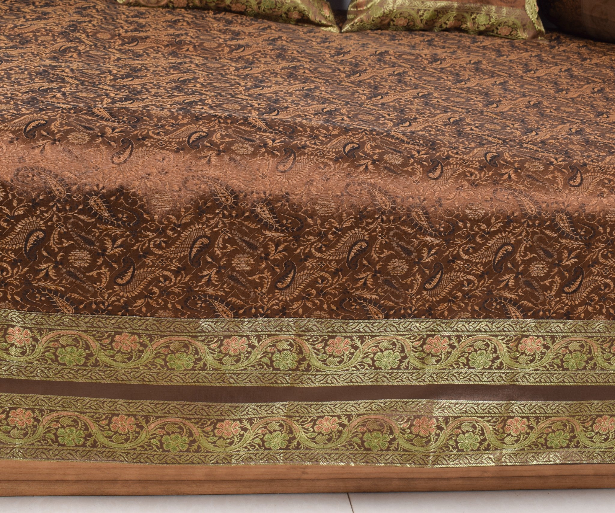 Dark Brown Banarasi Diwan Set Silk Zari Brocade Gift Cushion & Bolster Cover
