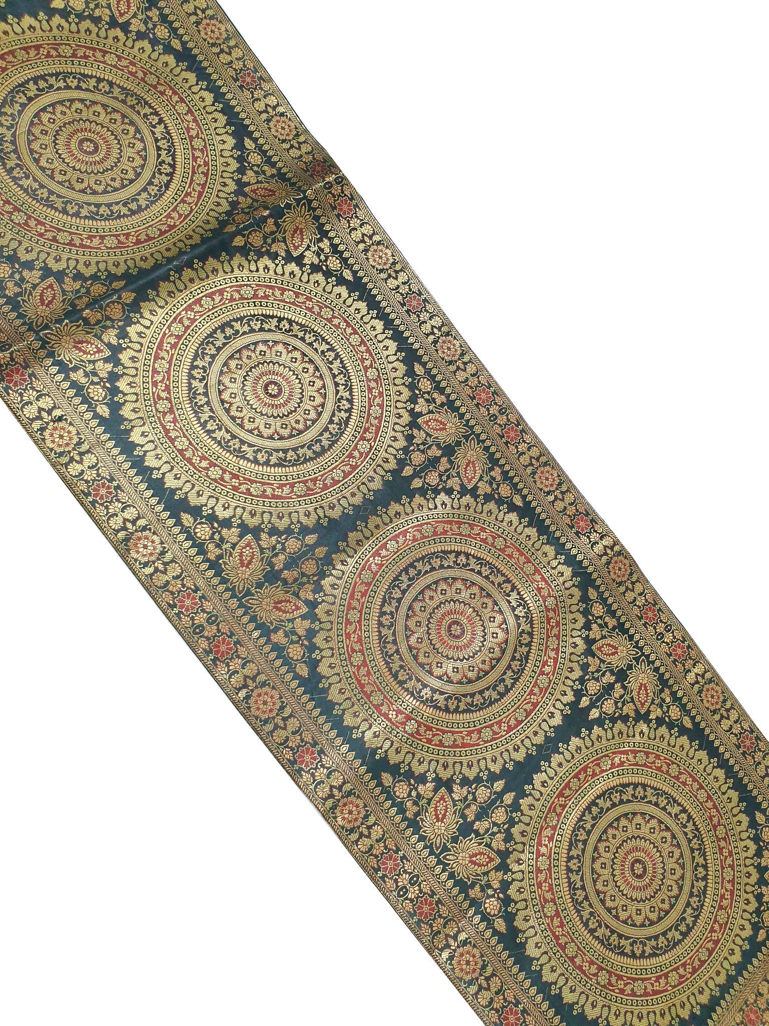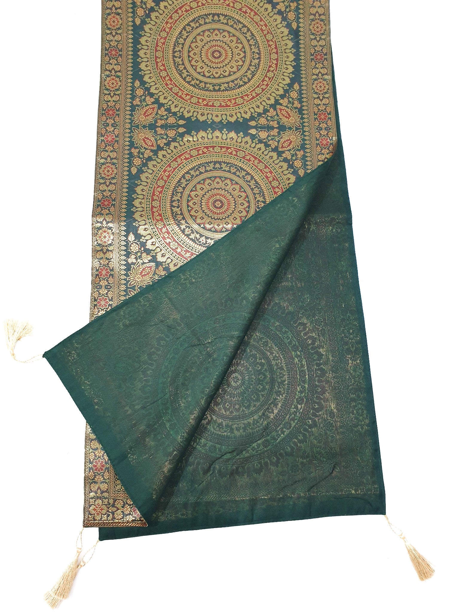 Dark Green Table Runner 72x16" Banarasi Silk Brocade Mandala Dining Decor Cloth