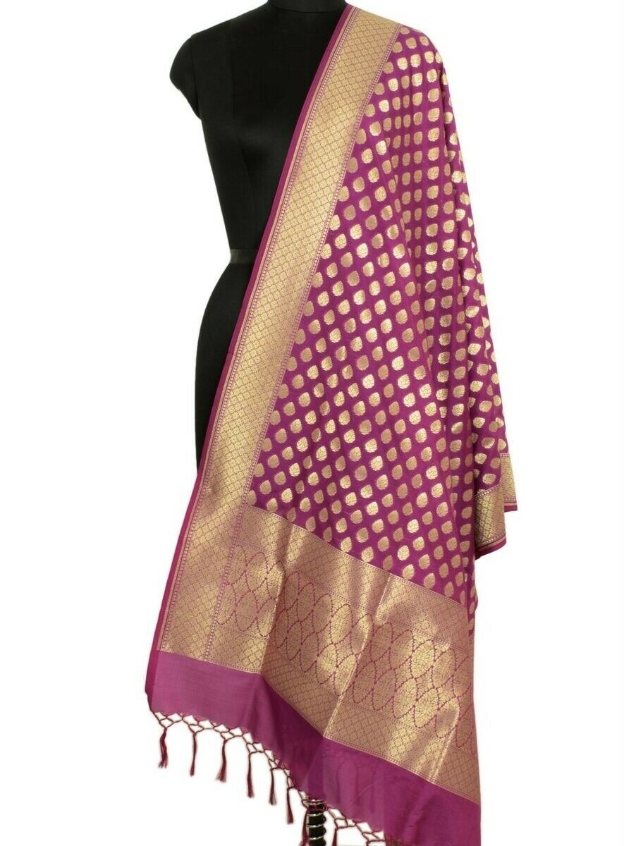Dark Magenta Banarasi Silk Dupatta Woven Zari Brocade Indian Long Stole Wrap Sha