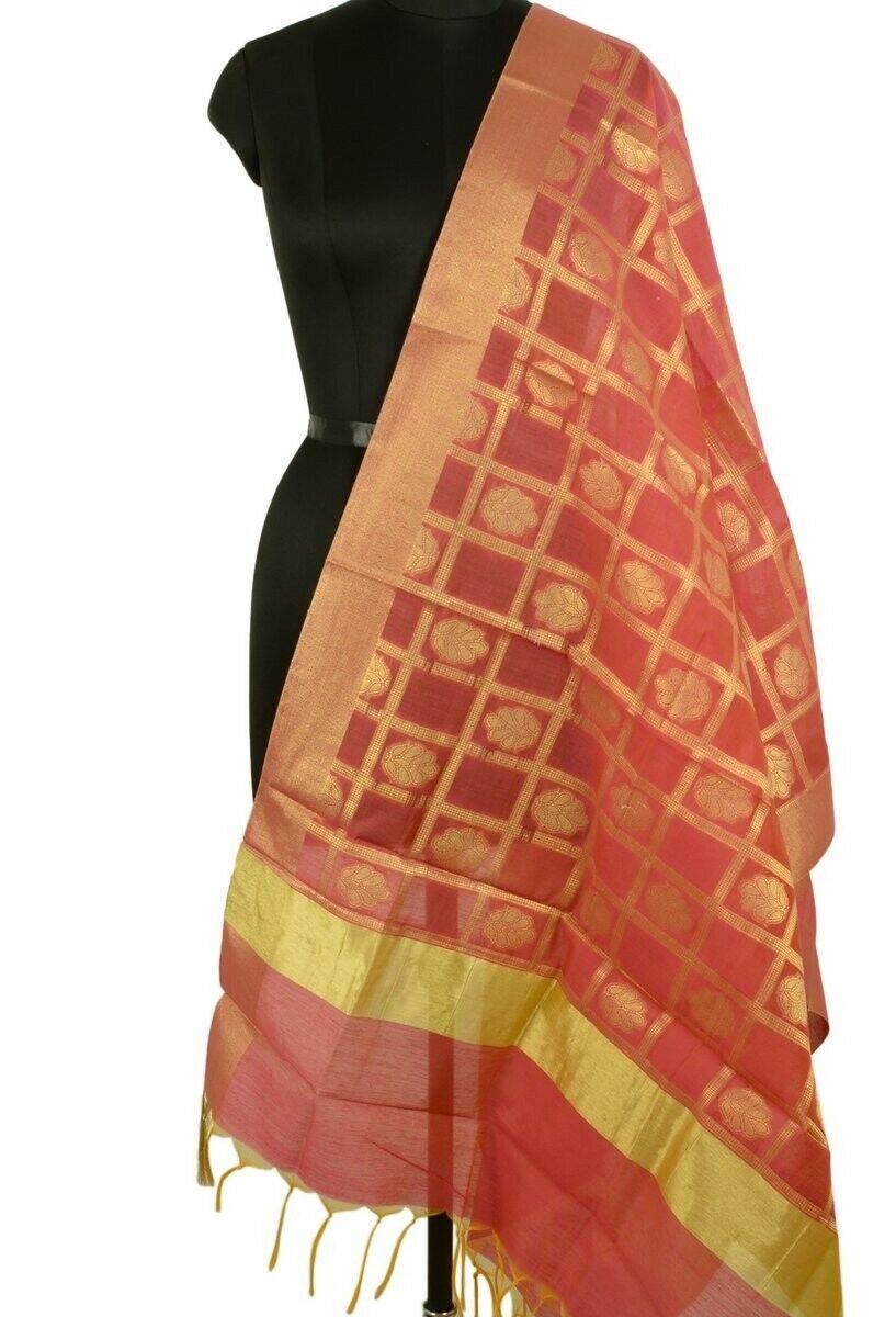 Dark Pink Banarasi Dupatta Floral Woven Zari Brocade Indian Long Stole Wrap Shaw