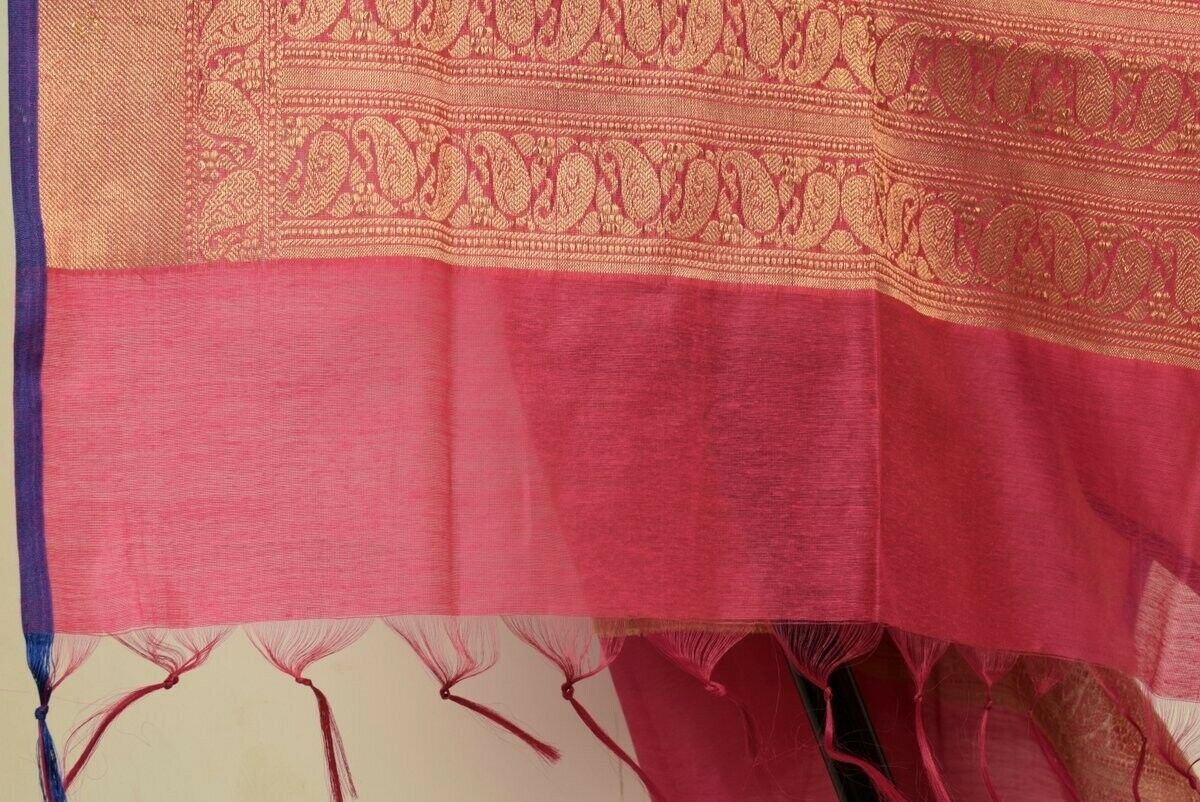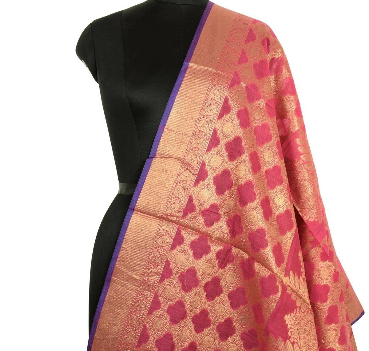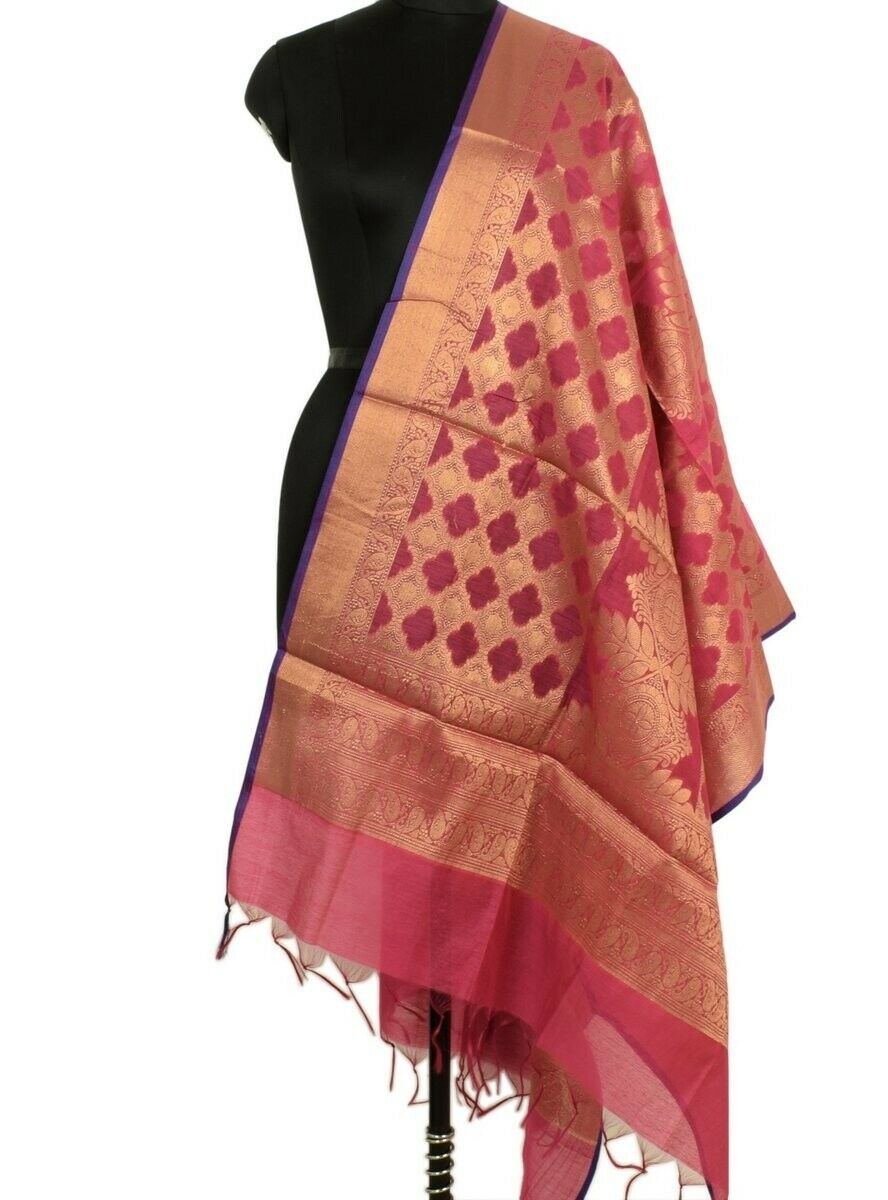 Dark Pink Banarasi Silk Dupatta Woven Zari Brocade Indian Long Stole Wrap Shawl