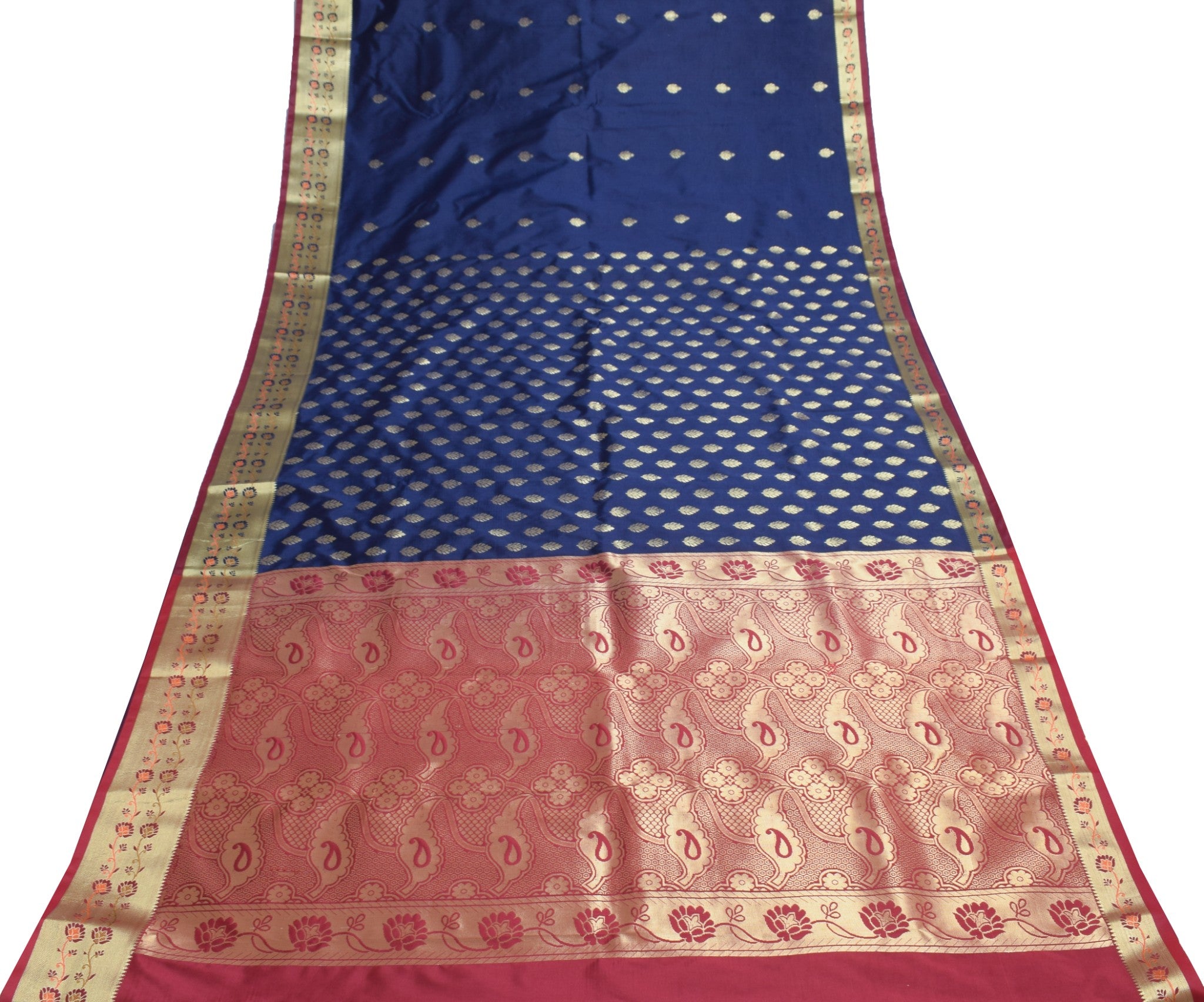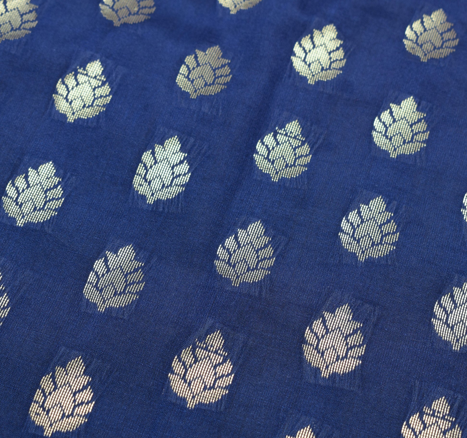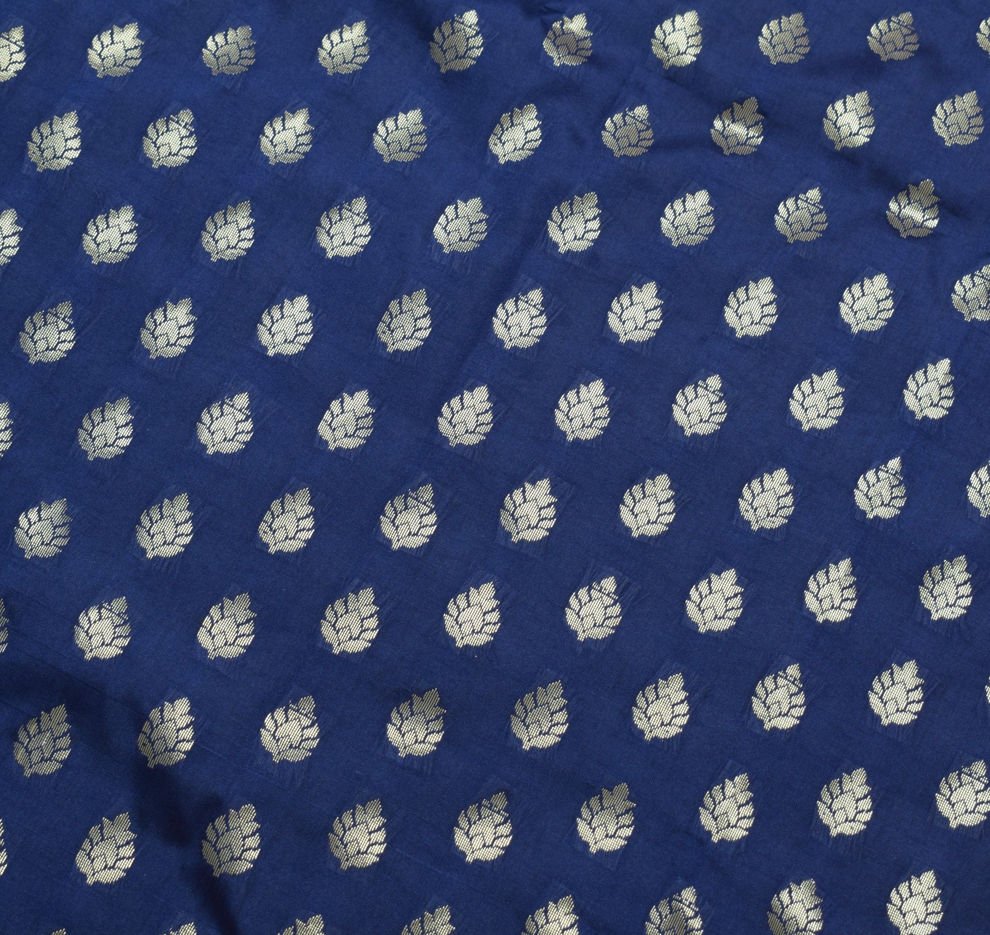 Deep Blue Banarasi Sari Art Silk Zari Woven Leaf Motifs Saree with Blouse Fabric