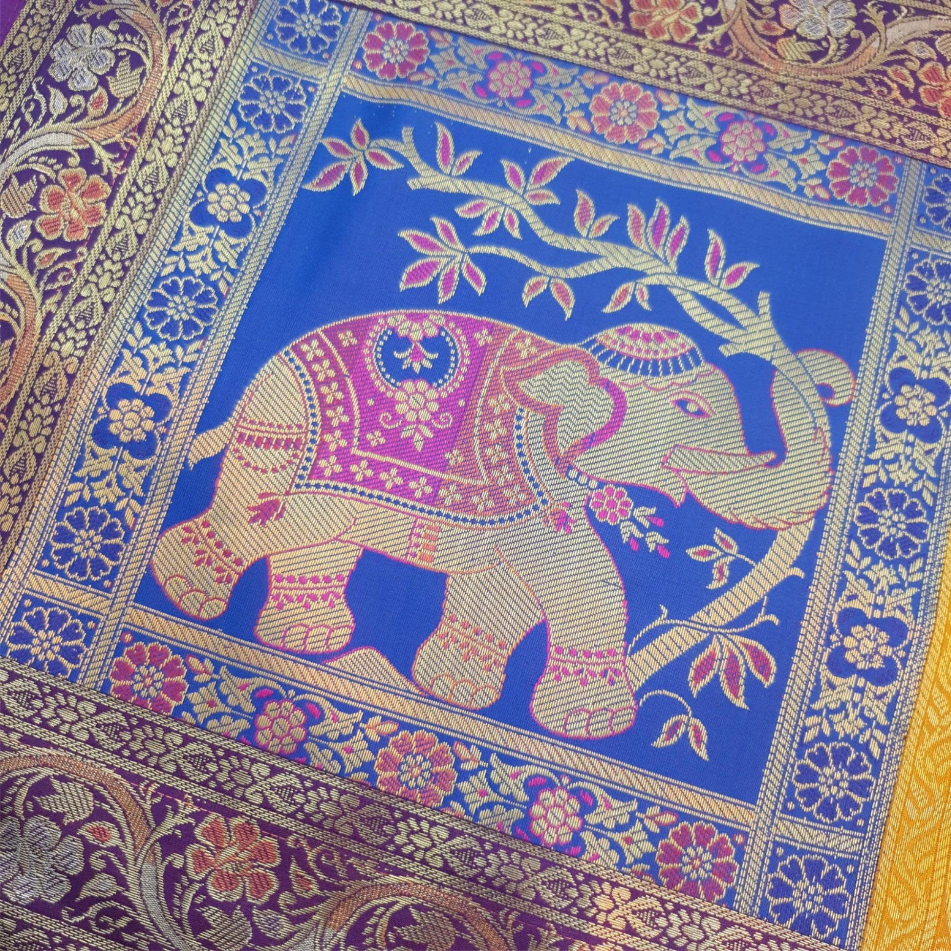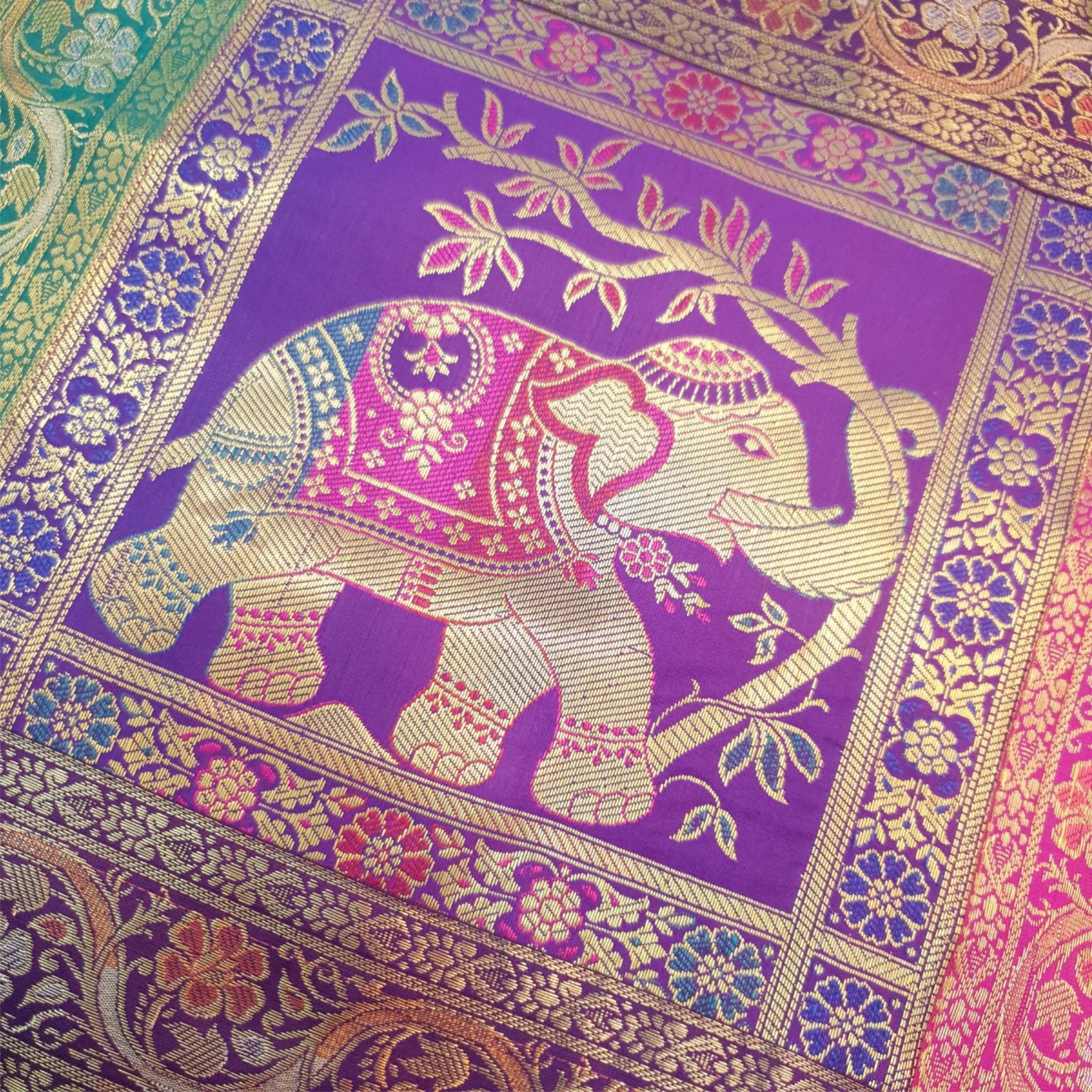 Dining Cover Table Runner Elephant Woven Zari Brocade Banarasi Decor Multi Color