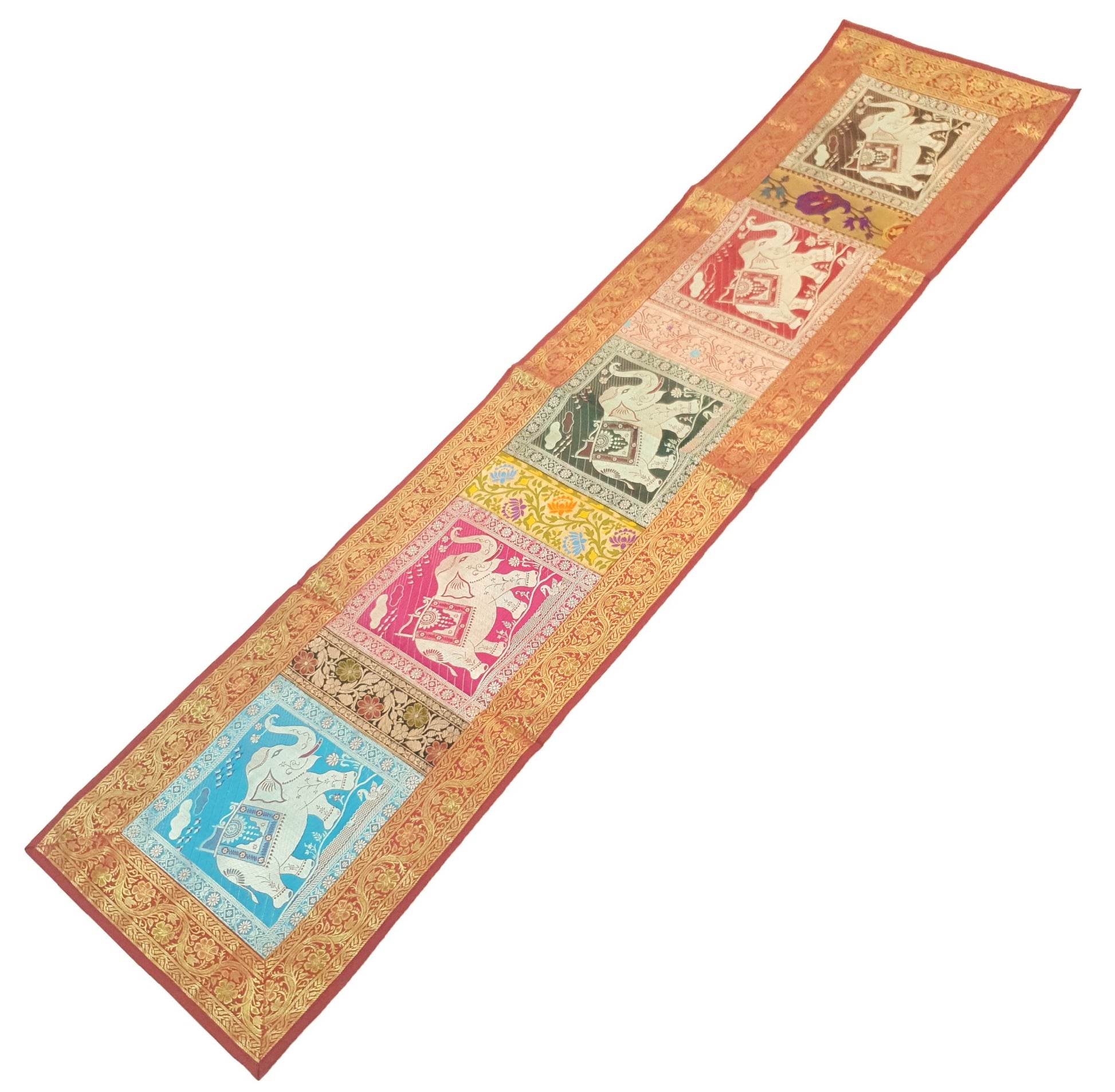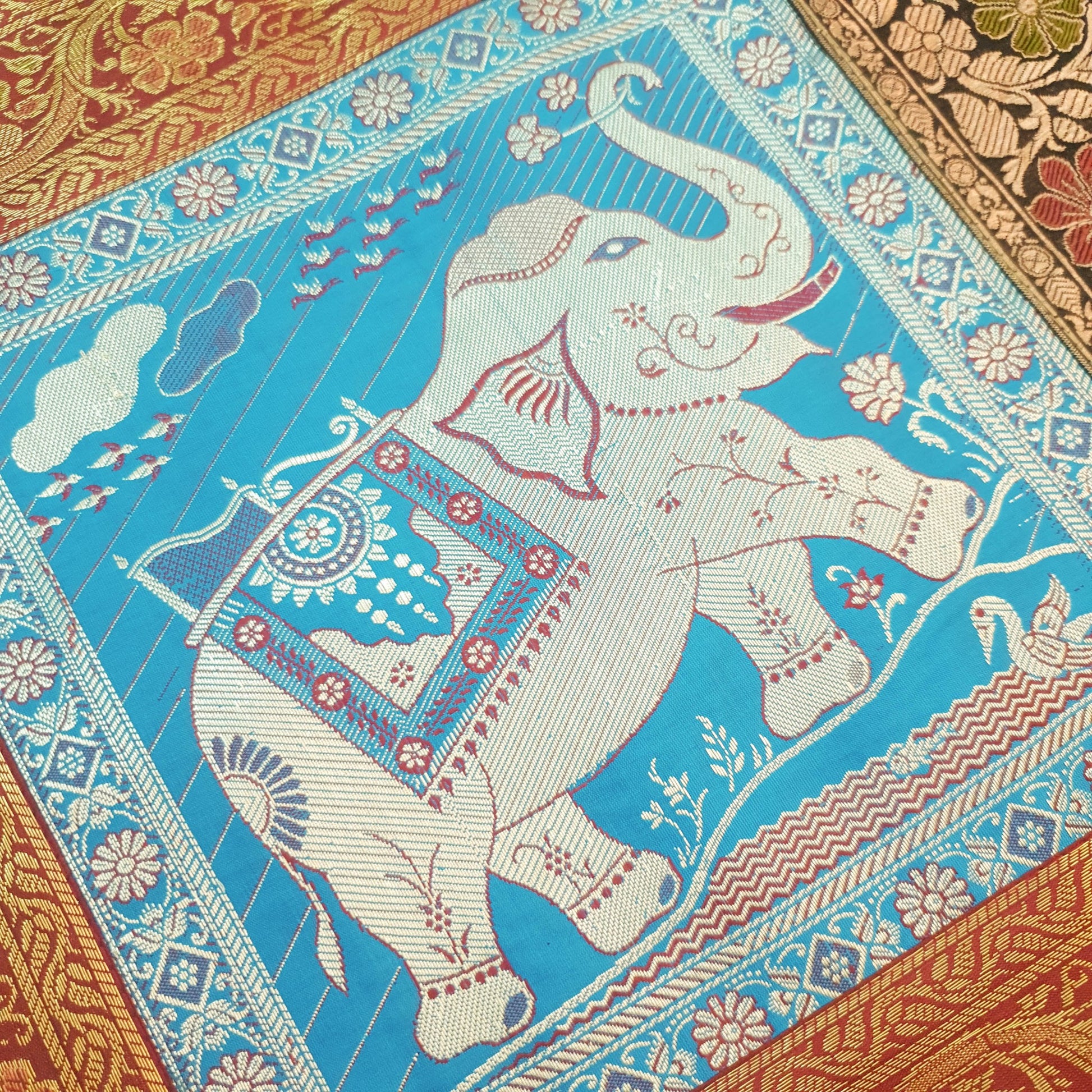 Dining Cover Table Runner Elephant Woven Zari Brocade Banarasi Gift Multi Color