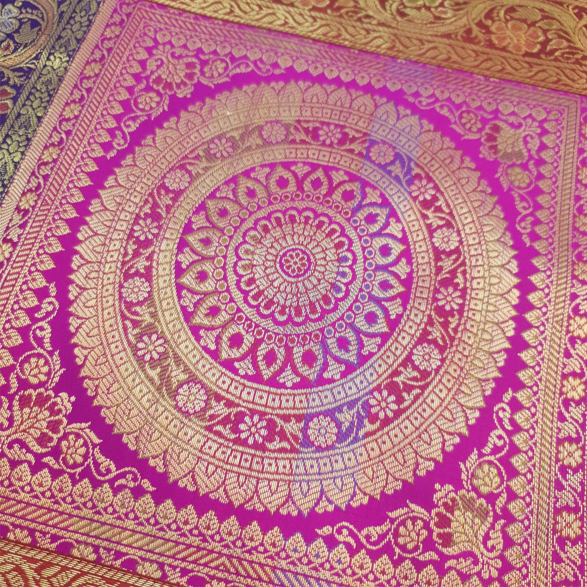 Crafted from premium quality Banarasi fabric, renowned for its durability and lustrous finish, this piece is not just a decorative accent but also a symbol of craftsmanship and heritage. Each thread tells a story of tradition and artistry, making it a cherished addition to your home decor collection.