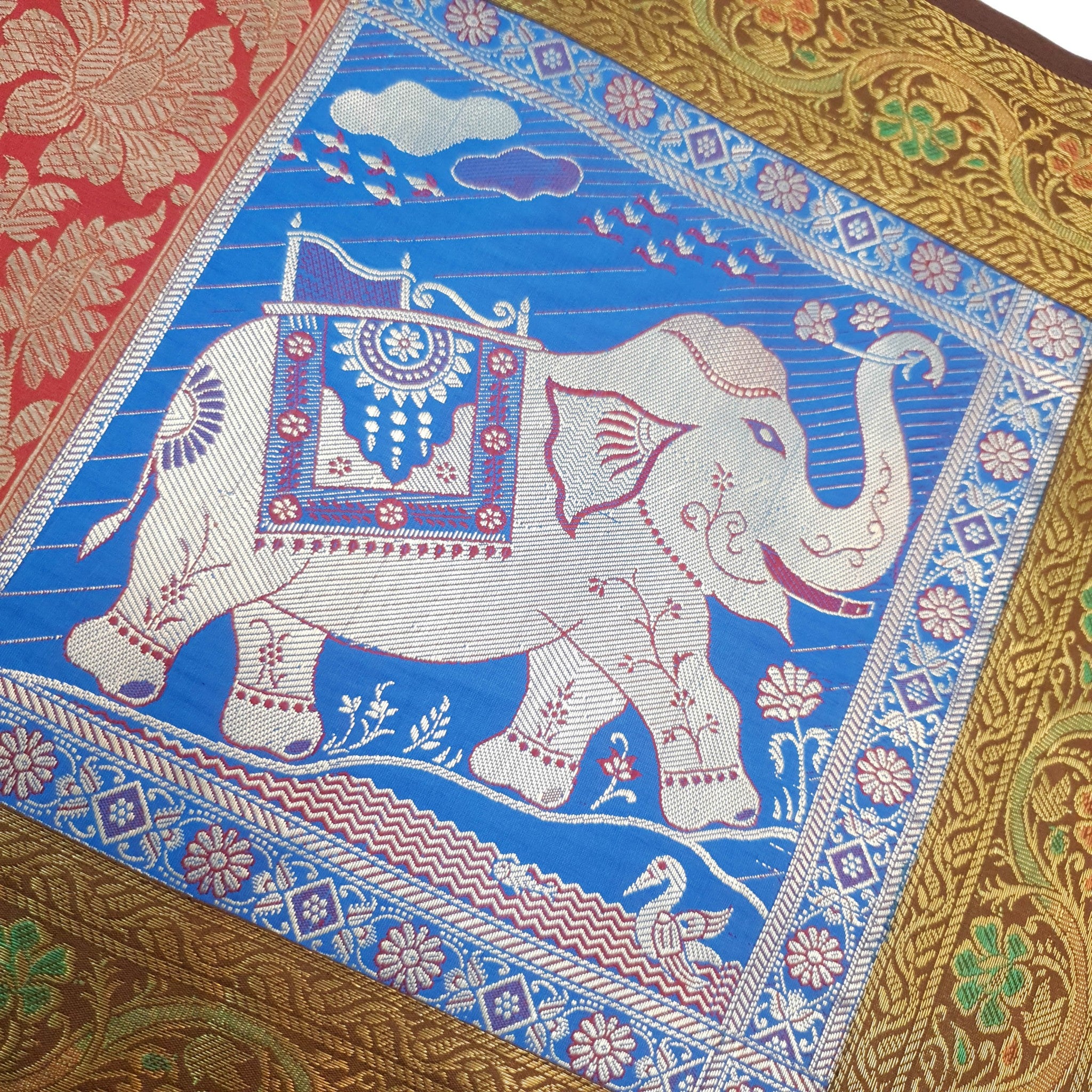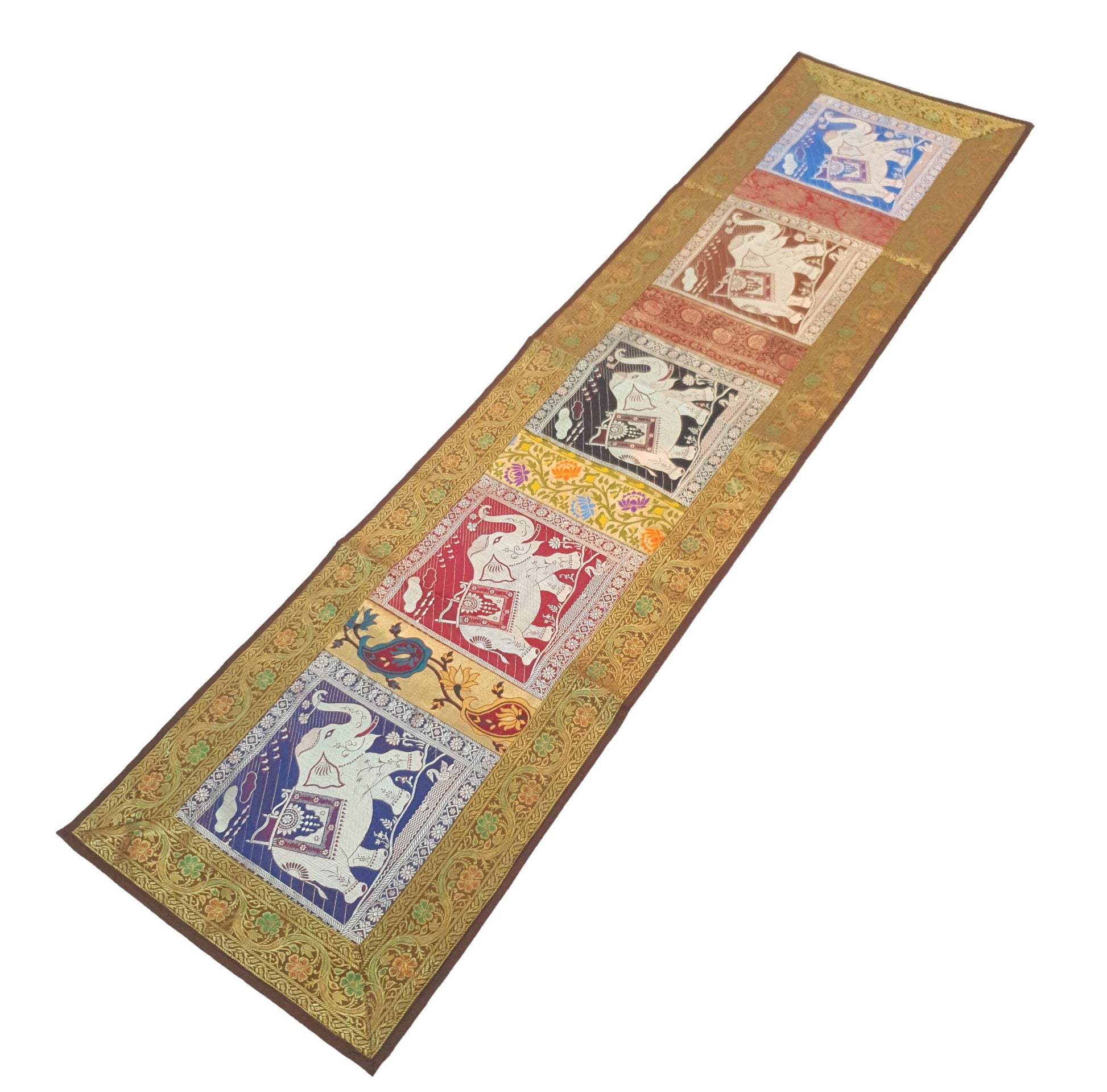 Dining Table Runner Elephant Woven Zari Brocade Banarasi Cover Multi Color