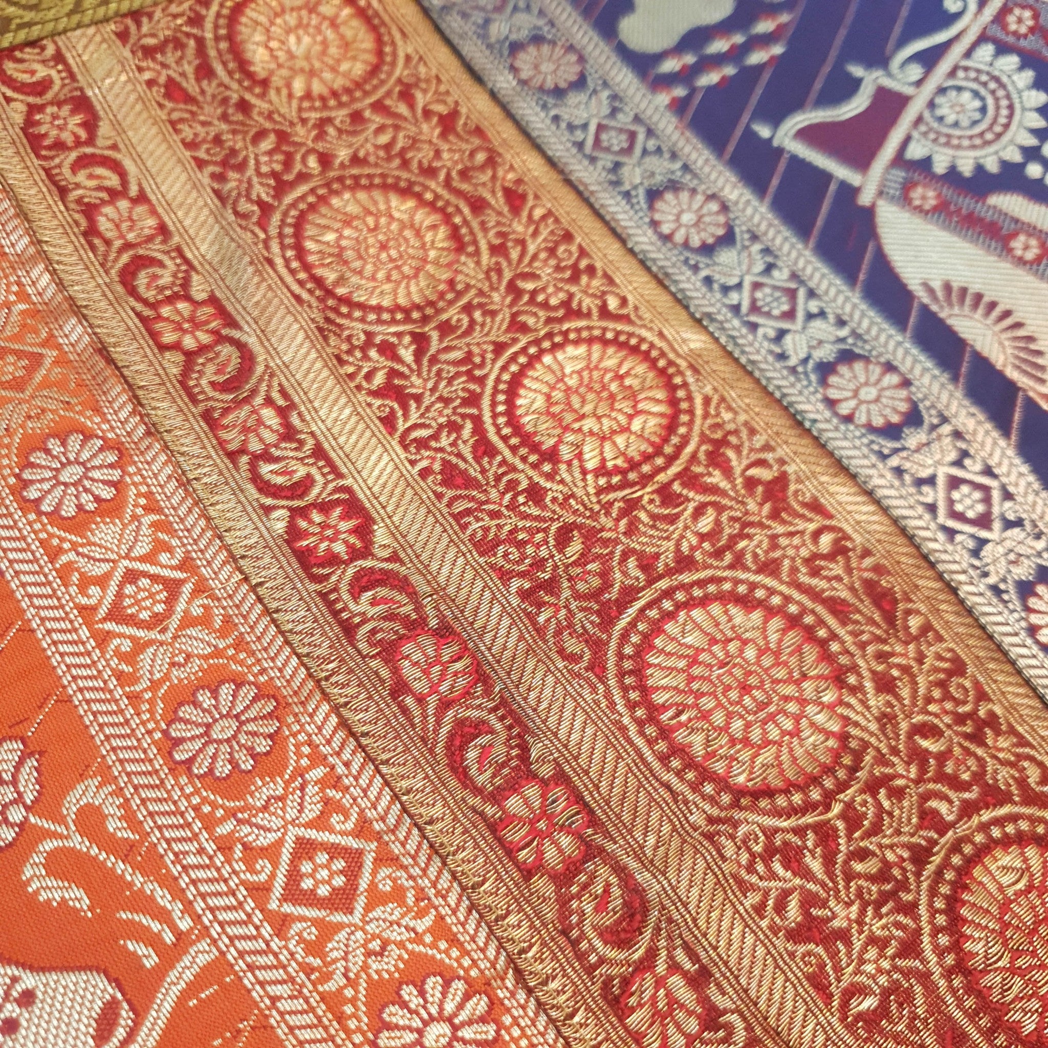 Step into a world of timeless elegance with our exquisite Woven Zari Brocade Banarasi Fabric Table Runner or Wall Tapestry. Crafted with meticulous attention to detail, this piece effortlessly blends tradition with contemporary style, adding a touch of opulence to any space.