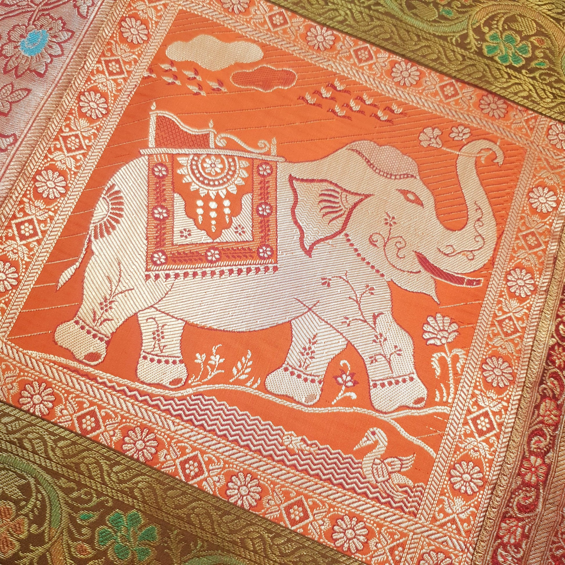 Dining Table Runner Elephant Woven Zari Brocade Banarasi Decor Cover Multi Color
