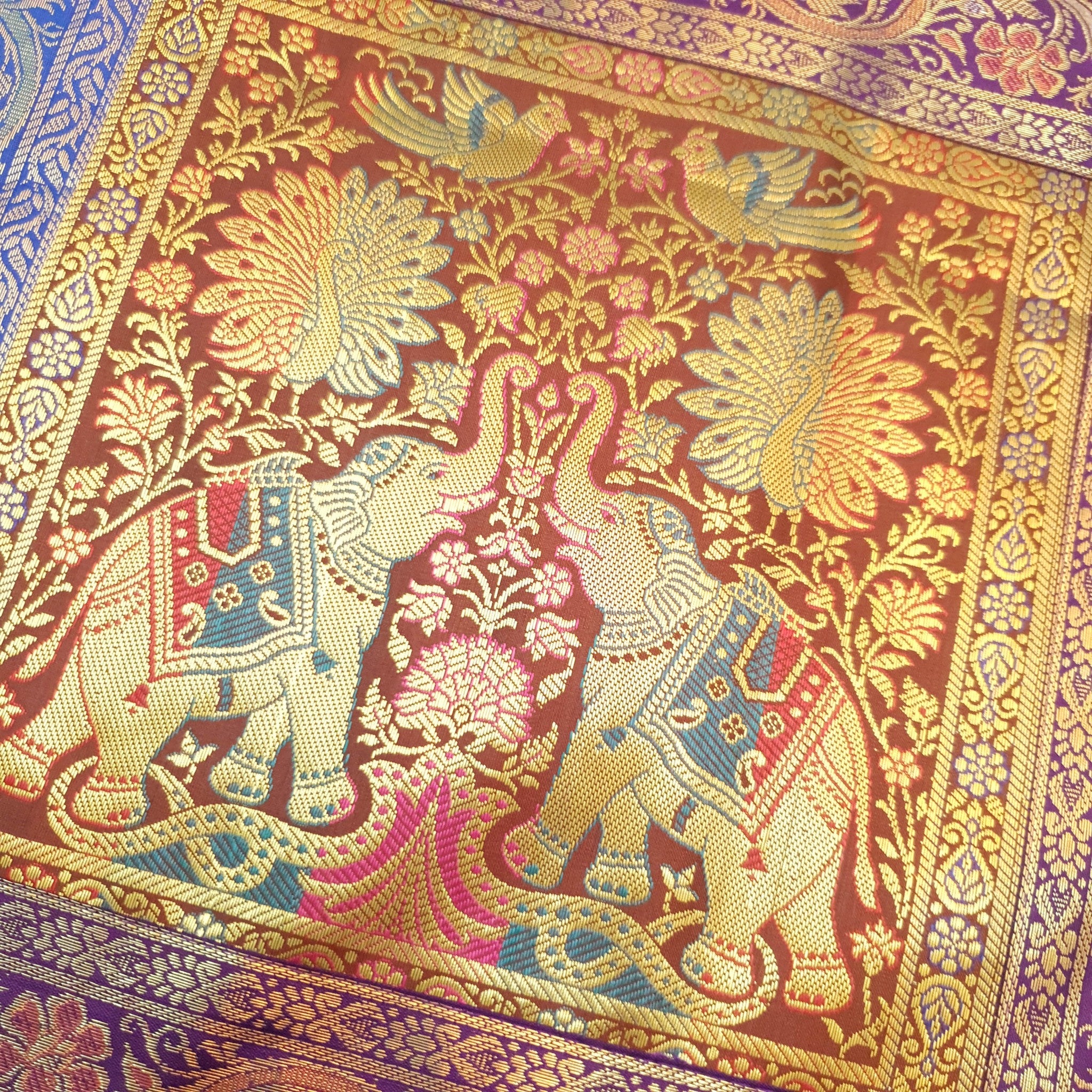 Dining Table Runner Ethnic Handmade Gold Banarasi Brocade Silk Elephant Work
