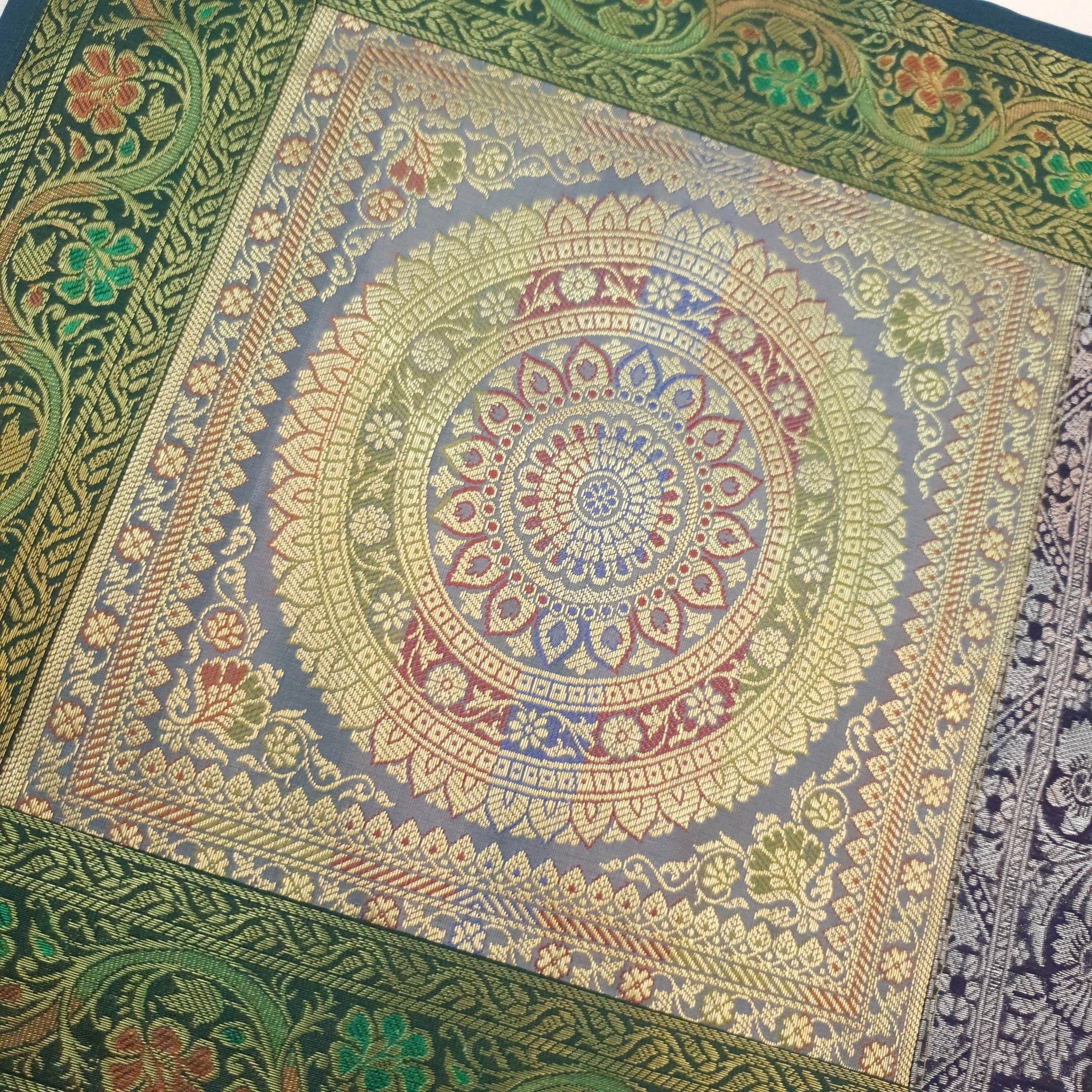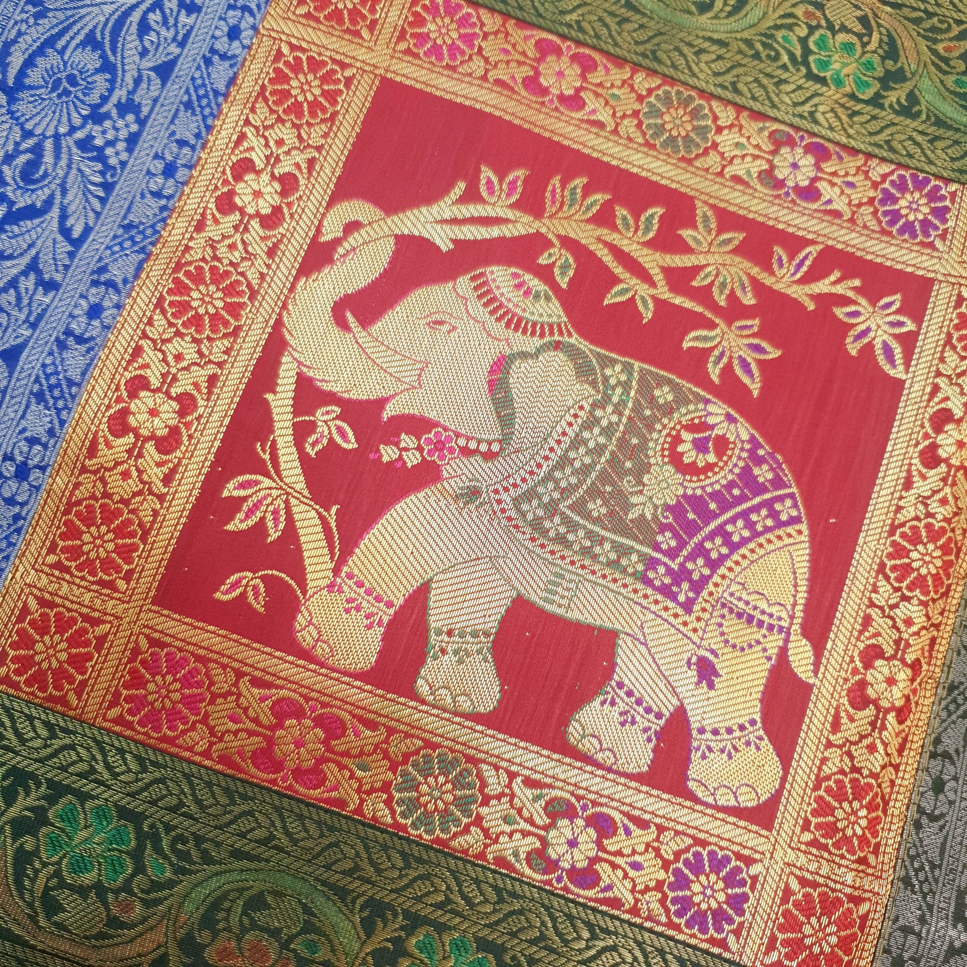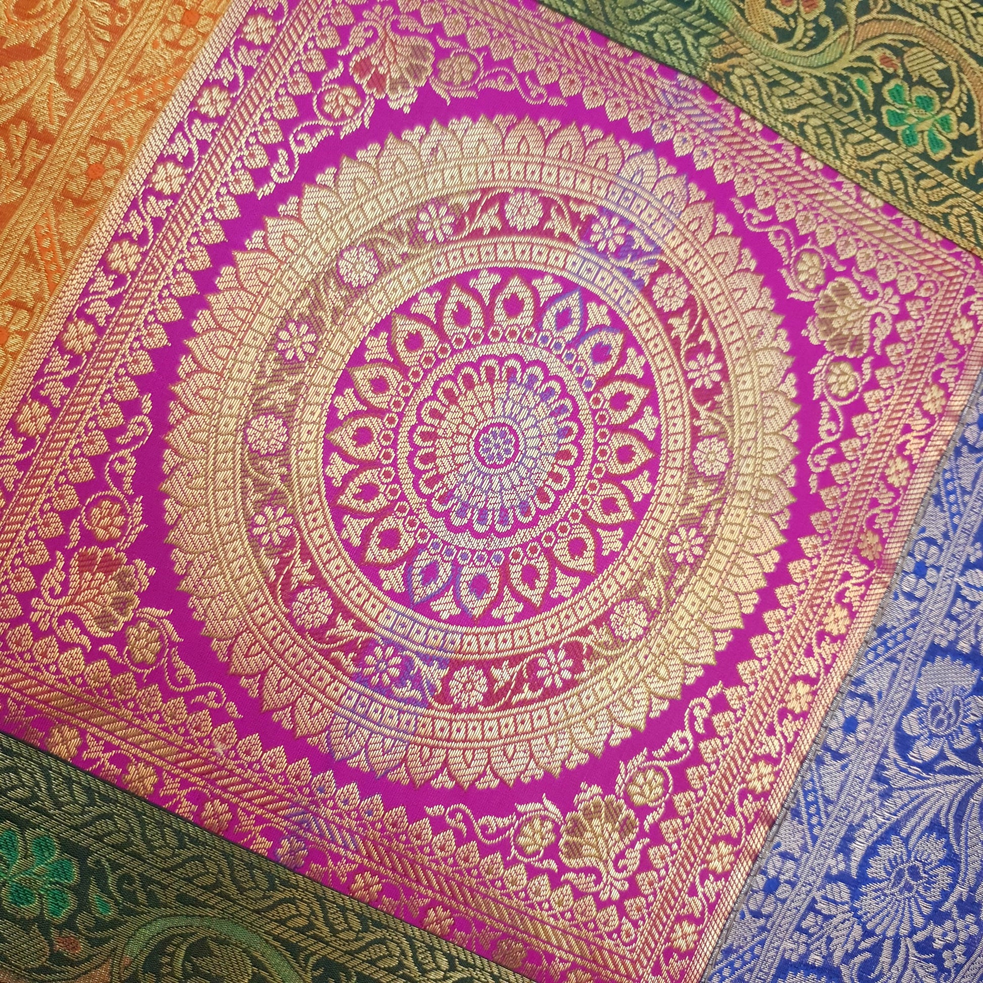 Crafted from premium quality Banarasi fabric, renowned for its durability and lustrous finish, this piece is not just a decorative accent but also a symbol of craftsmanship and heritage. Each thread tells a story of tradition and artistry, making it a cherished addition to your home decor collection.