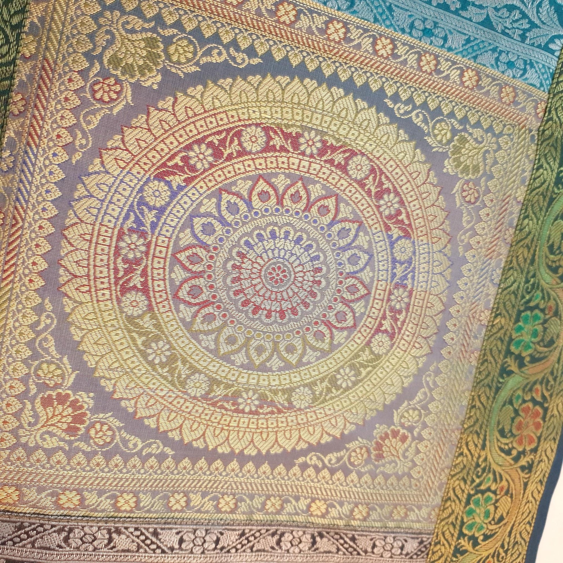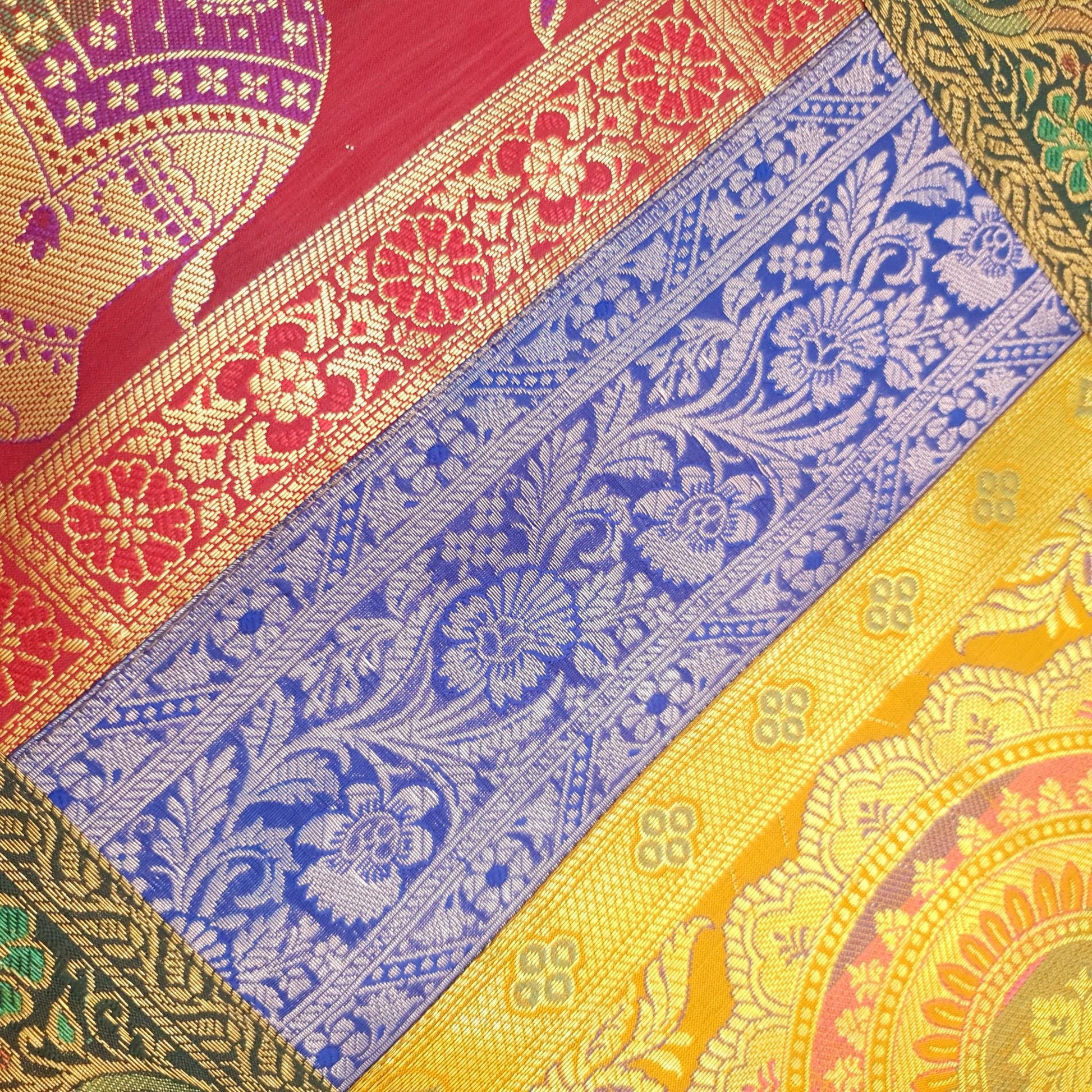 Step into a world of timeless elegance with our exquisite Woven Zari Brocade Banarasi Fabric Table Runner or Wall Tapestry. Crafted with meticulous attention to detail, this piece effortlessly blends tradition with contemporary style, adding a touch of opulence to any space.