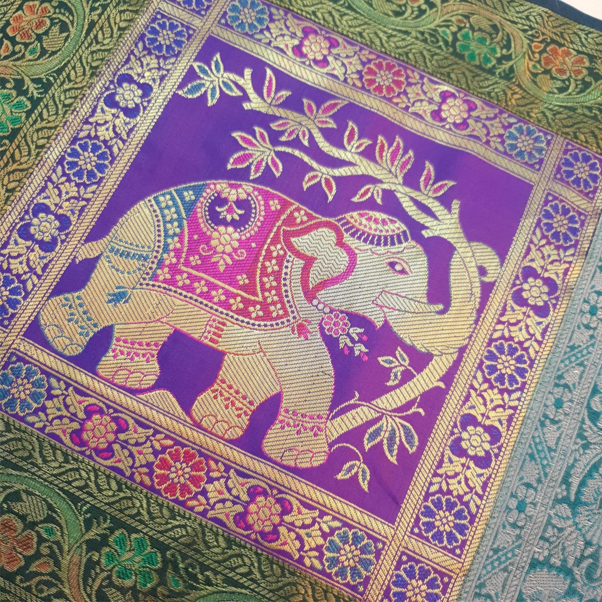 Dining Table Runner Handmade Elephant Mandala Woven Gold Banarasi Brocade Silk