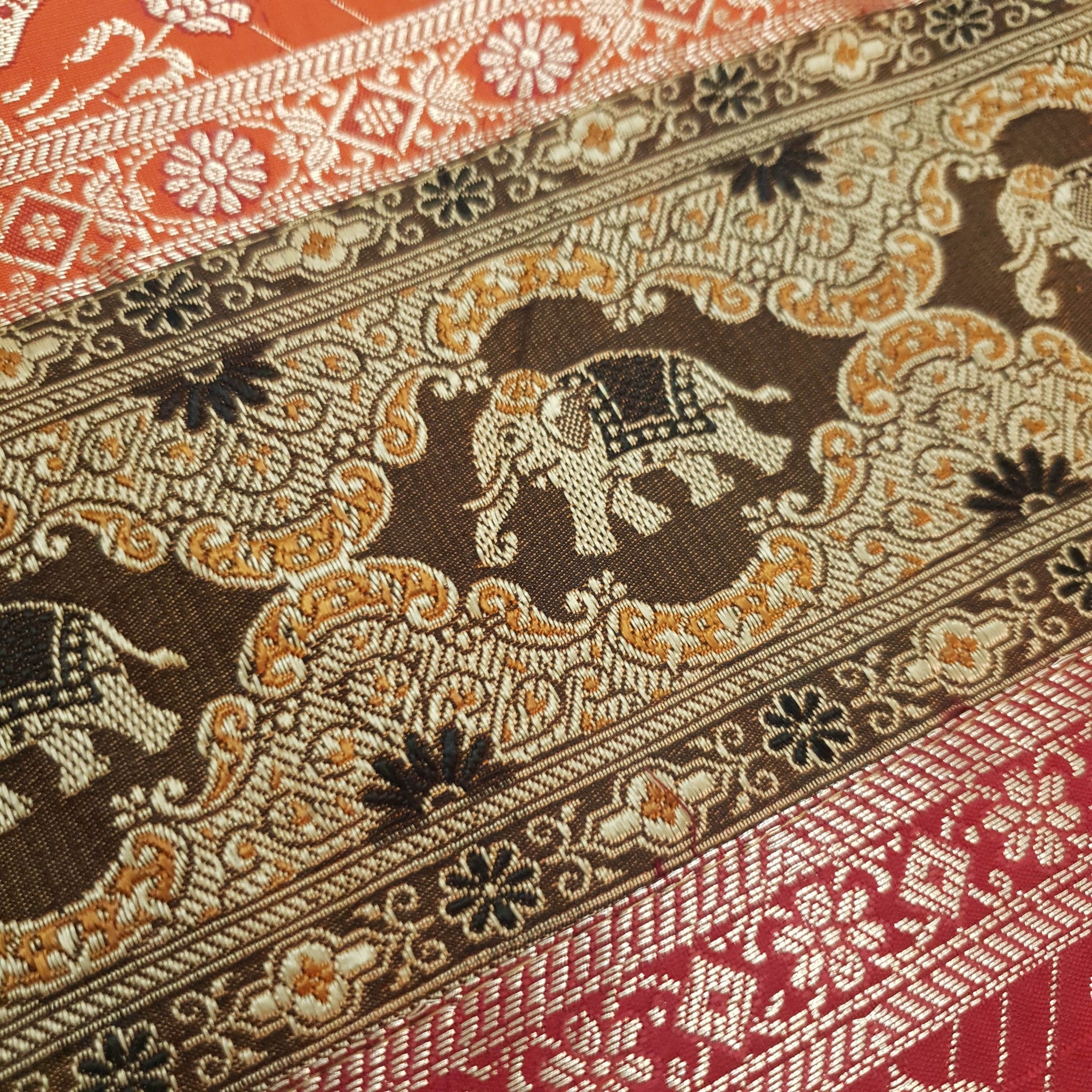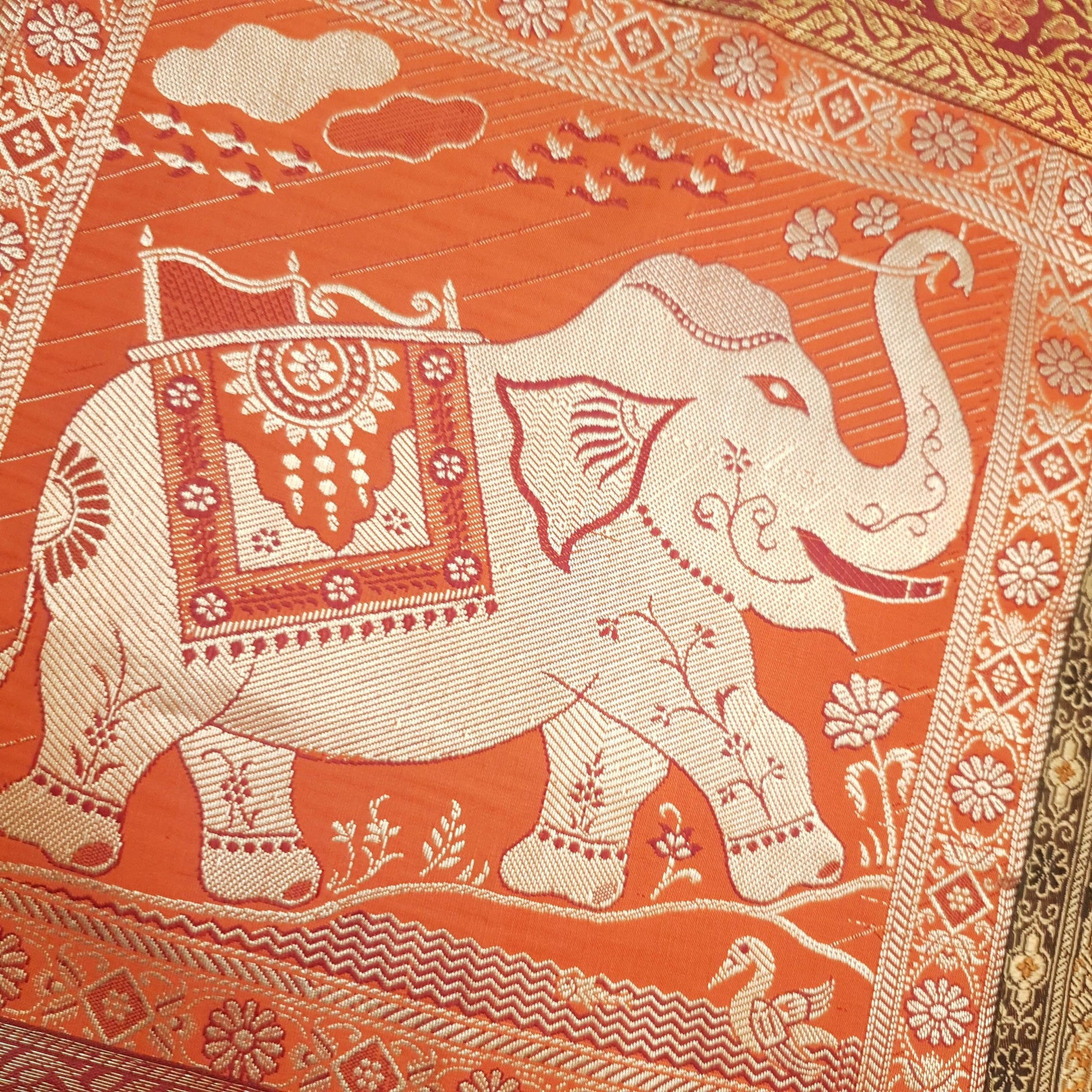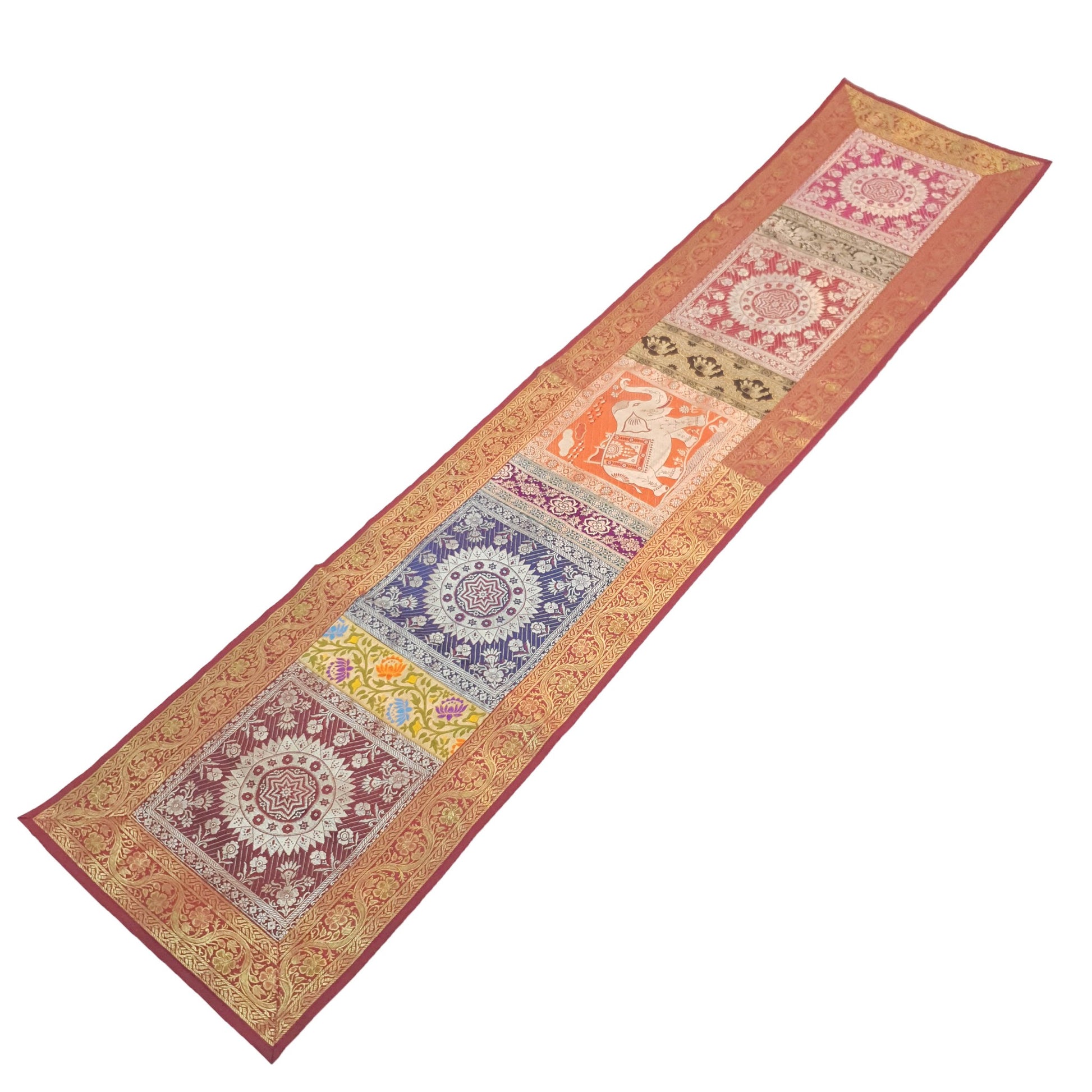 Dining Table Runner Mandala Elephant Woven Zari Brocade Banarasi Multi Color