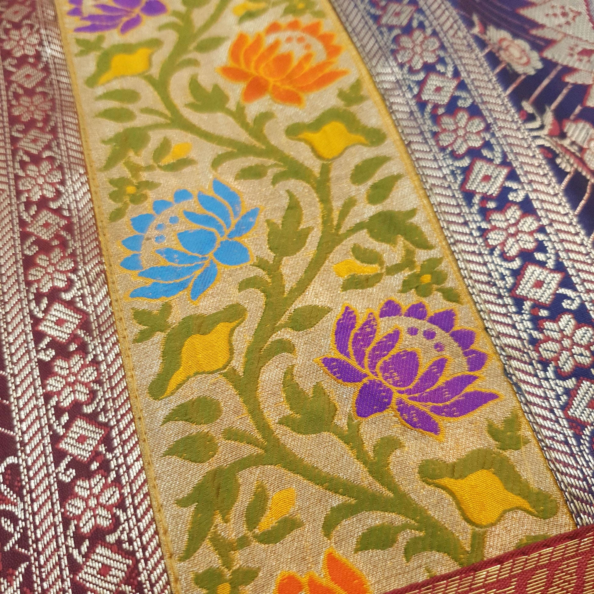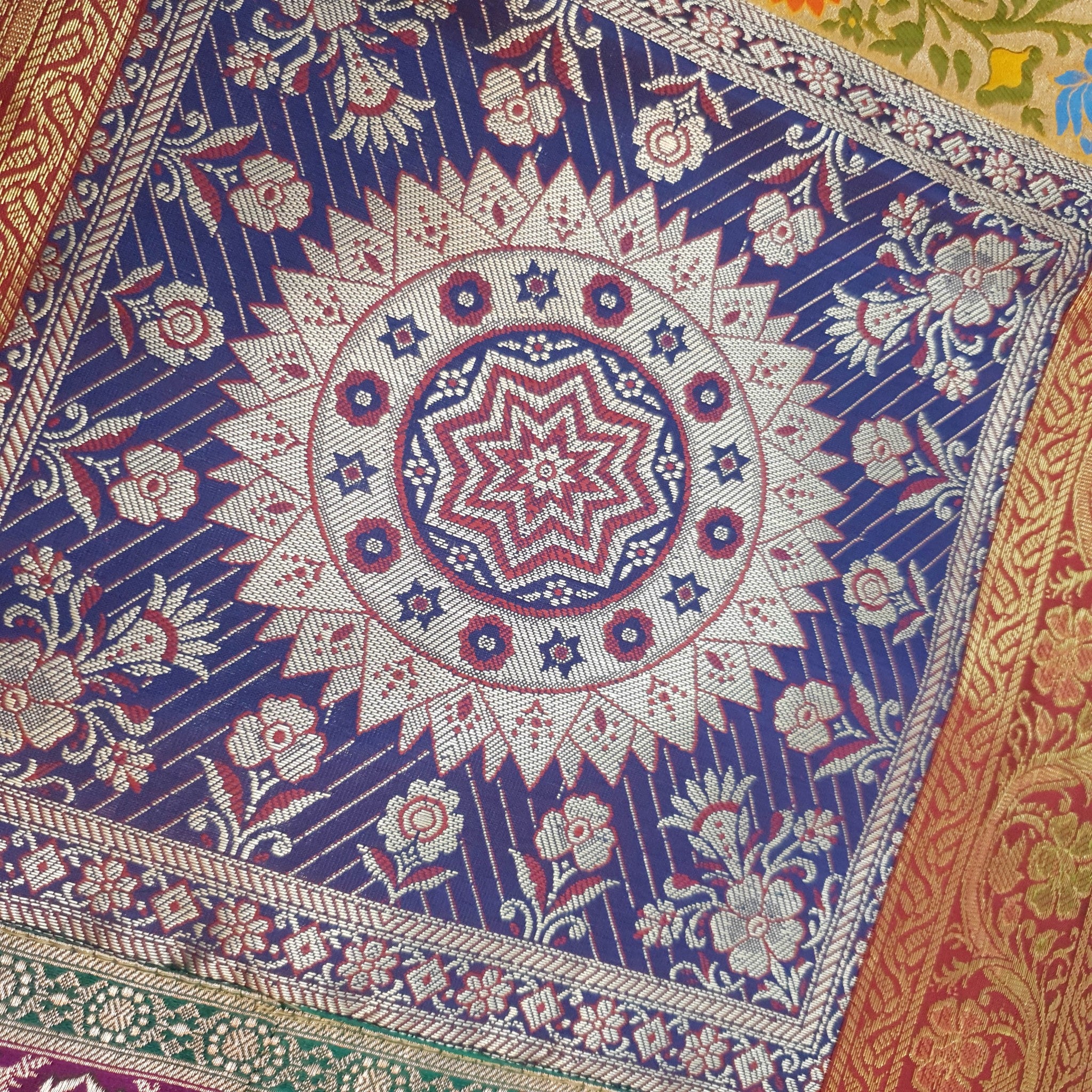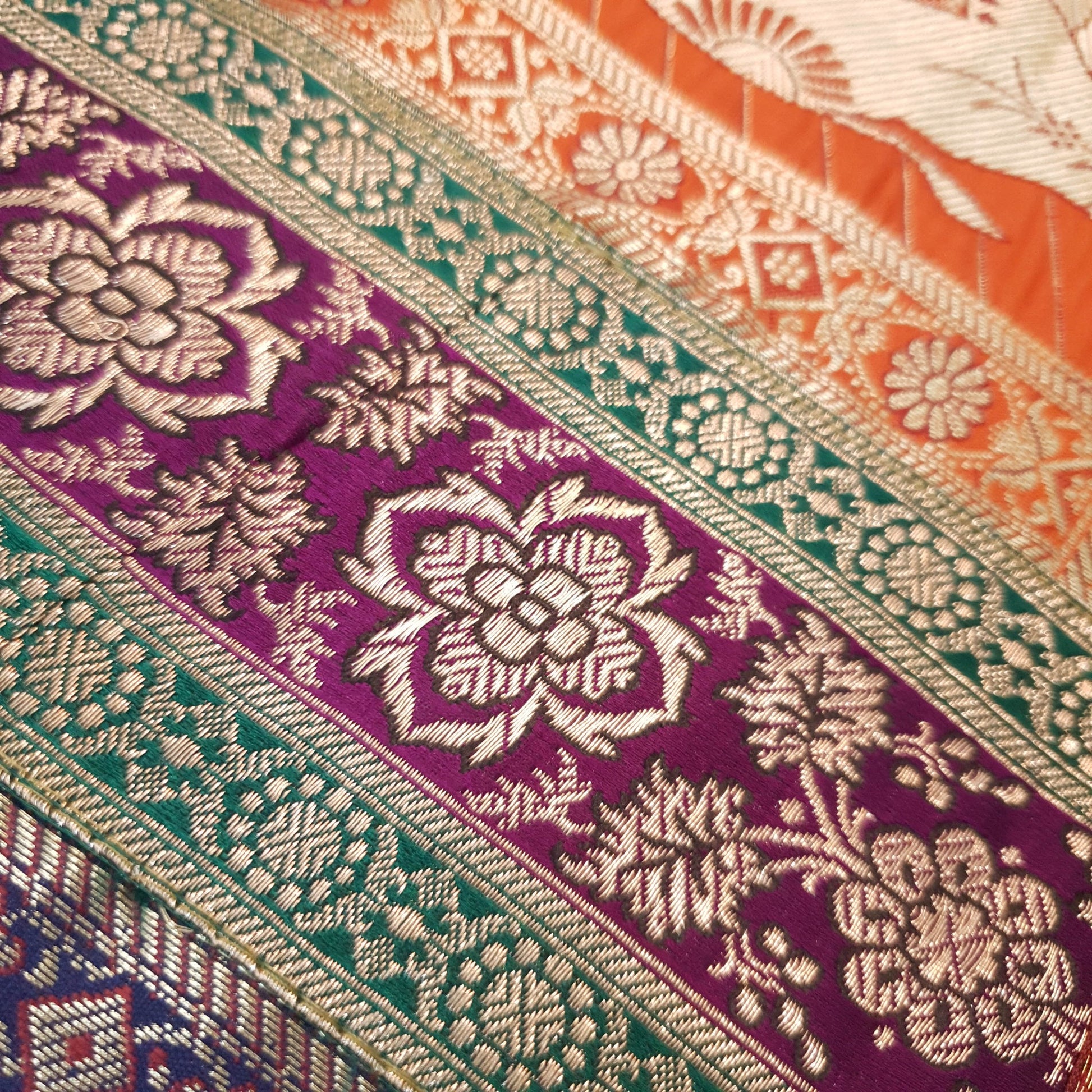 Step into a world of timeless elegance with our exquisite Woven Zari Brocade Banarasi Fabric Table Runner or Wall Tapestry. Crafted with meticulous attention to detail, this piece effortlessly blends tradition with contemporary style, adding a touch of opulence to any space.