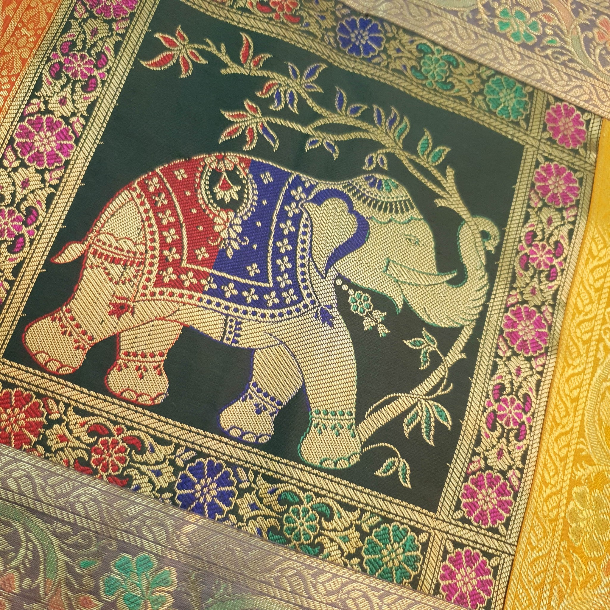 Dining Table Runner Wall Tapestry Woven Zari Brocade Banarasi Cover Multi Color