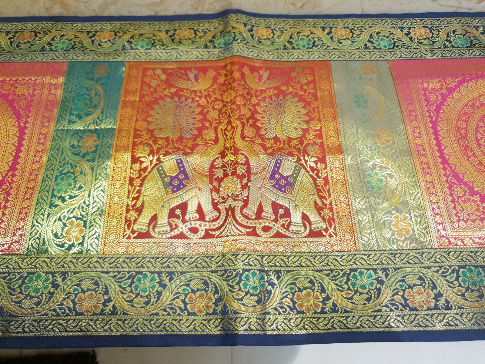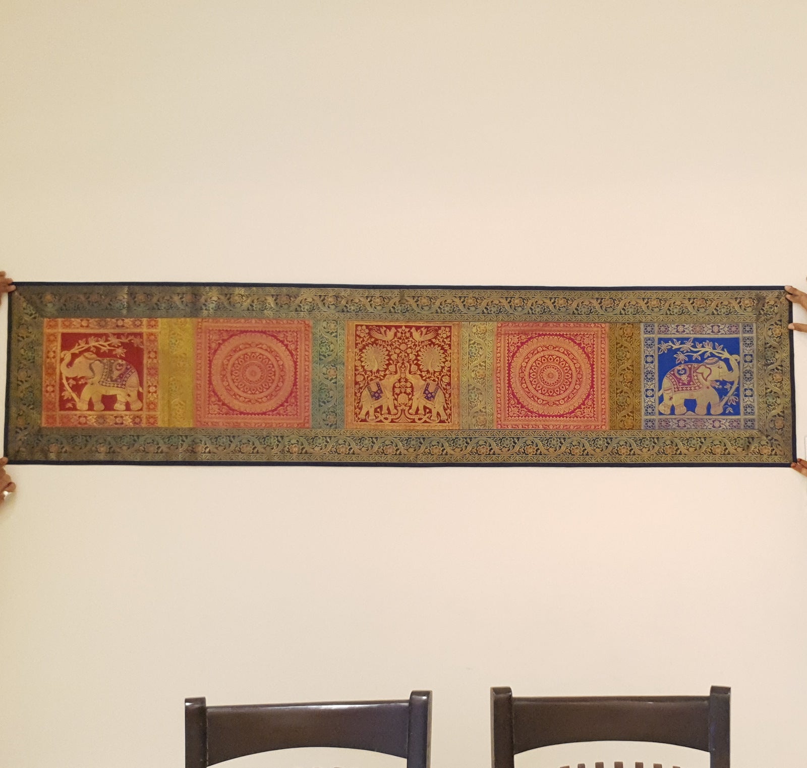 Dining Table Runner Wall Tapestry Woven Zari Brocade Banarasi Cover Multi-Color