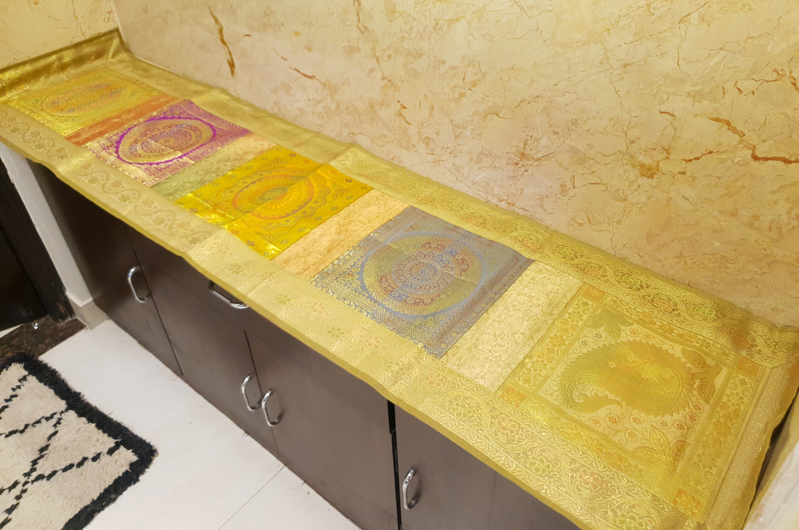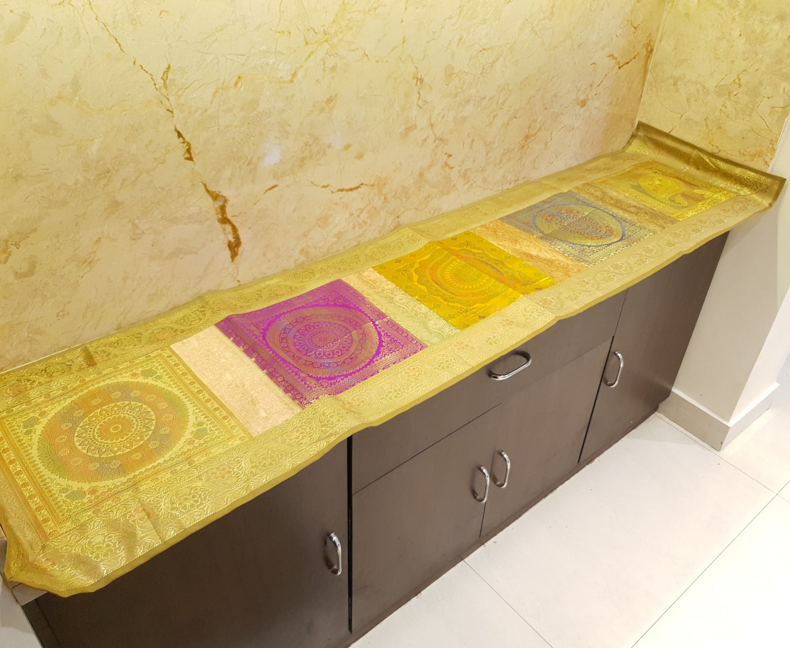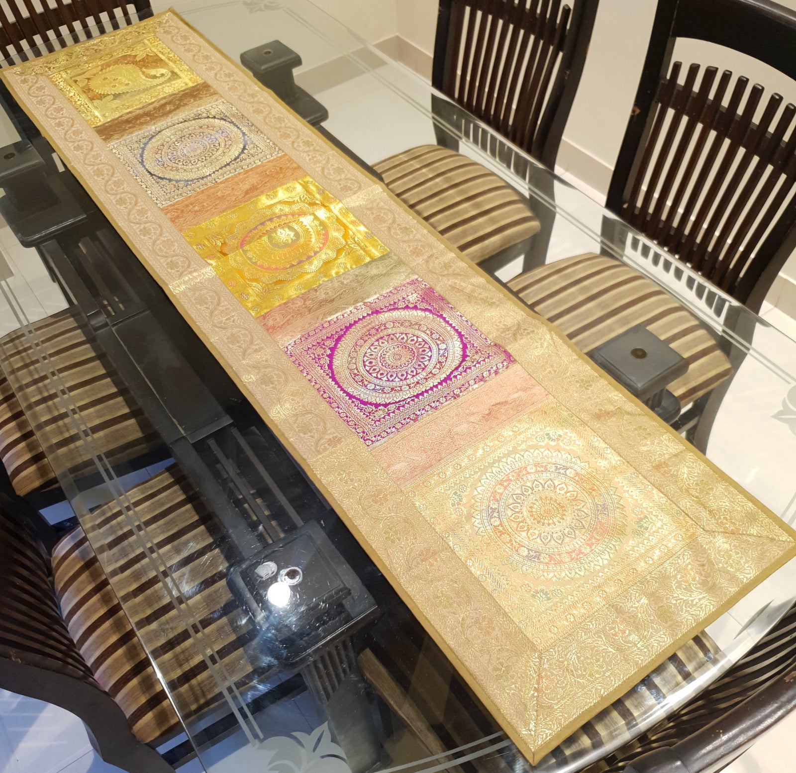 Dining Table Runner Wall Tapestry Woven Zari Brocade Banarasi Cover Multi-Color