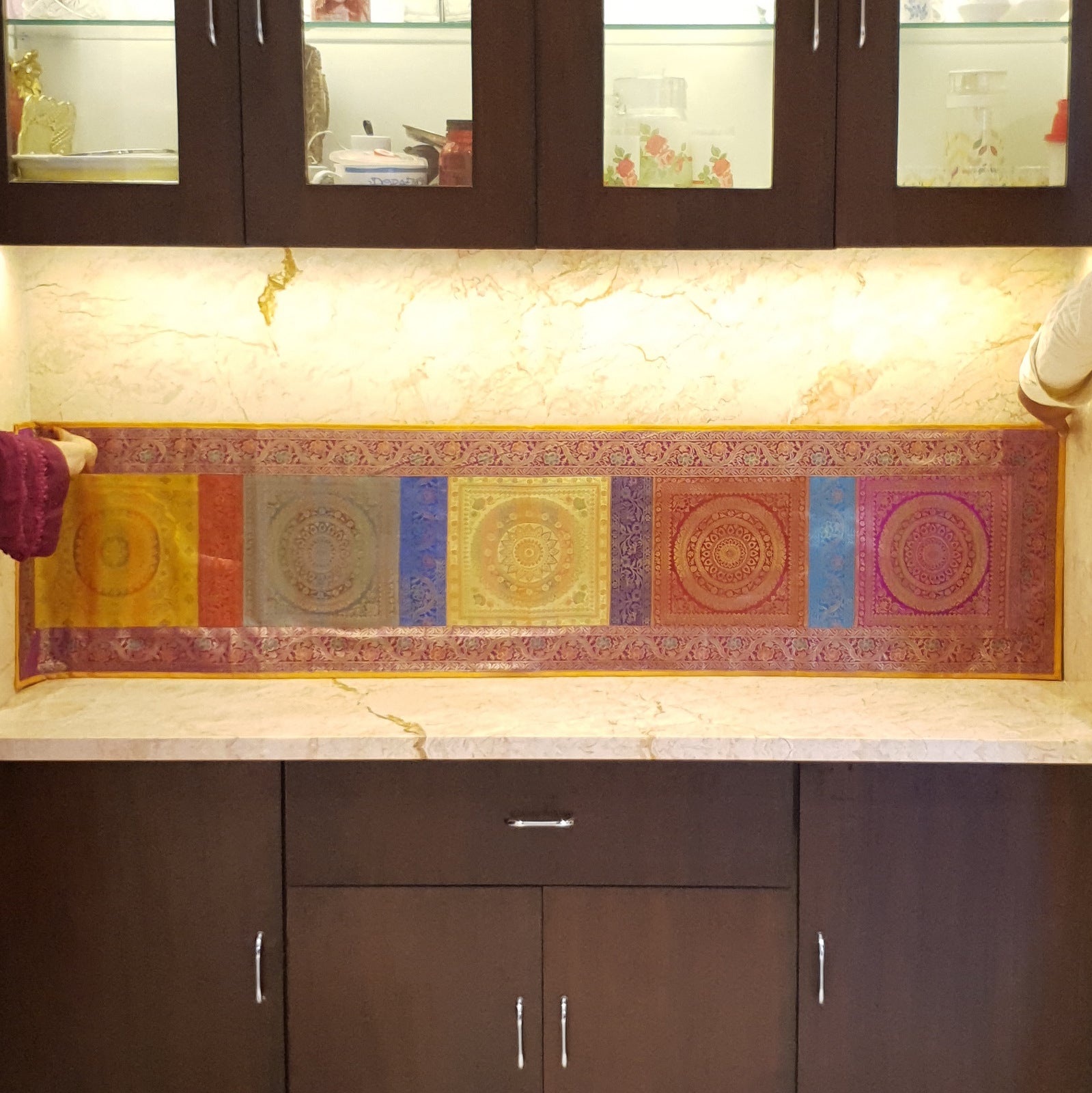 Dining Table Runner Wall Tapestry Woven Zari Brocade Banarasi Cover Multi-Color