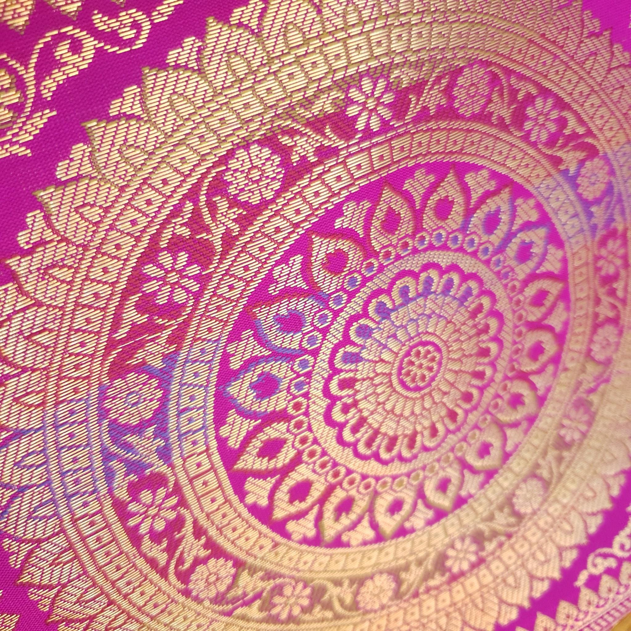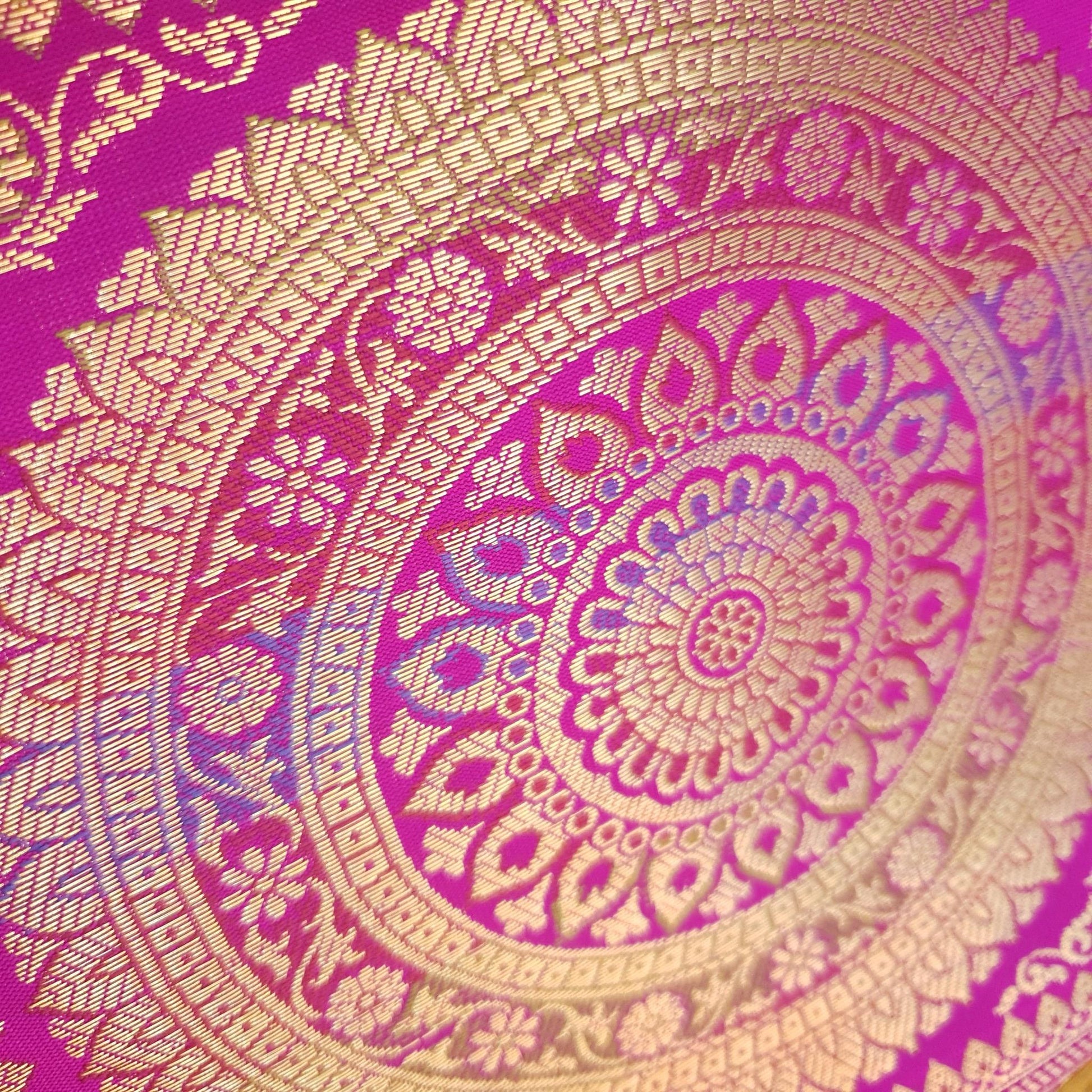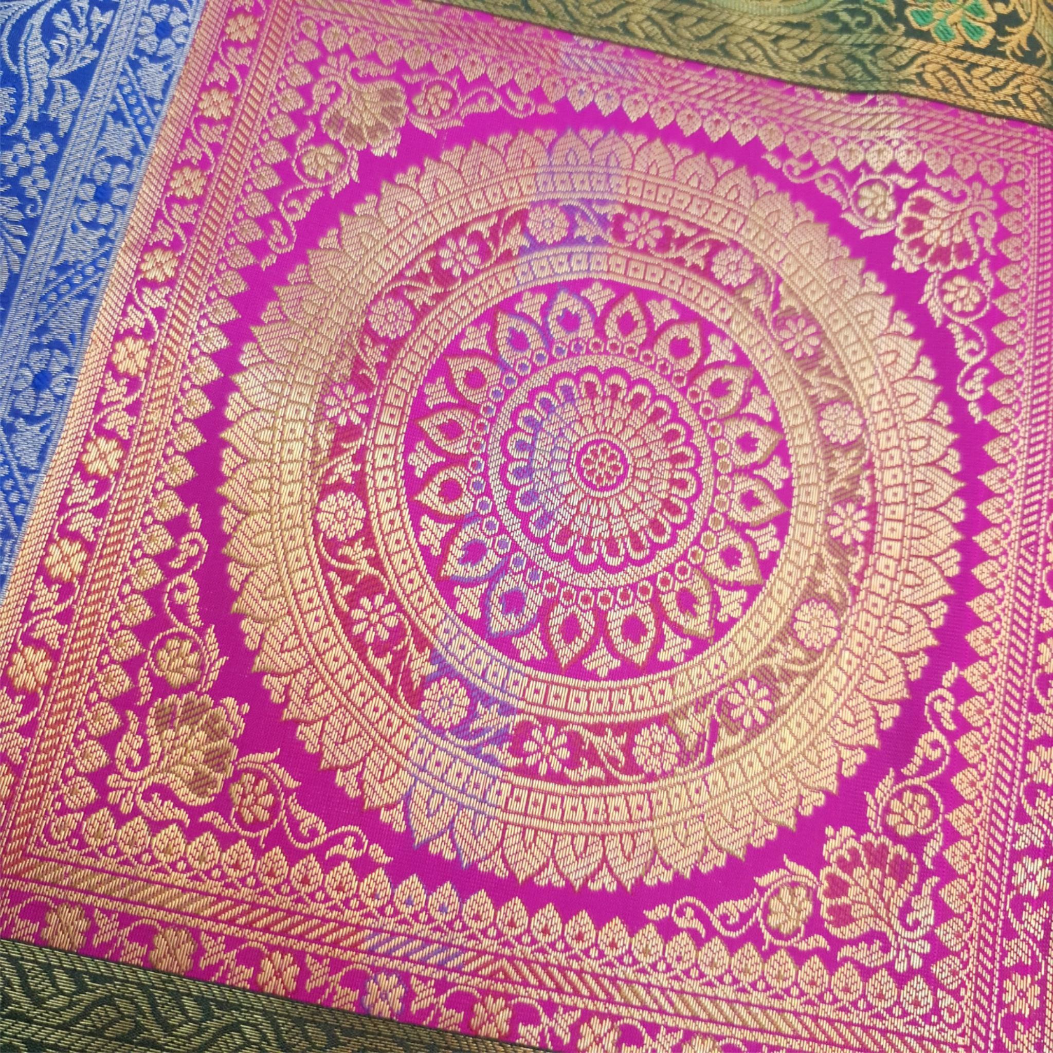 Crafted from premium quality Banarasi fabric, renowned for its durability and lustrous finish, this piece is not just a decorative accent but also a symbol of craftsmanship and heritage. Each thread tells a story of tradition and artistry, making it a cherished addition to your home decor collection.