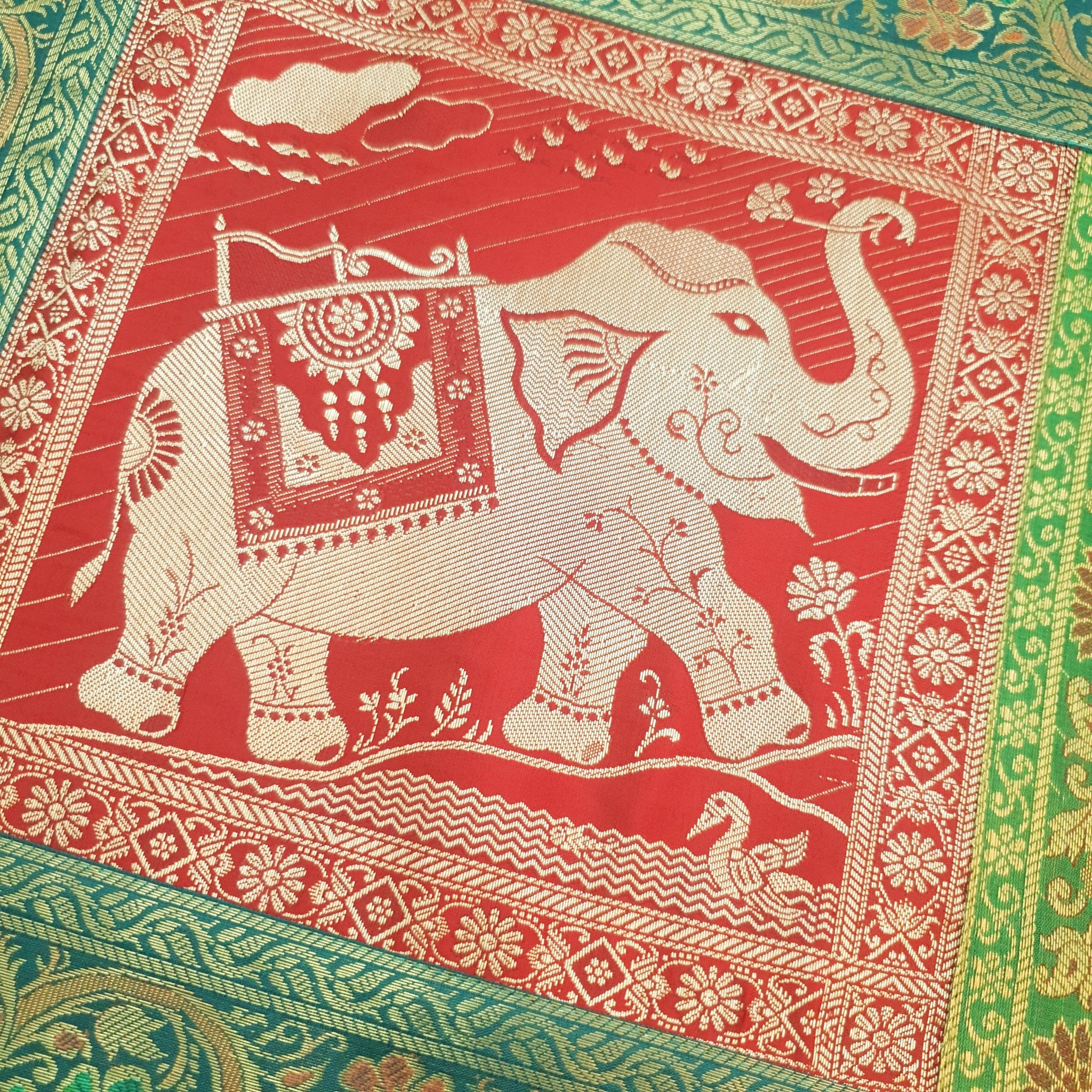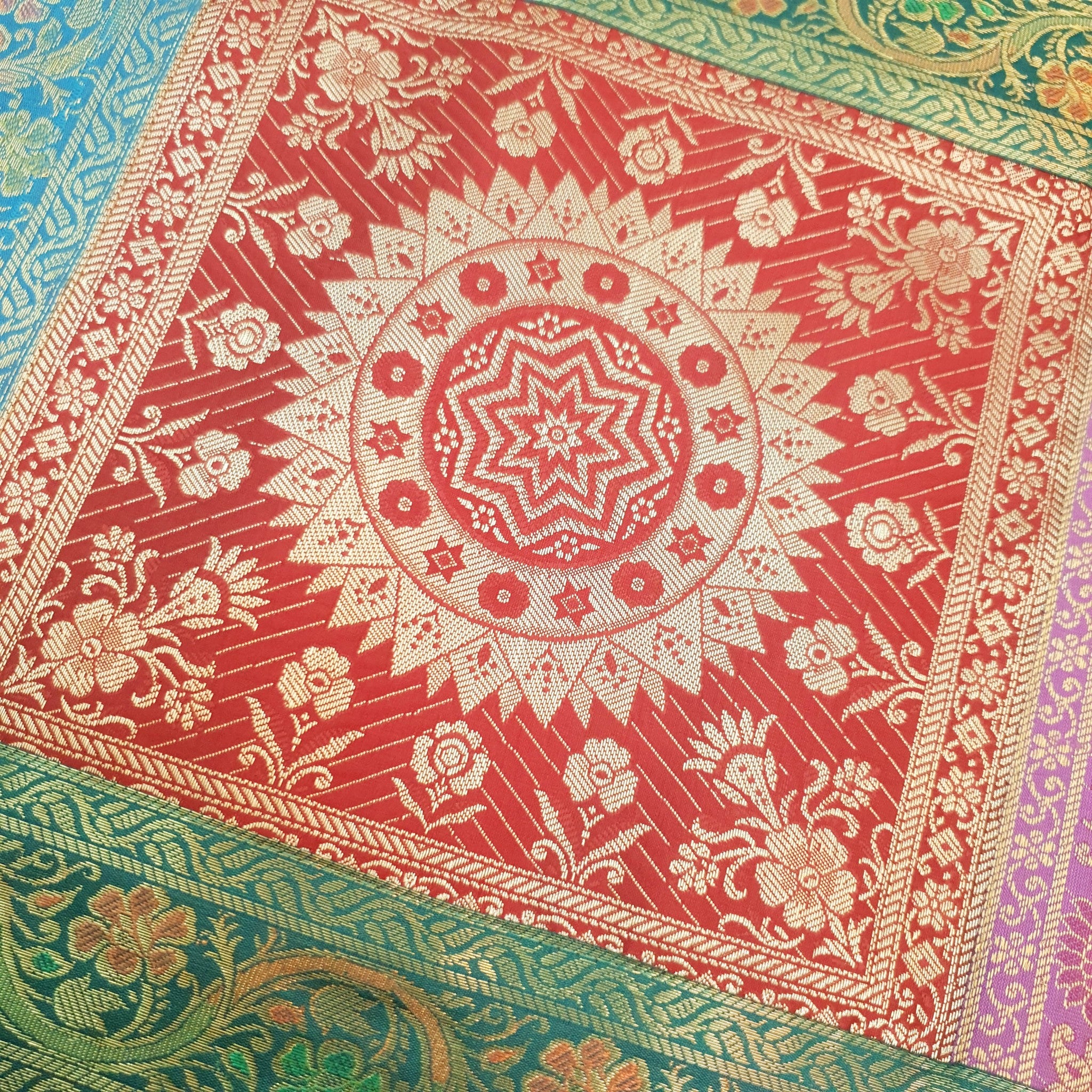 Crafted from premium quality Banarasi fabric, renowned for its durability and lustrous finish, this piece is not just a decorative accent but also a symbol of craftsmanship and heritage. Each thread tells a story of tradition and artistry, making it a cherished addition to your home decor collection.