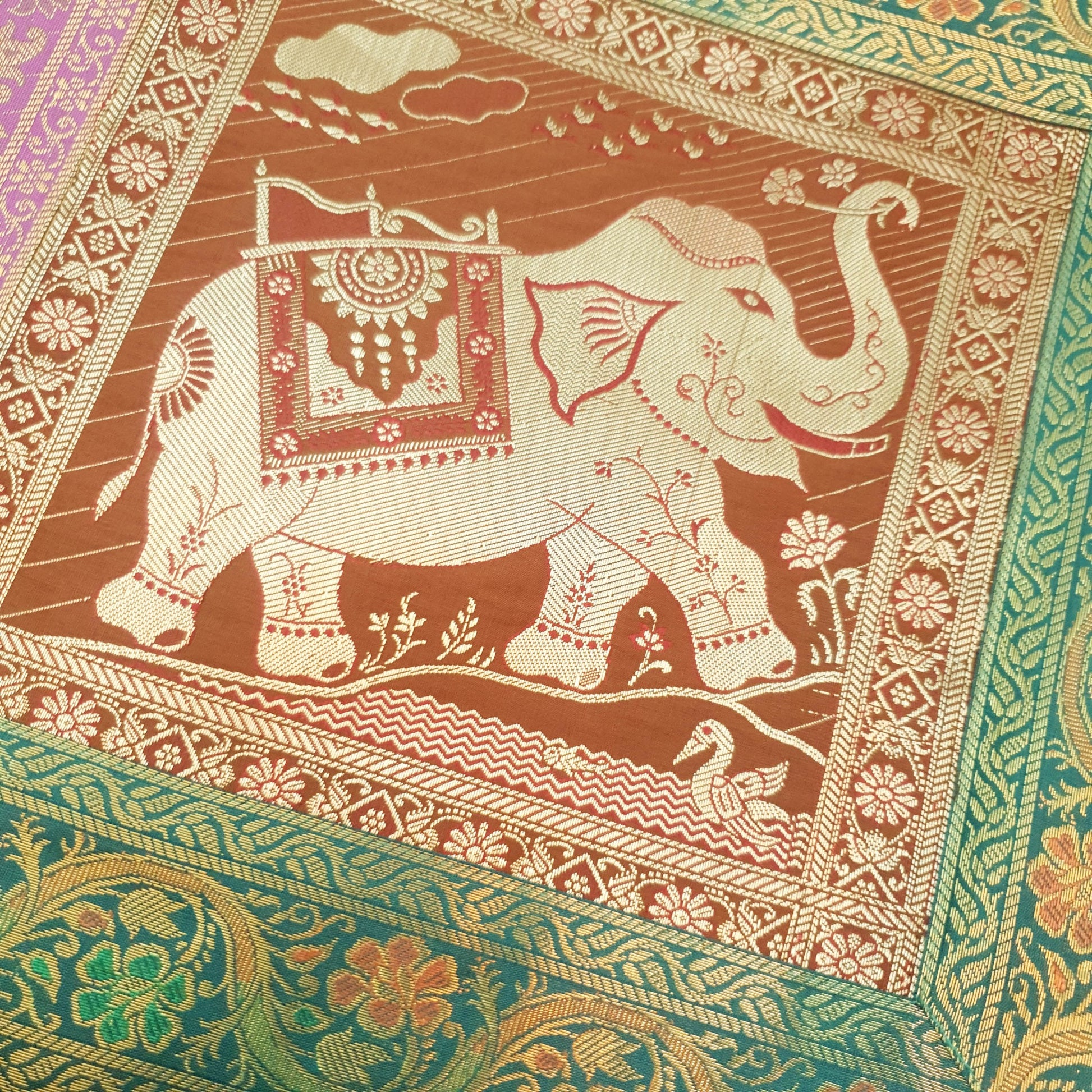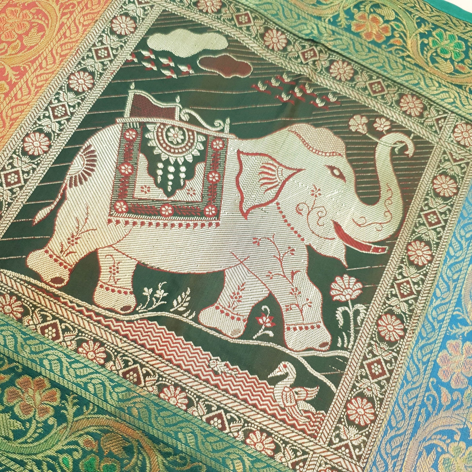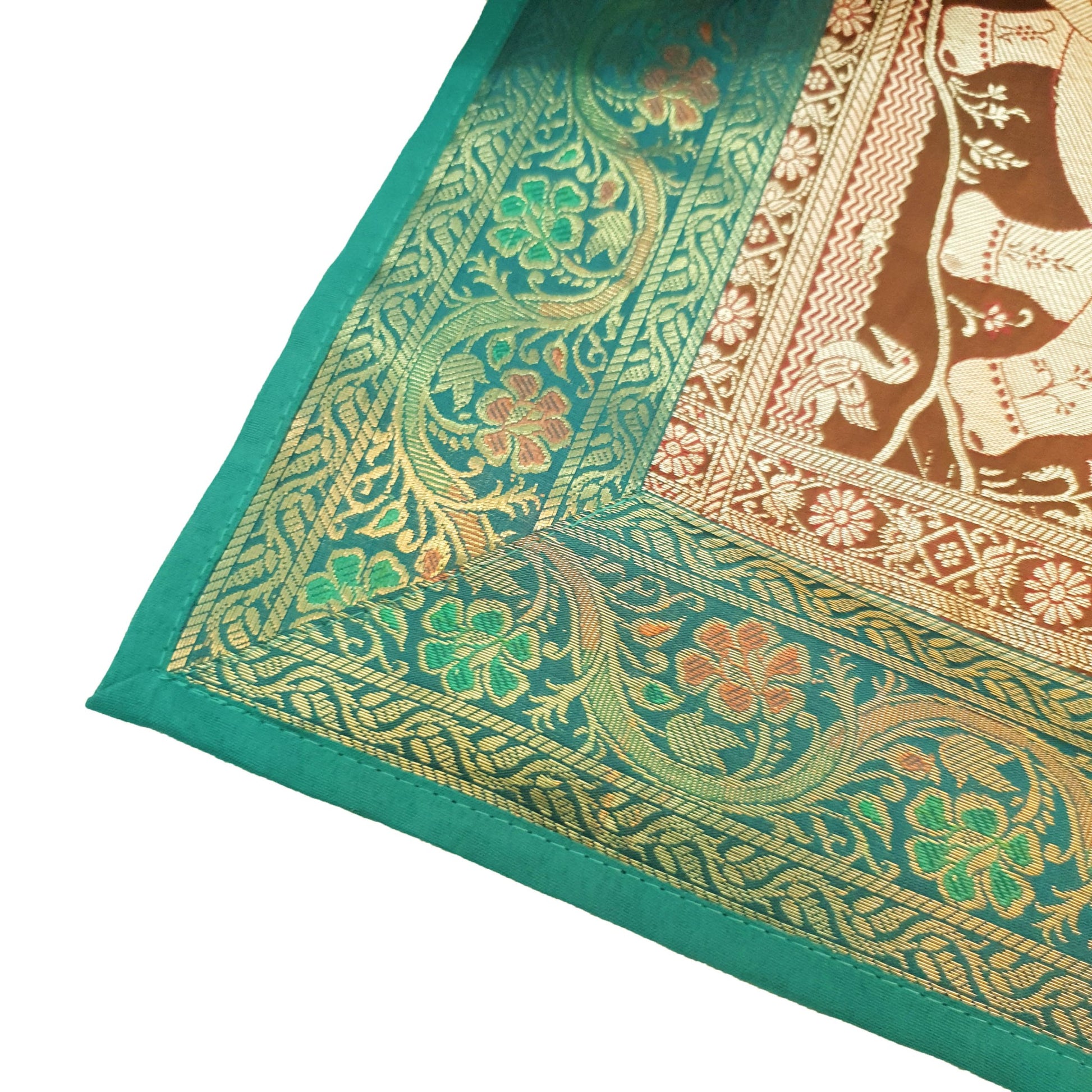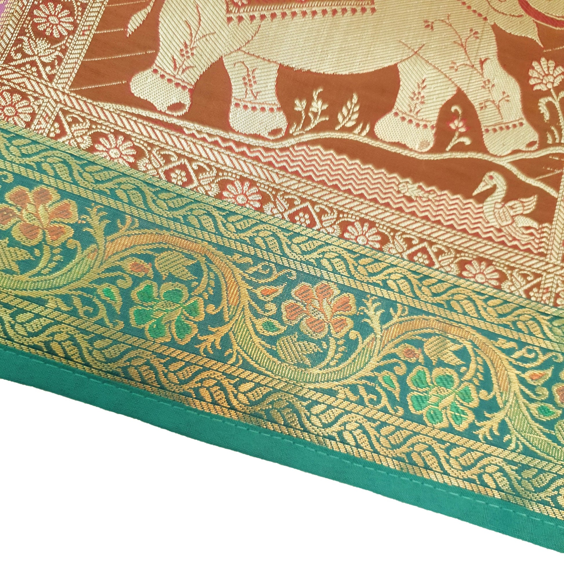Dining Table Runner Woven Elephant & Mandala Zari Brocade Banarasi Multi Color