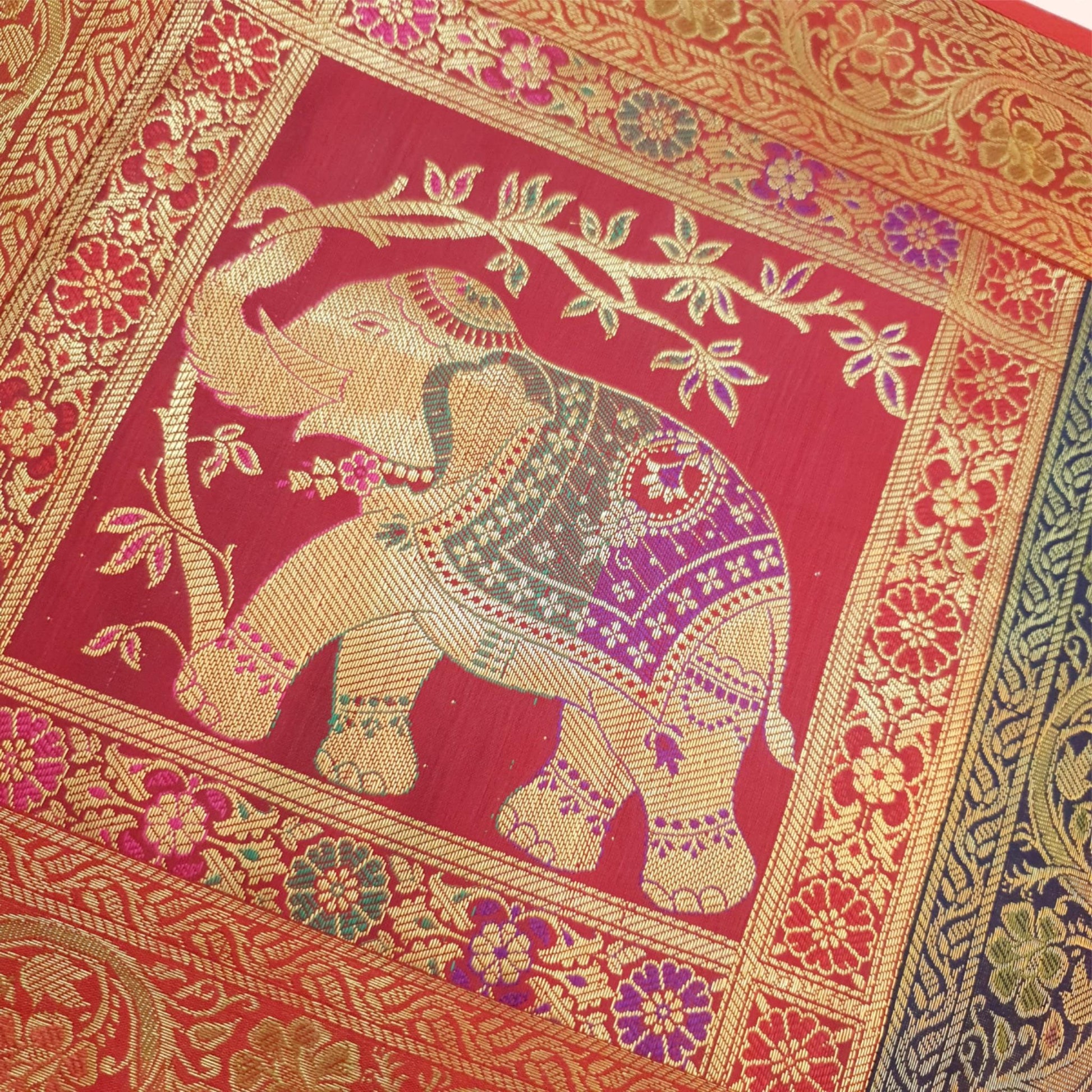 Crafted from premium quality Banarasi fabric, renowned for its durability and lustrous finish, this piece is not just a decorative accent but also a symbol of craftsmanship and heritage. Each thread tells a story of tradition and artistry, making it a cherished addition to your home decor collection.
