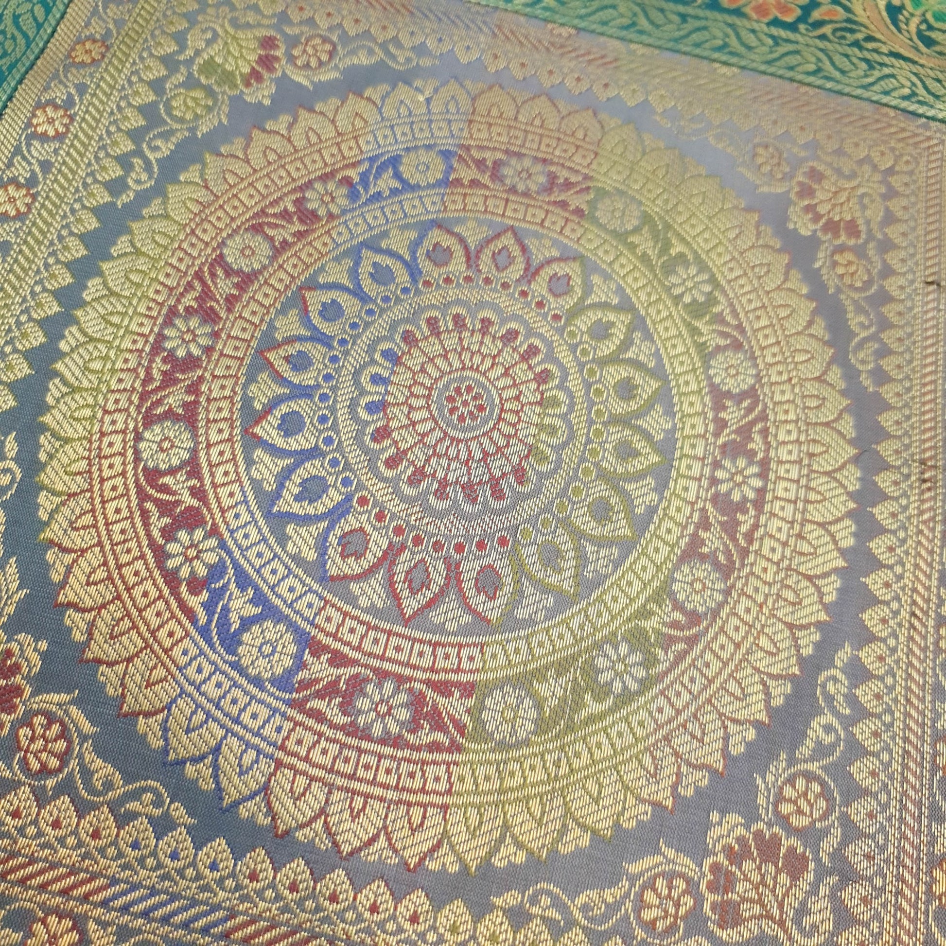 Dining Table Runner Woven Mandala Zari Brocade Banarasi Decor Cover Multi Color
