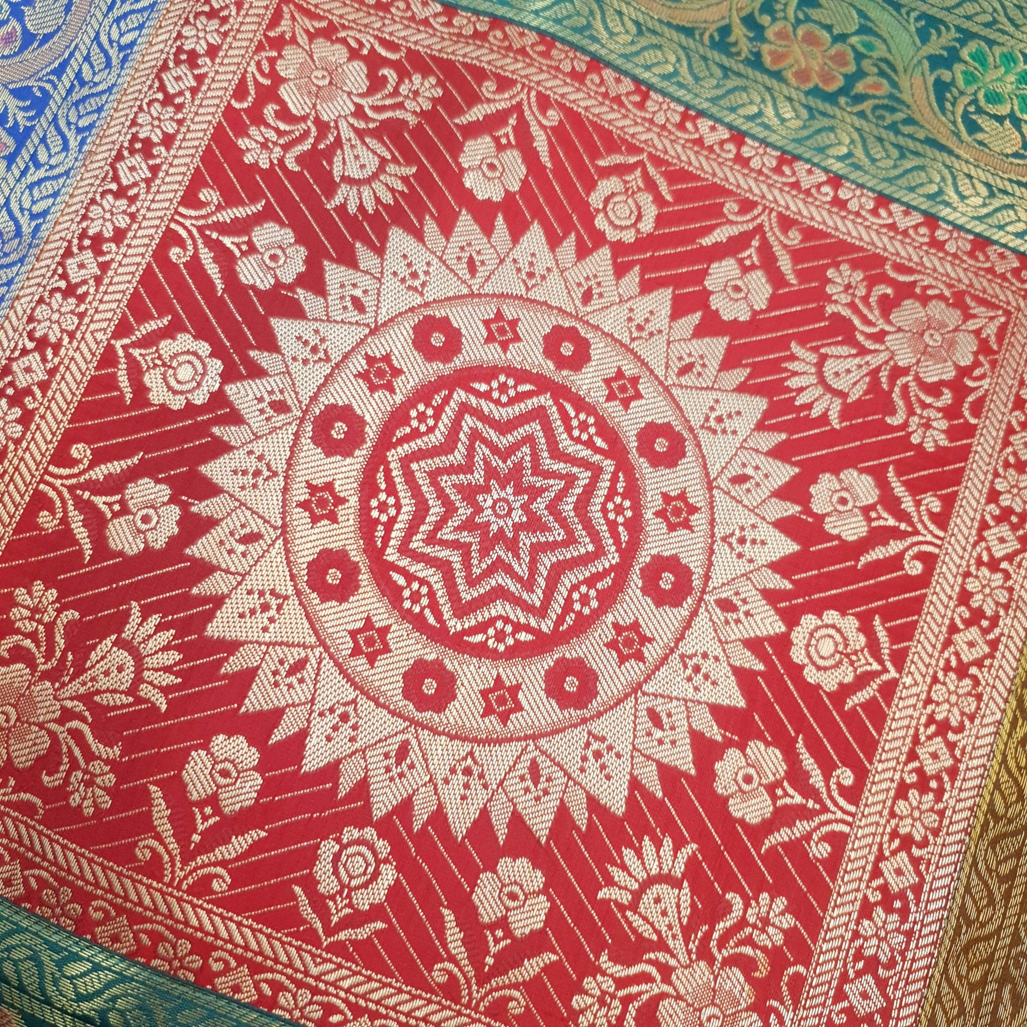Crafted from premium quality Banarasi fabric, renowned for its durability and lustrous finish, this piece is not just a decorative accent but also a symbol of craftsmanship and heritage. Each thread tells a story of tradition and artistry, making it a cherished addition to your home decor collection.