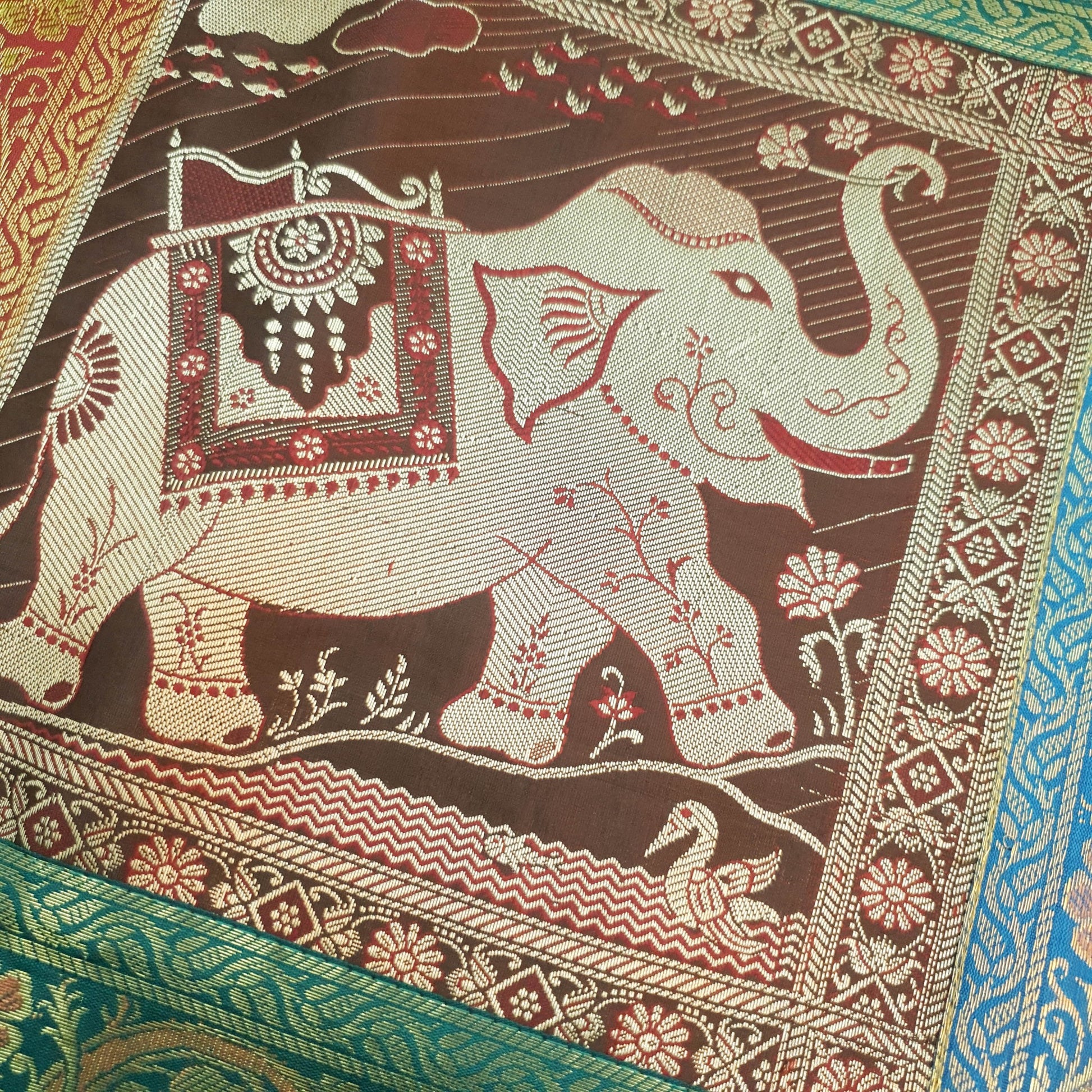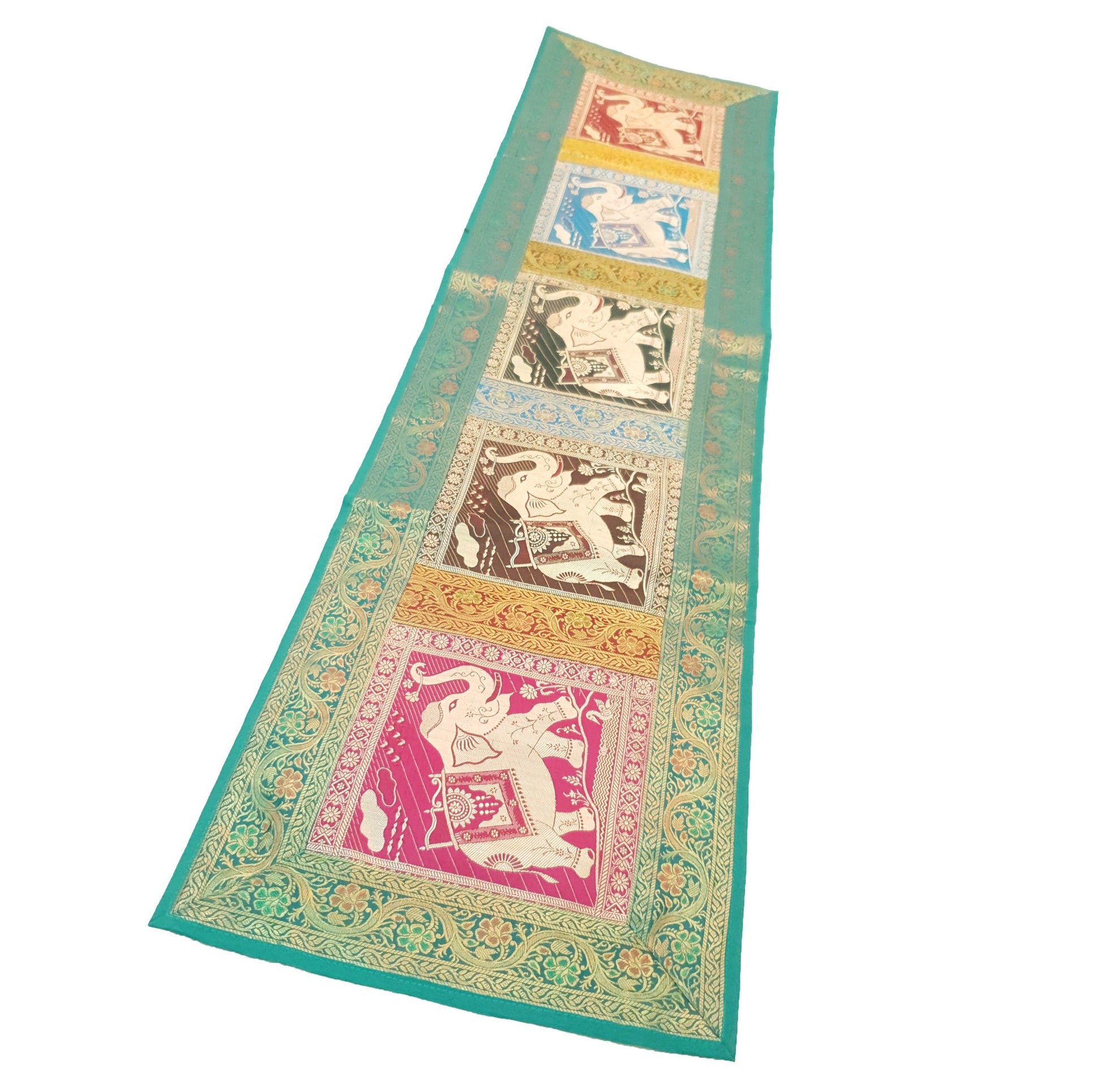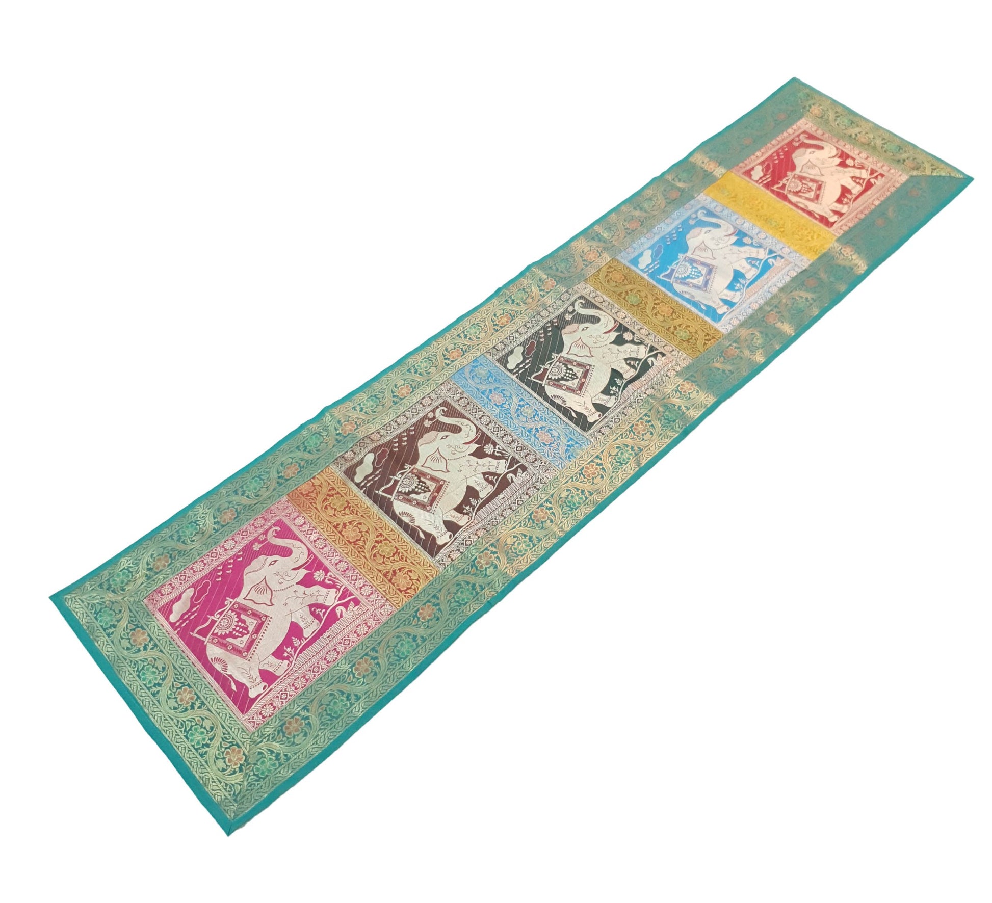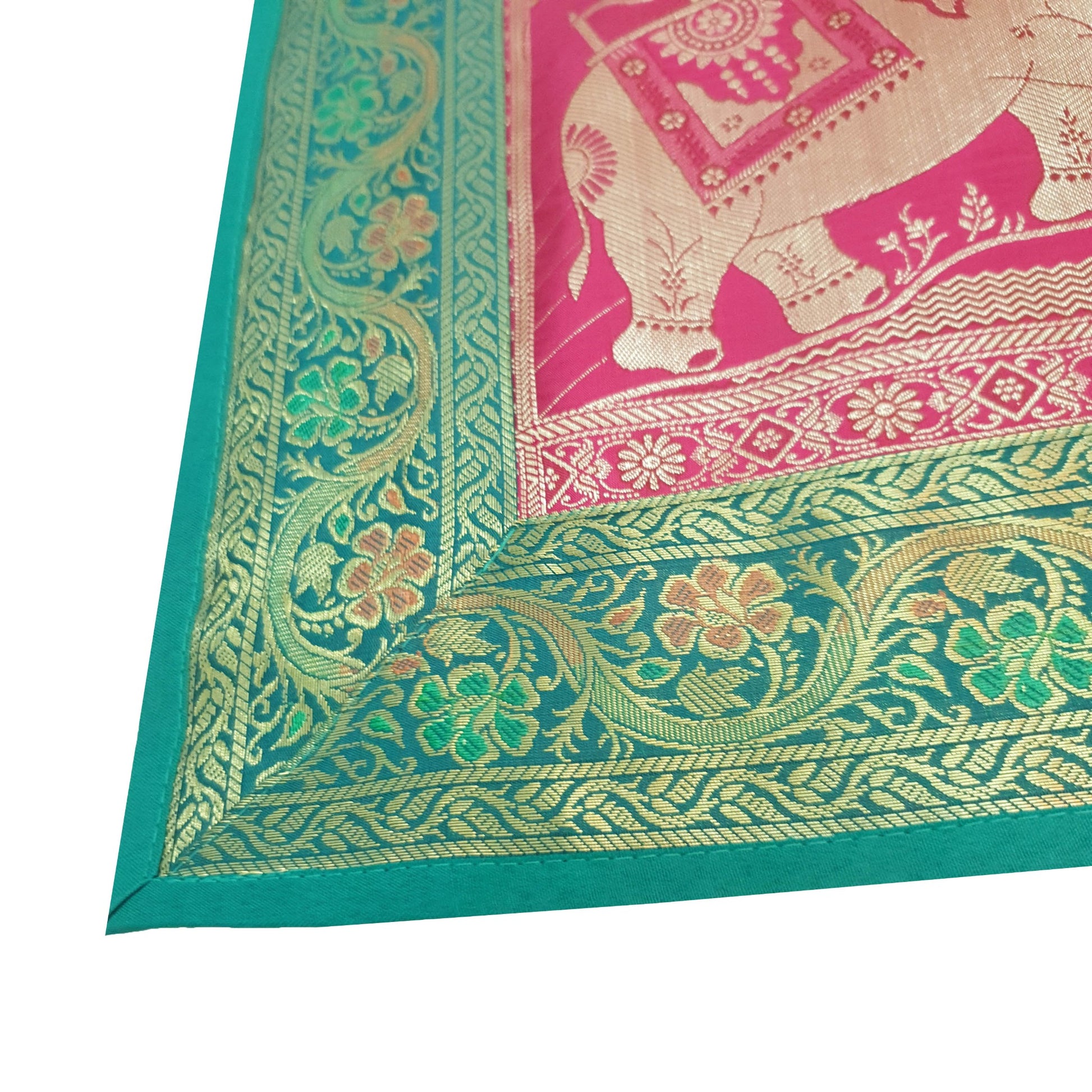 Dining Table Runner Zari Brocade Elephant Woven Banarasi Cover Multi Color